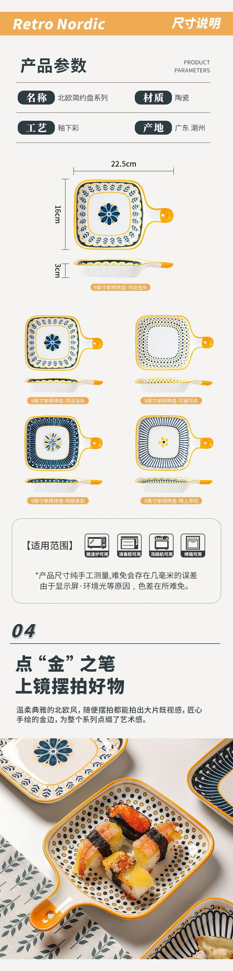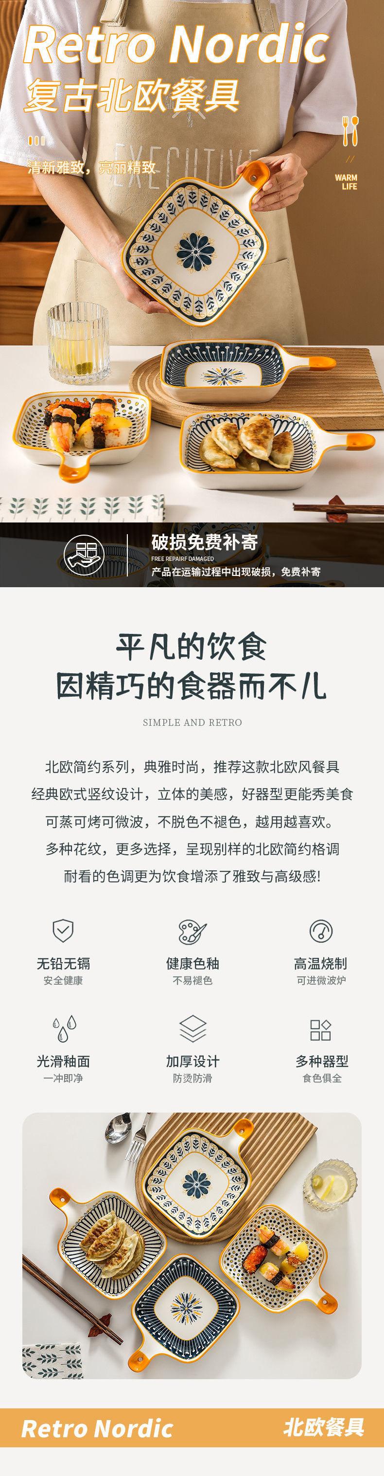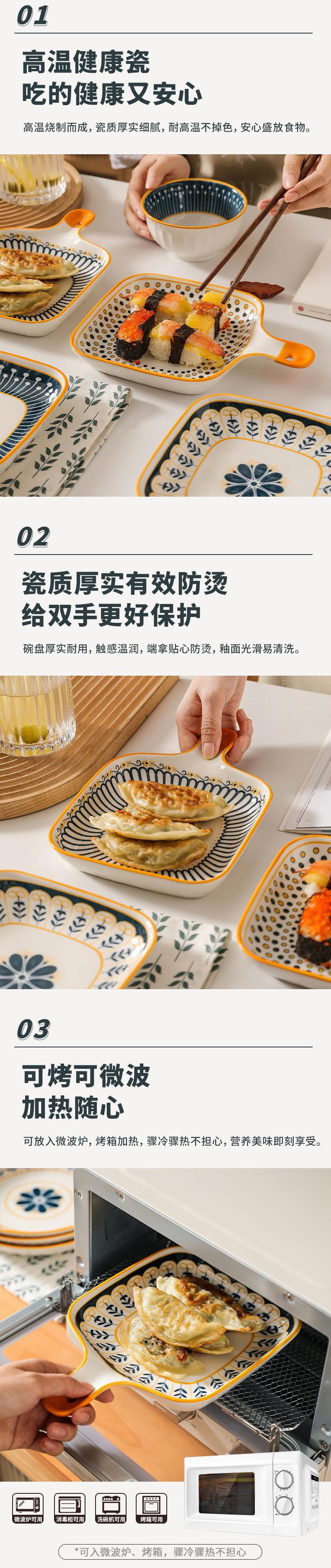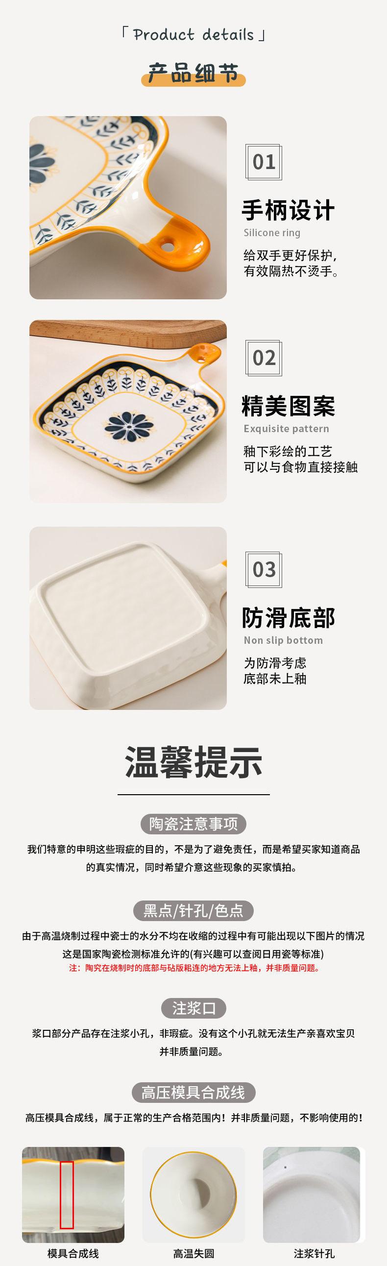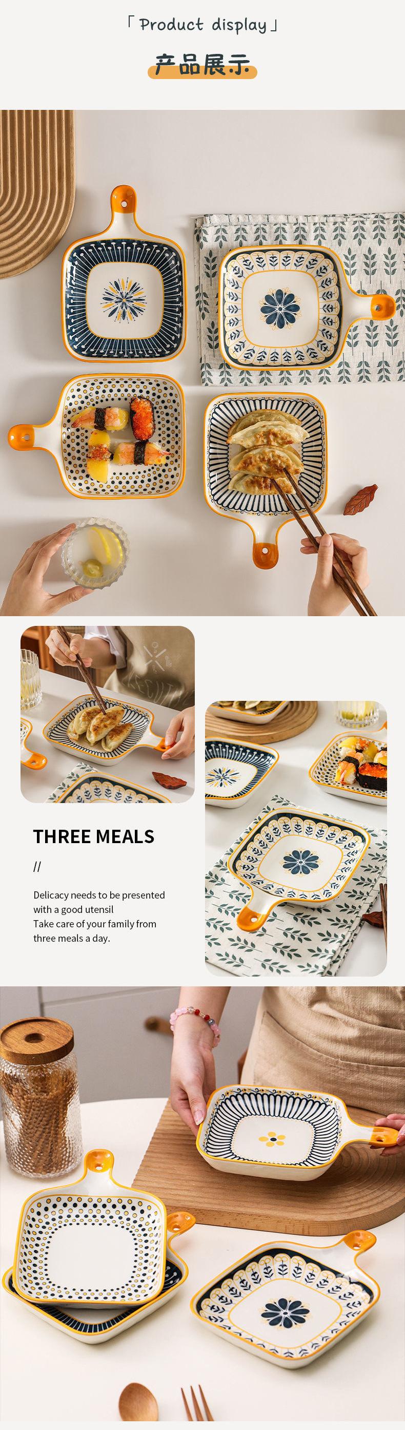 Plato con asa de cerámica para hornear en el hogar con asa, plato para hornear en el horno con una sola asa, plato de fruta creativo popular de red, vajilla