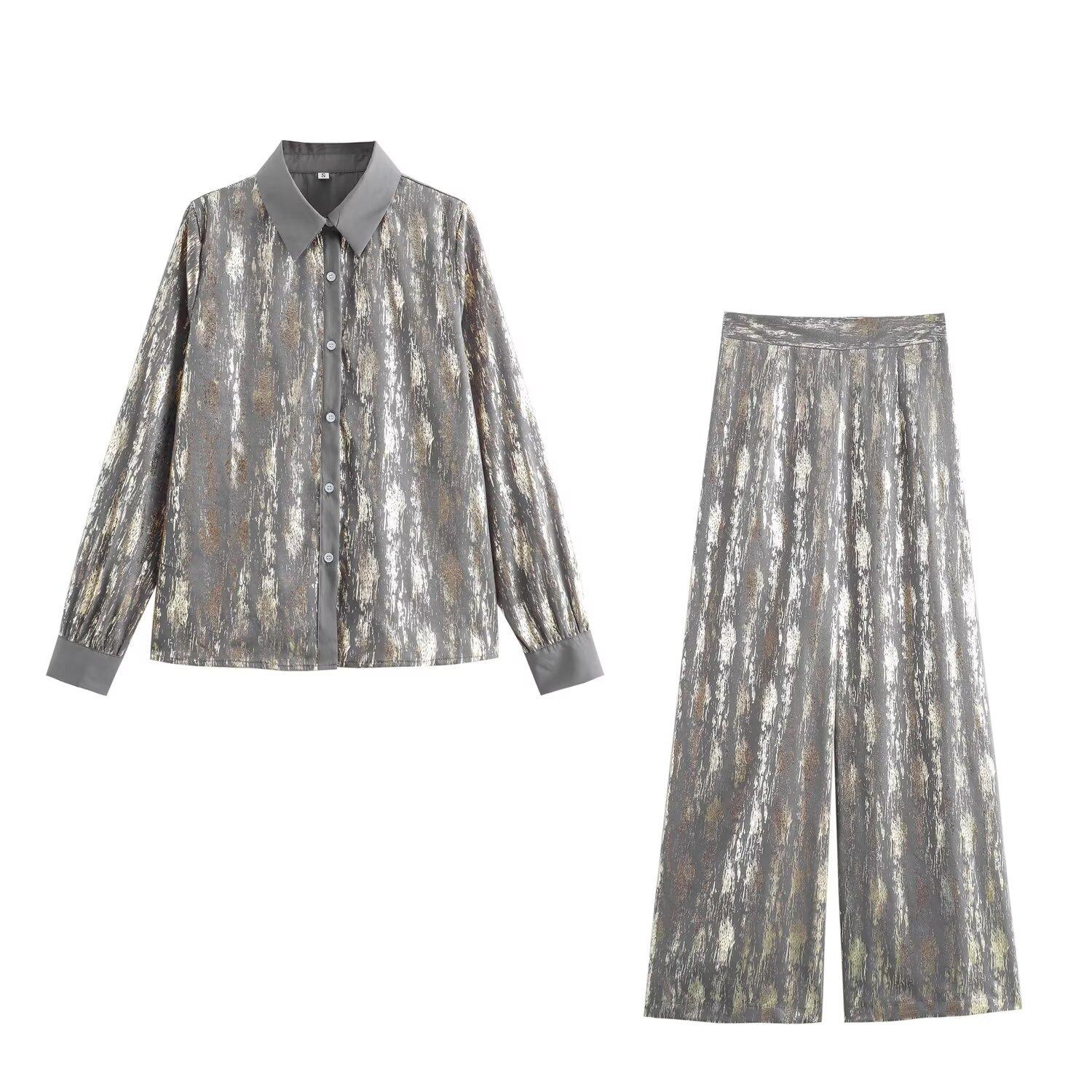 Ropa de mujer estilo europeo y americano 2024 textura otoño industria pesada camisa manga larga tela pantalones nuevos dos piezas casual mayoreo