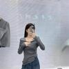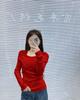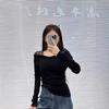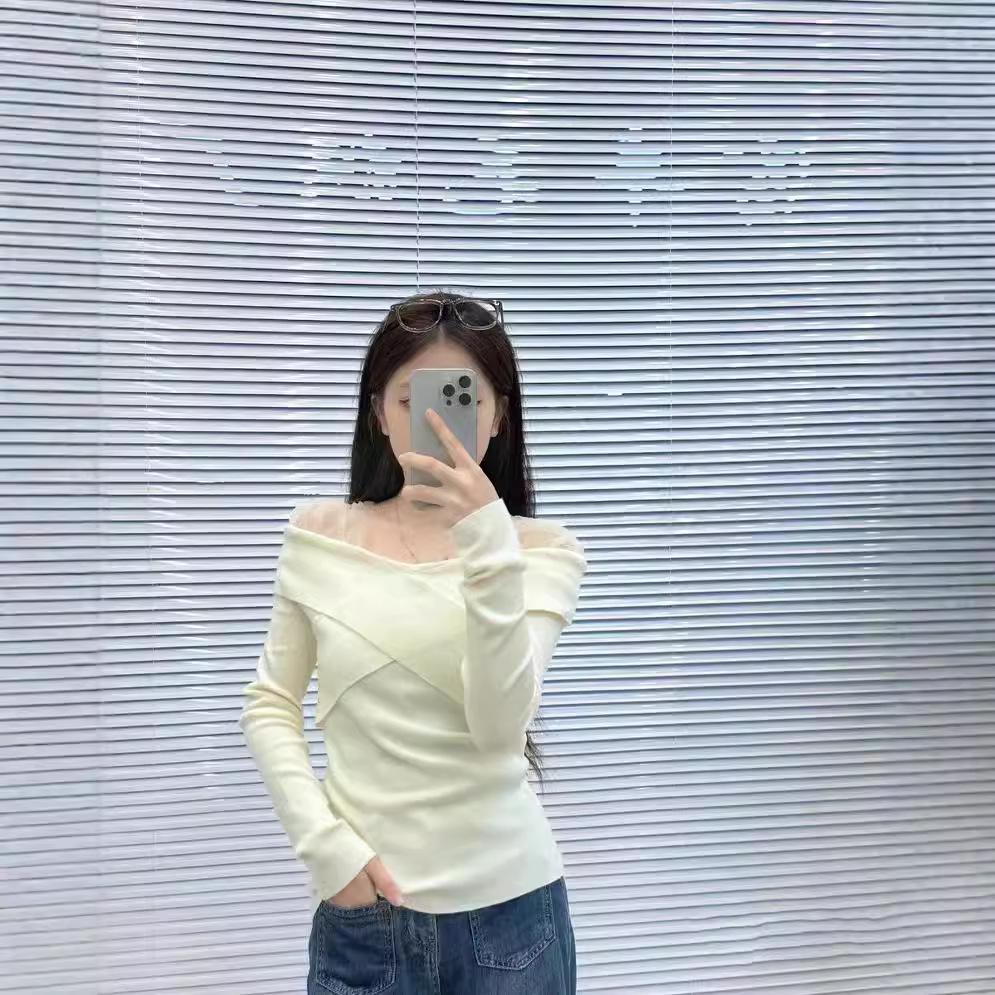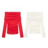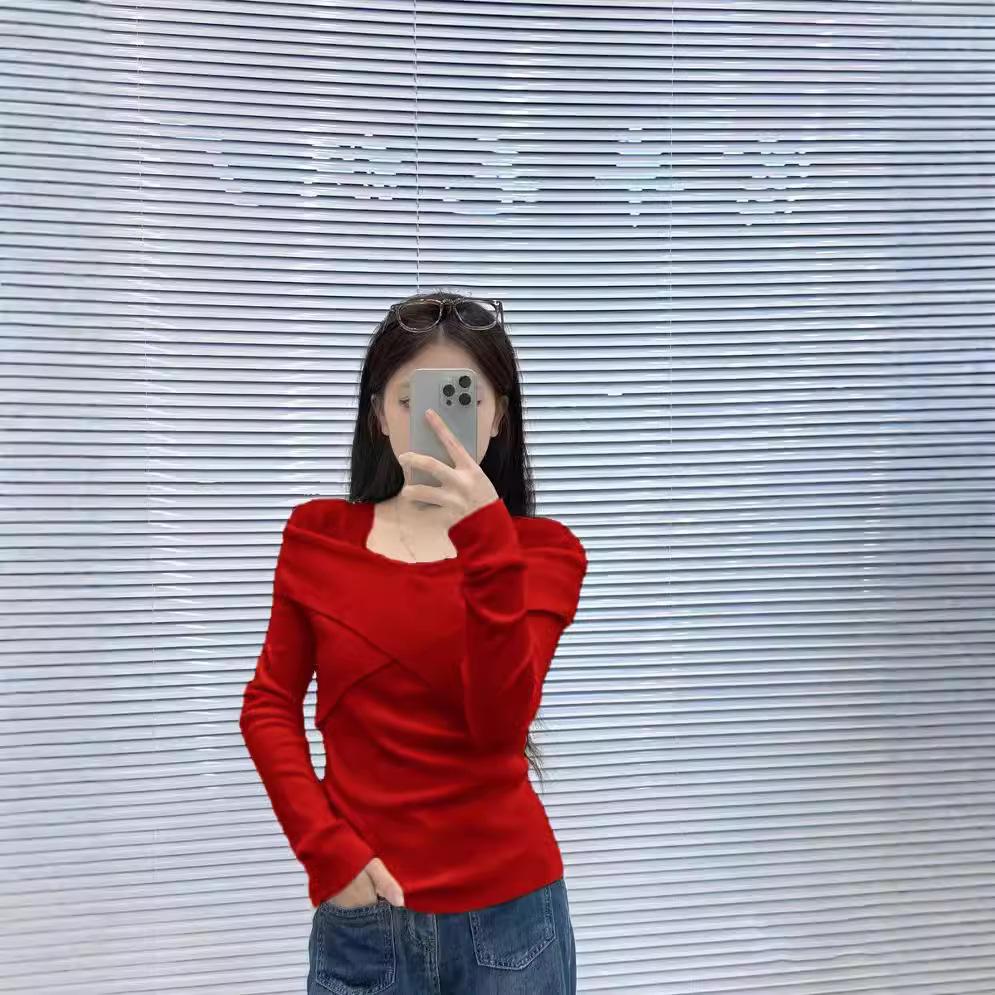 Suéter rojo de manga larga con hombros descubiertos para mujer, otoño 2024, nuevo nicho de corte entallado, elegante y de alta gama, con hombros descubiertos