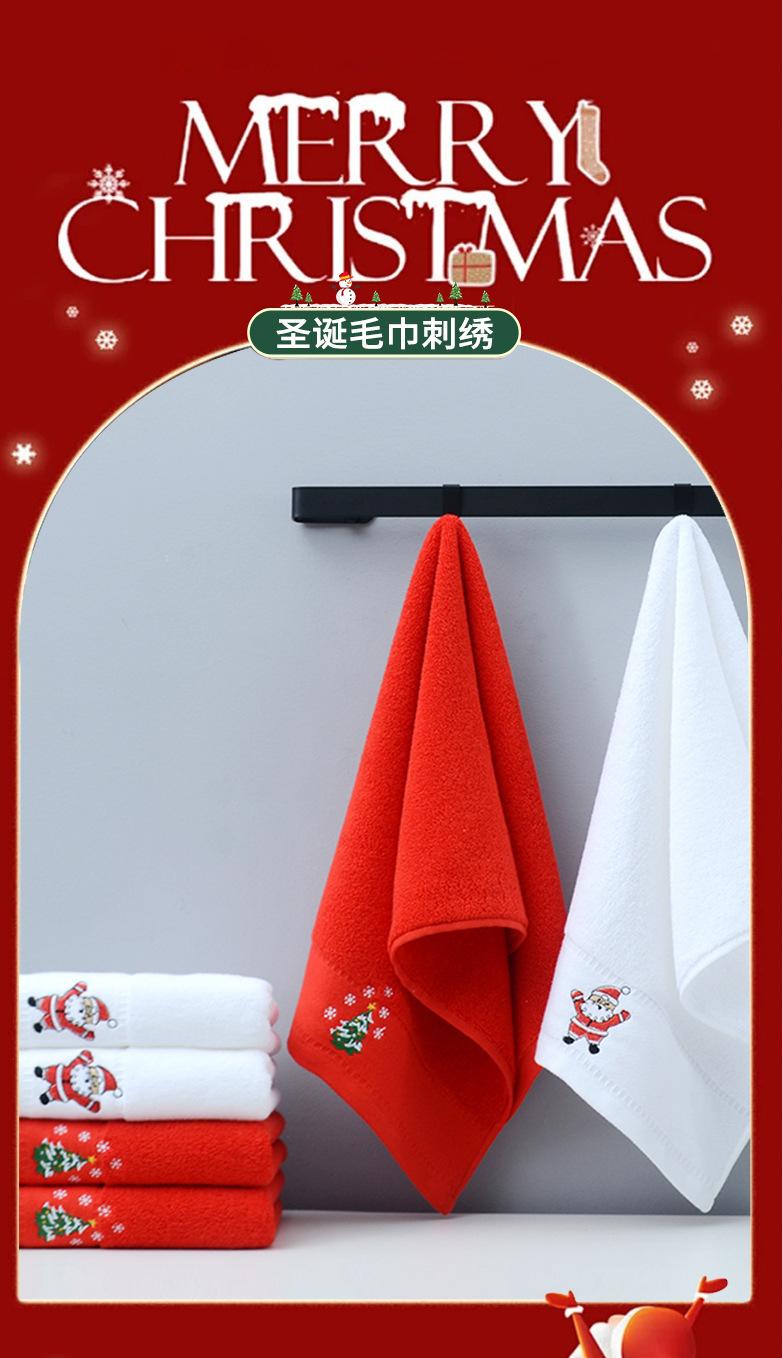 Toalla de regalo navideña transfronteriza, toalla de algodón para la cara, toalla de algodón roja, regalo de Papá Noel al por mayor