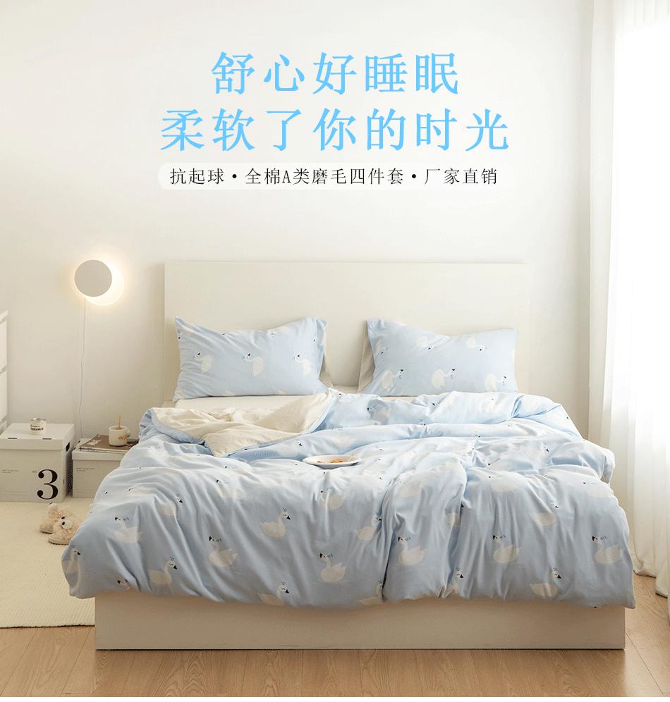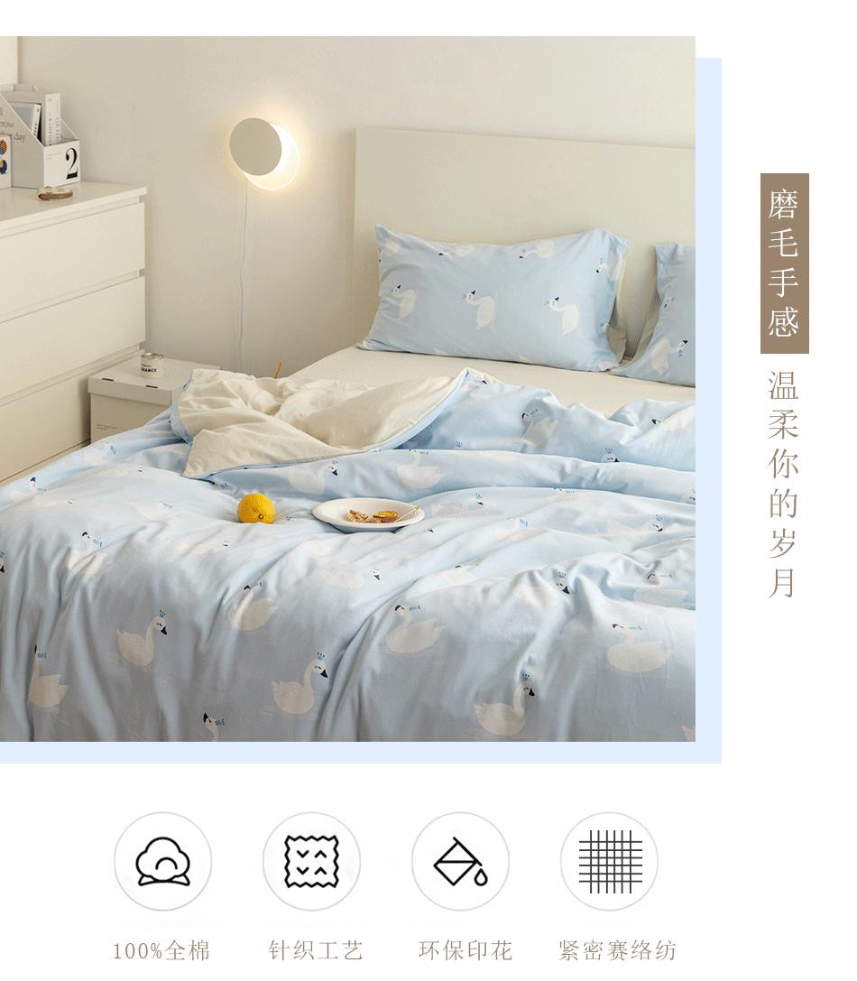 Categoría a Algodón Puro Grado Materno e Infantil Juego de Cuatro Piezas Dormitorio Estudiantil Individual y Doble Infantil Dibujos Animados Cepillado Sábana/Juego Individual