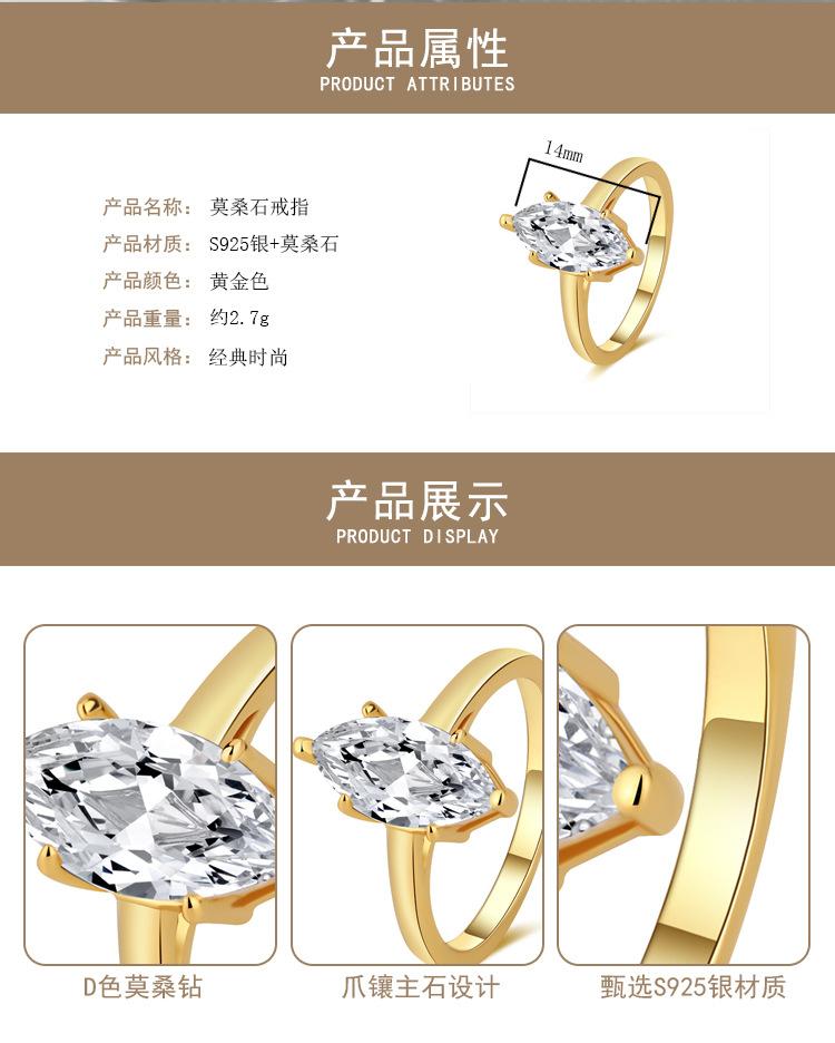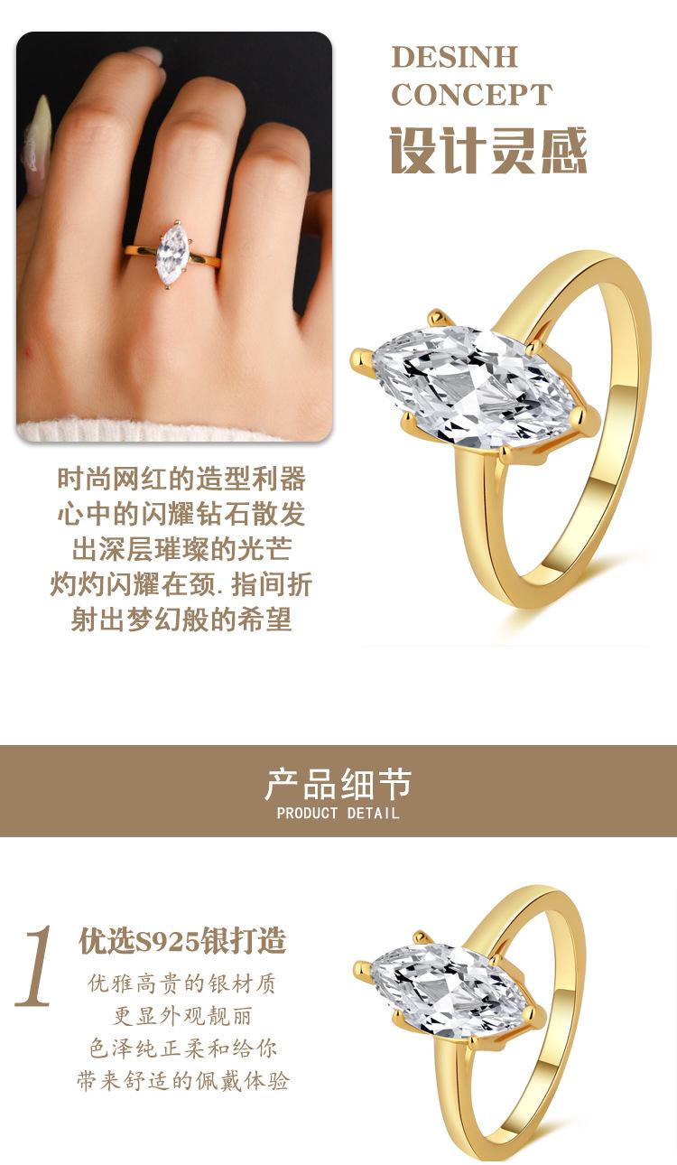 Comercio exterior transfronterizo nuevo anillo de moissanita de plata esterlina s925 con ojo de caballo mosan simple sei anillo de mujer en stock al por mayor