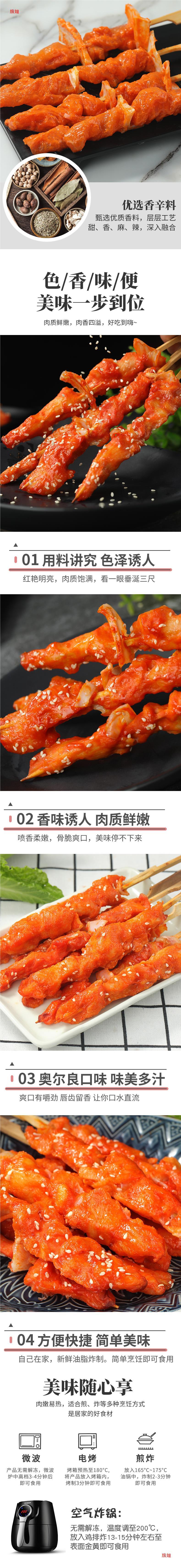 Brochetas de barbacoa de hueso y carne conectadas Congelados Semiterminados Aperitivos fritos Tiras de pollo Nuggets de pollo Brochetas fritas Ingredientes Lomo comercial