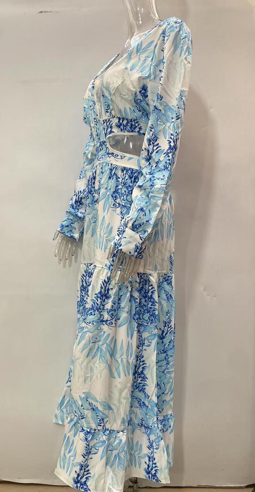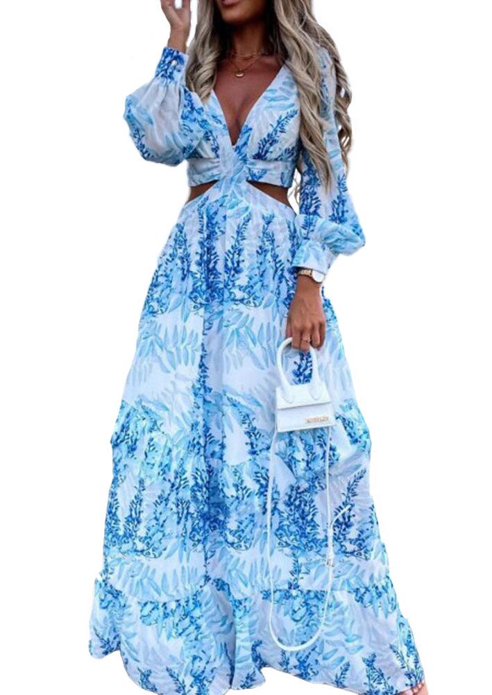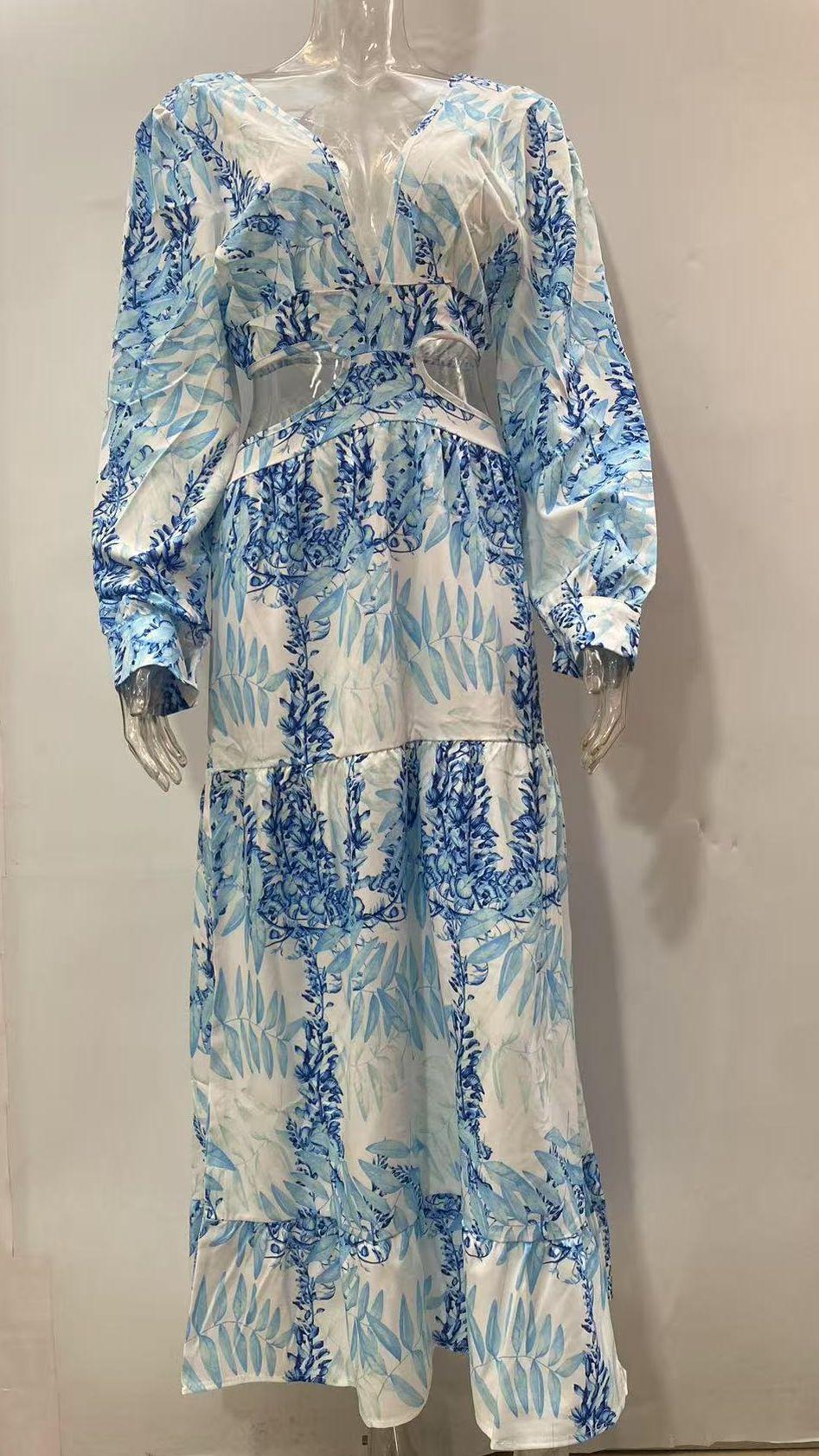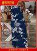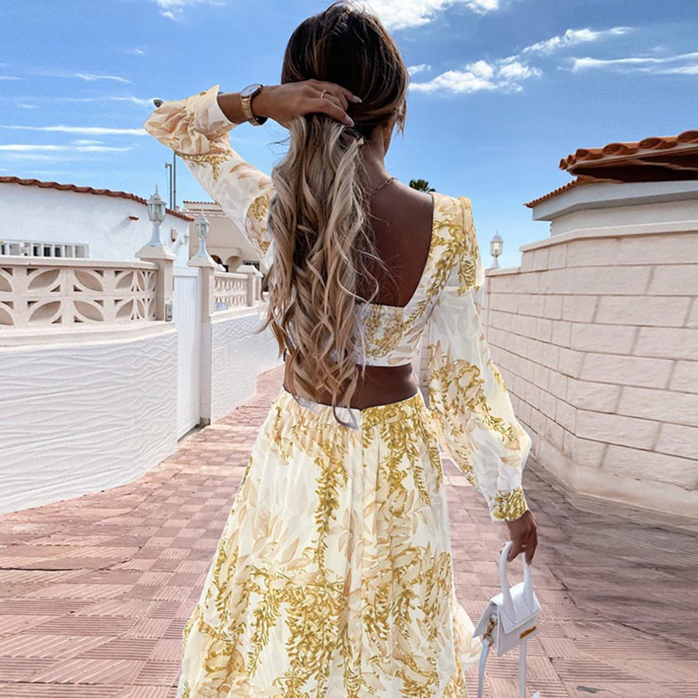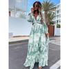 Vestido elegante de manga larga con cuello en V y estampado largo para mujer, primavera 2022, moda europea y americana de Amazon