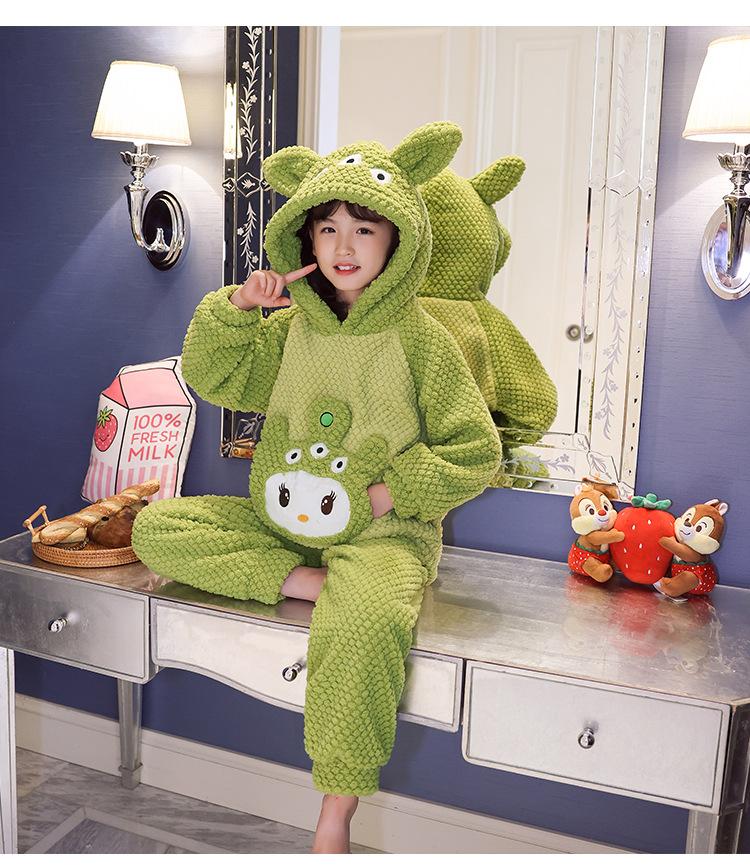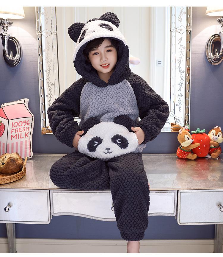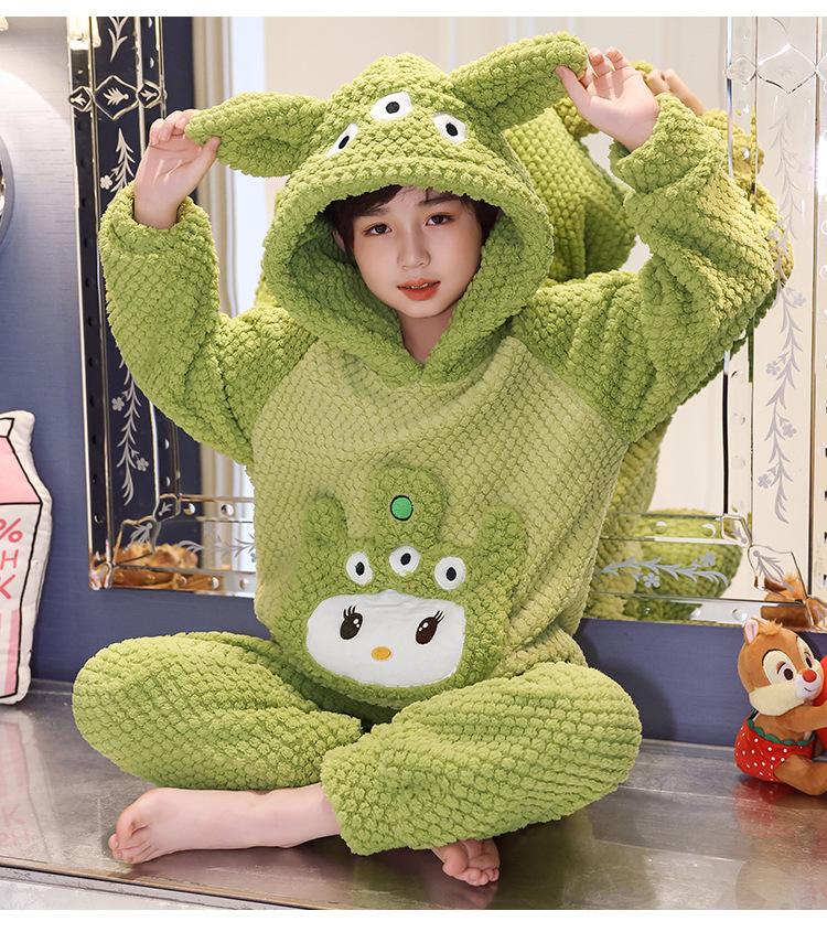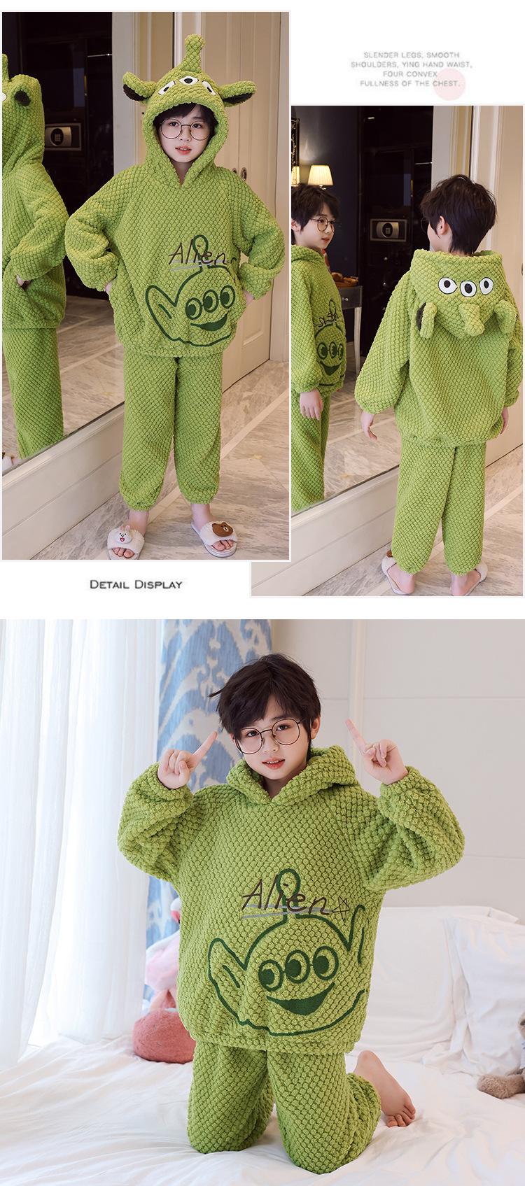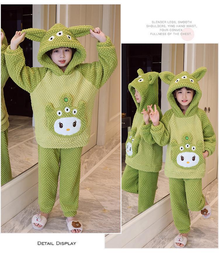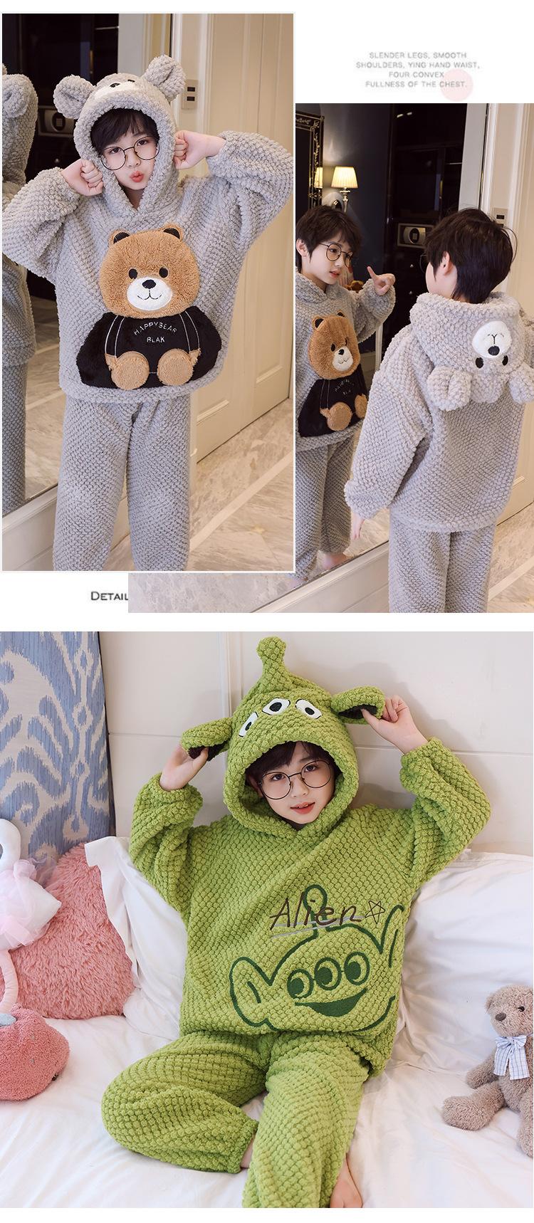 Pijamas de franela de invierno para niños, nuevos, con forro polar, gruesos, con capucha, para niños y niñas, ropa de casa de dibujos animados, traje de comercio exterior