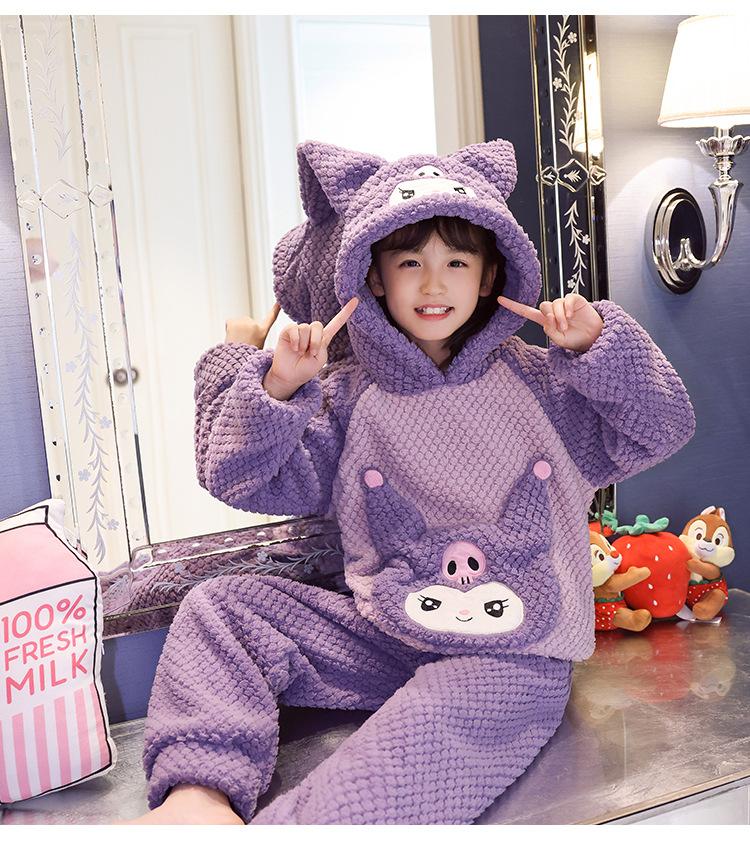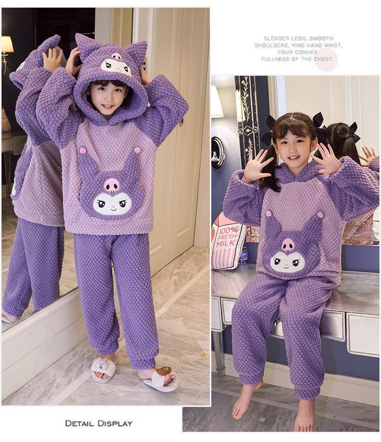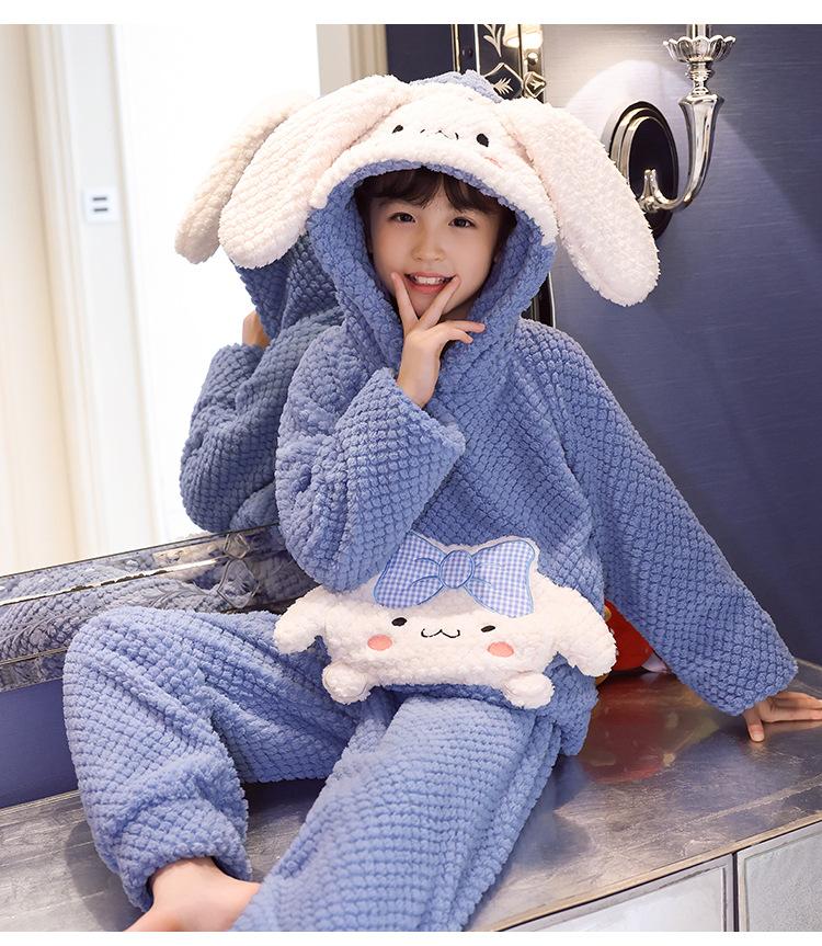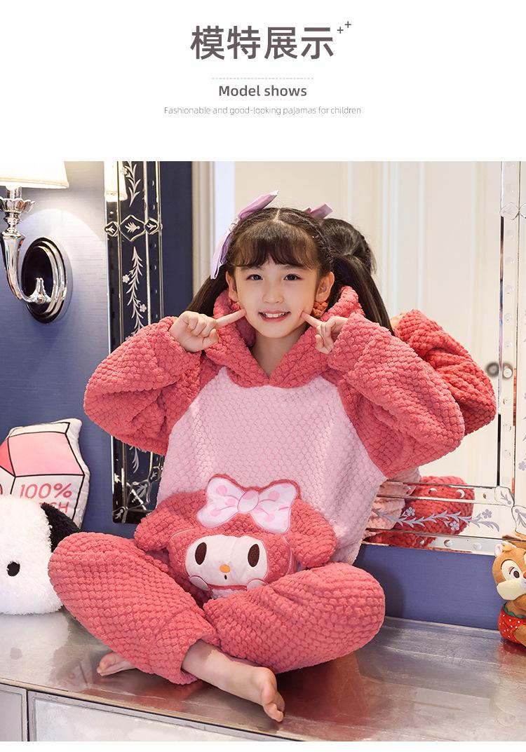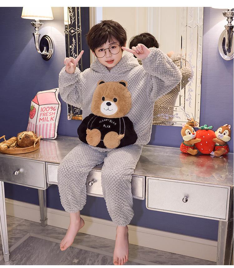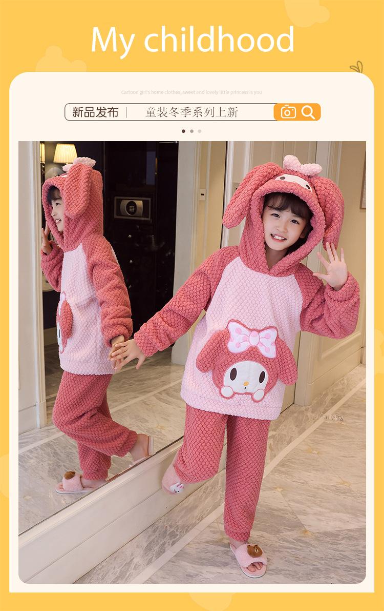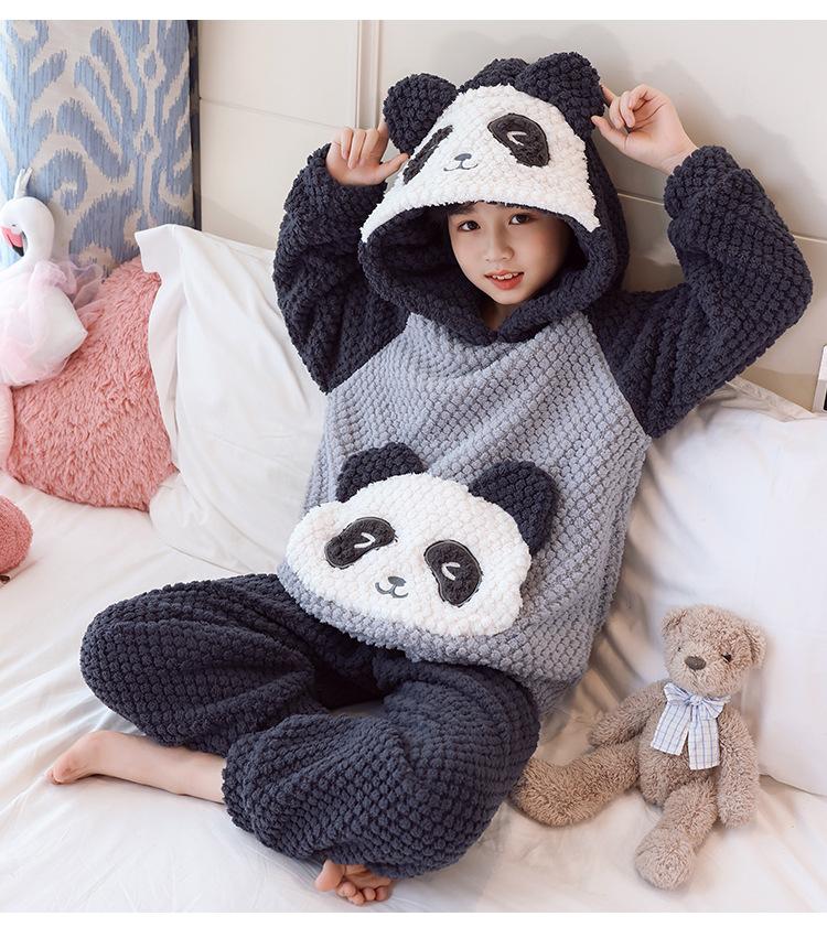 Pijamas de franela de invierno para niños, nuevos, con forro polar, gruesos, con capucha, para niños y niñas, ropa de casa de dibujos animados, traje de comercio exterior