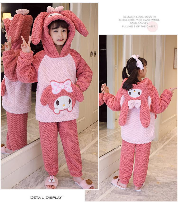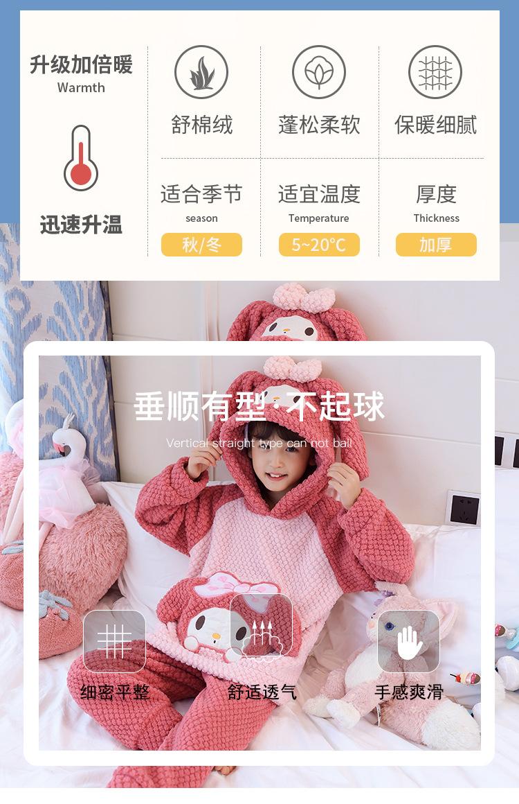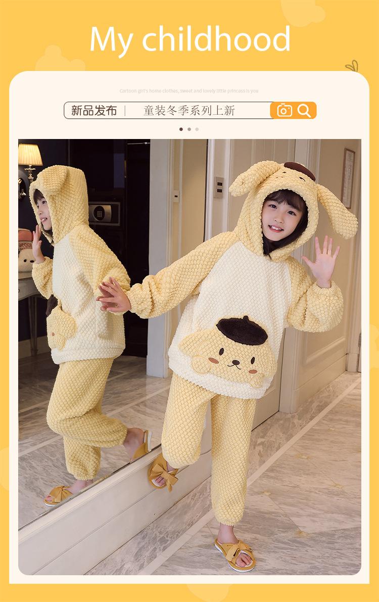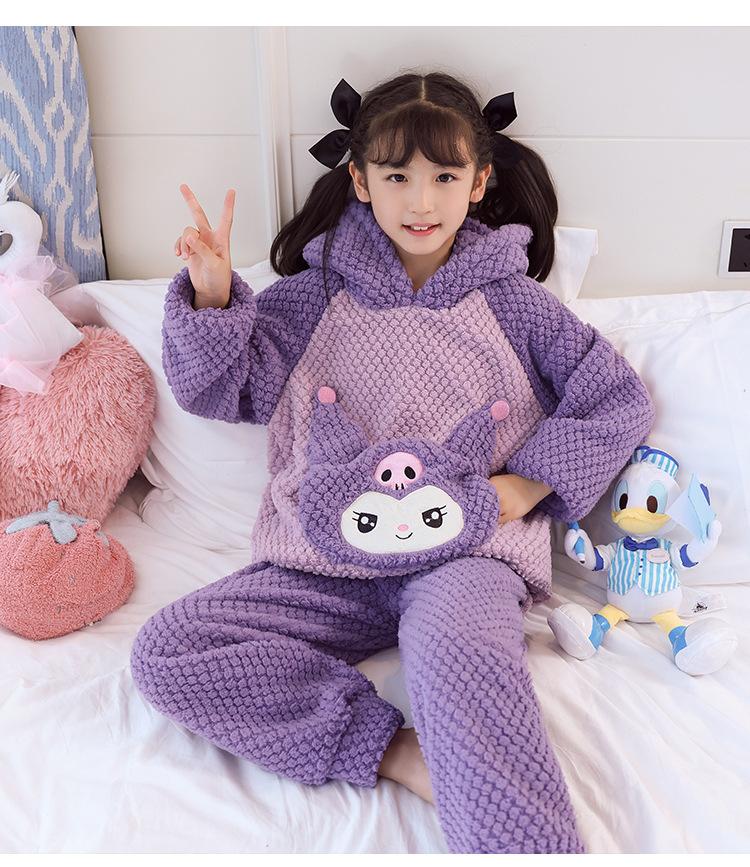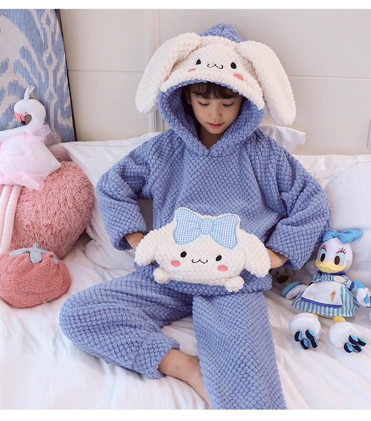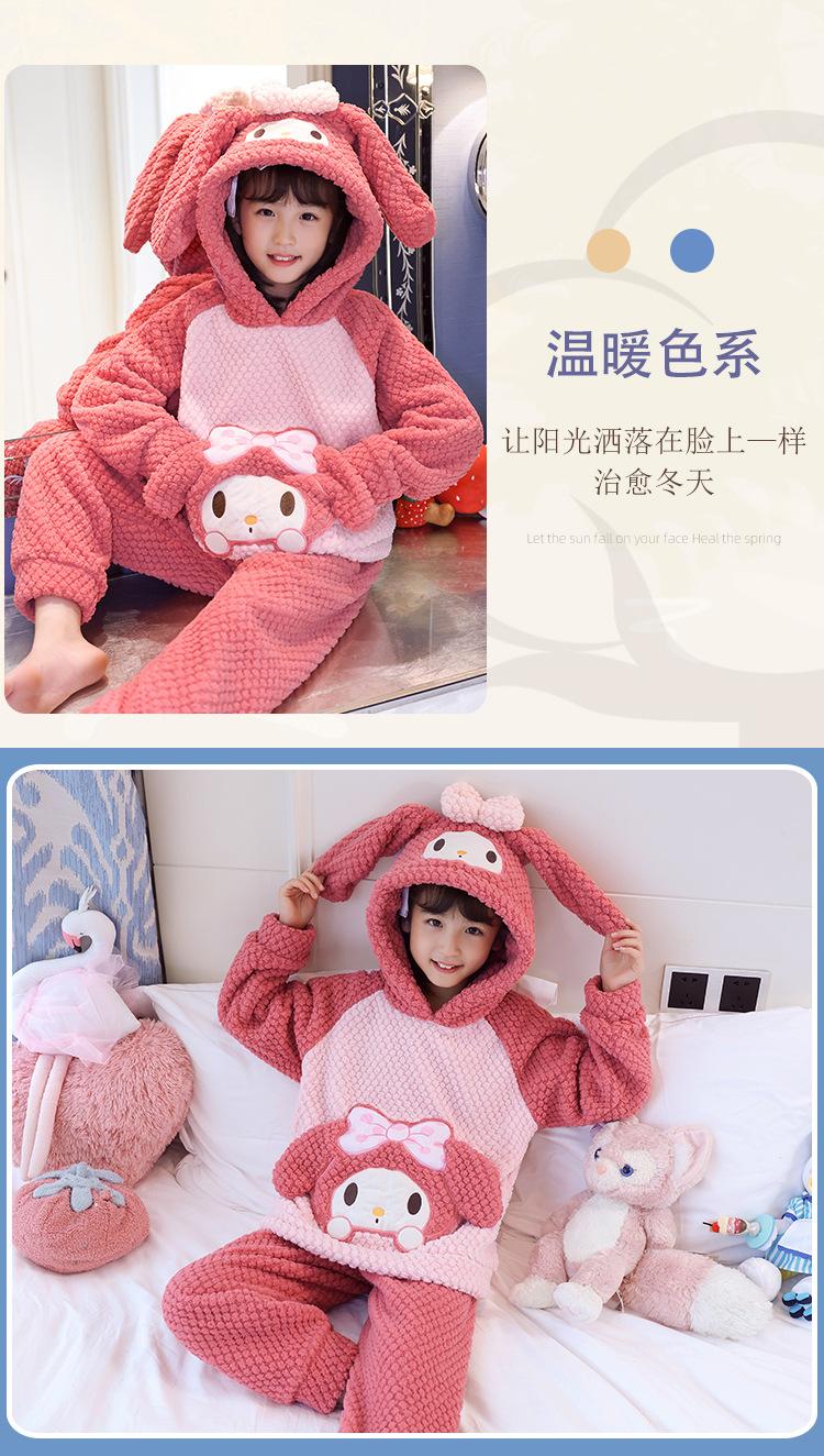 Pijamas de franela de invierno para niños, nuevos, con forro polar, gruesos, con capucha, para niños y niñas, ropa de casa de dibujos animados, traje de comercio exterior