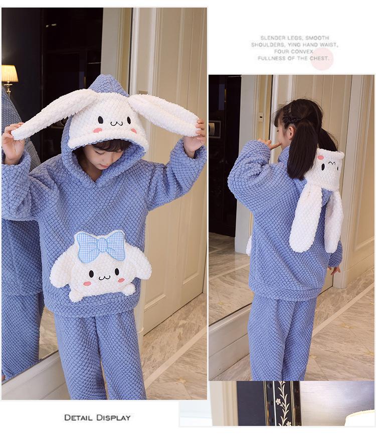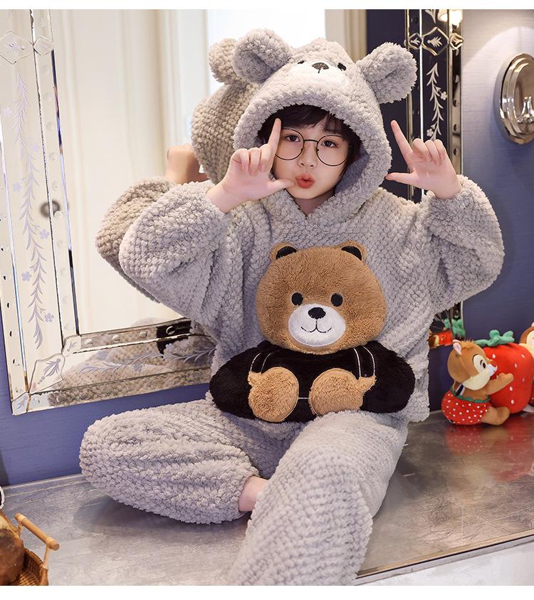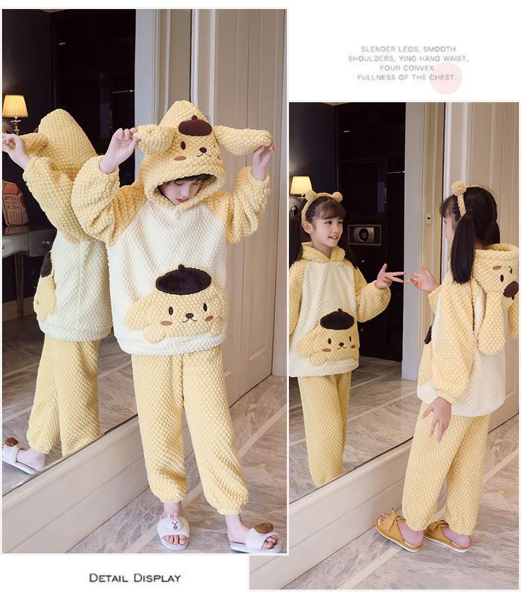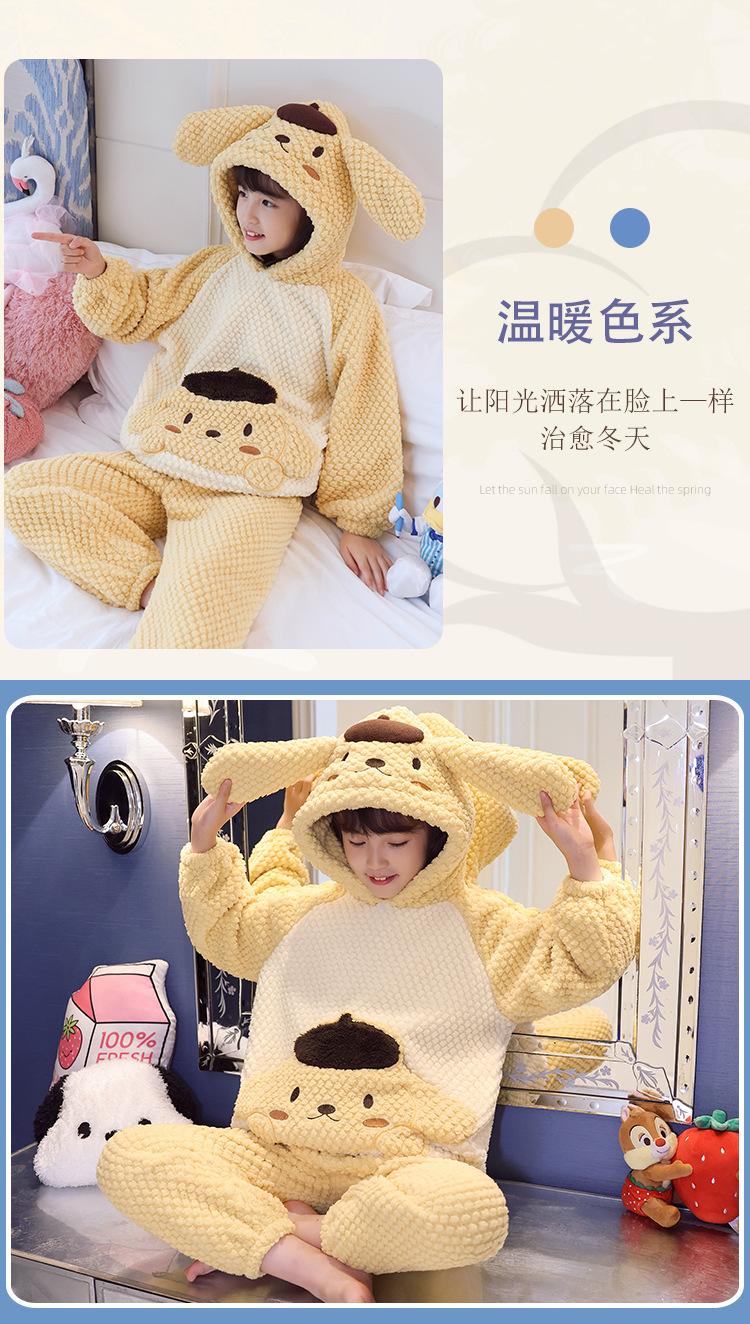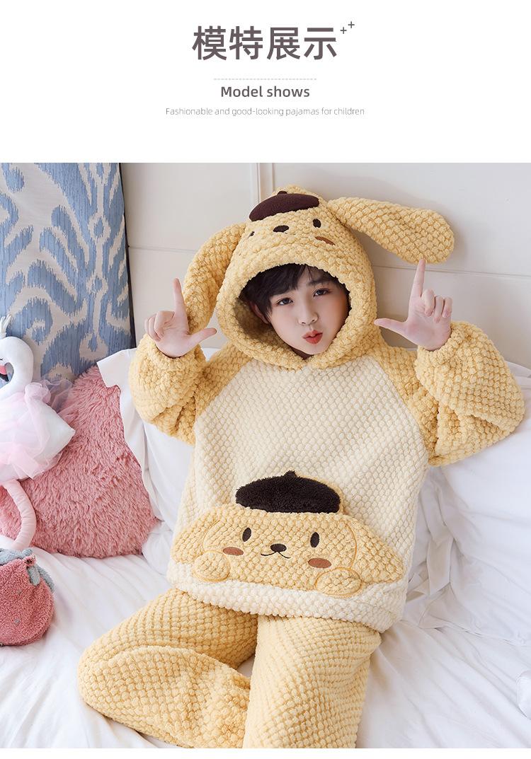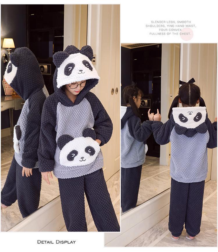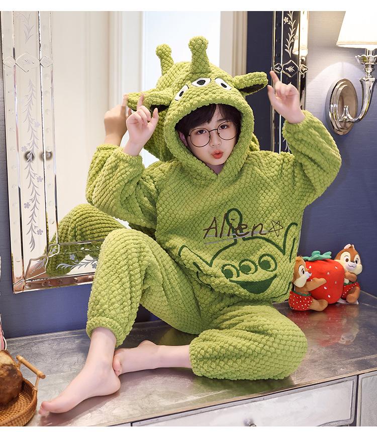 Pijamas de franela de invierno para niños, nuevos, con forro polar, gruesos, con capucha, para niños y niñas, ropa de casa de dibujos animados, traje de comercio exterior