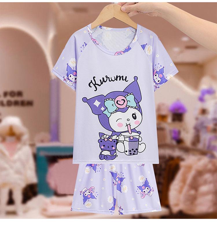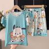 Pijamas coreanos de manga corta para niñas, de verano, finos, con dibujos animados, para el hogar y el verano