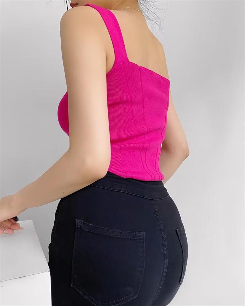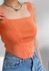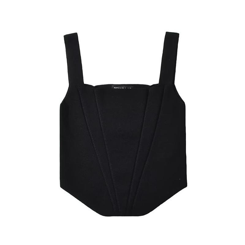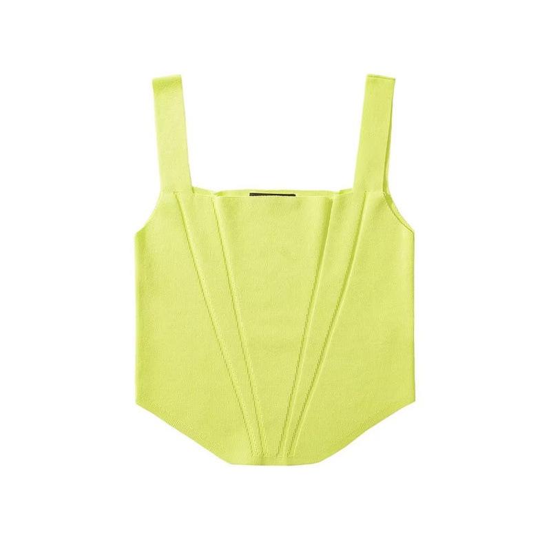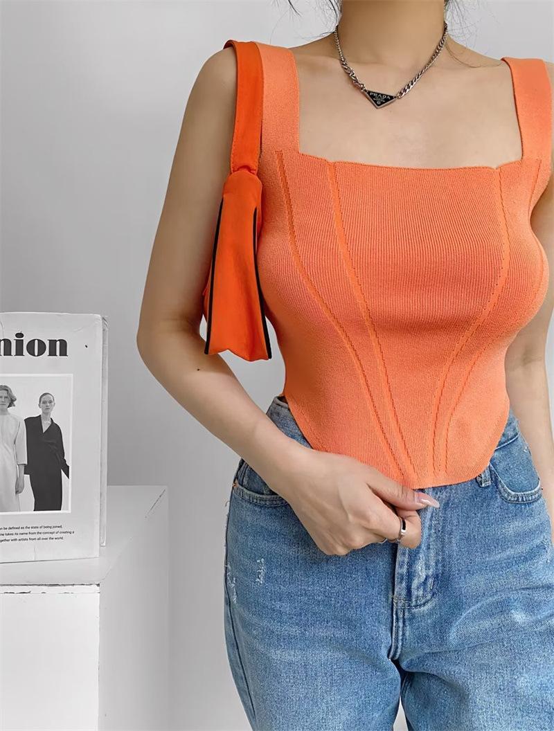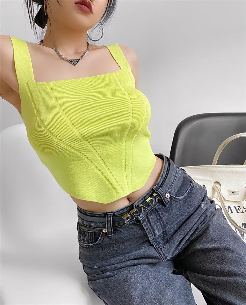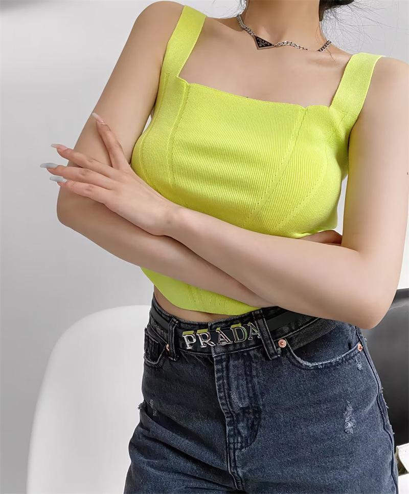 Chaleco de cuello cuadrado estilo dulce y picante de color puro nuevo de verano 2023, top ajustado sexy, tirantes pequeños y curvos para mujer