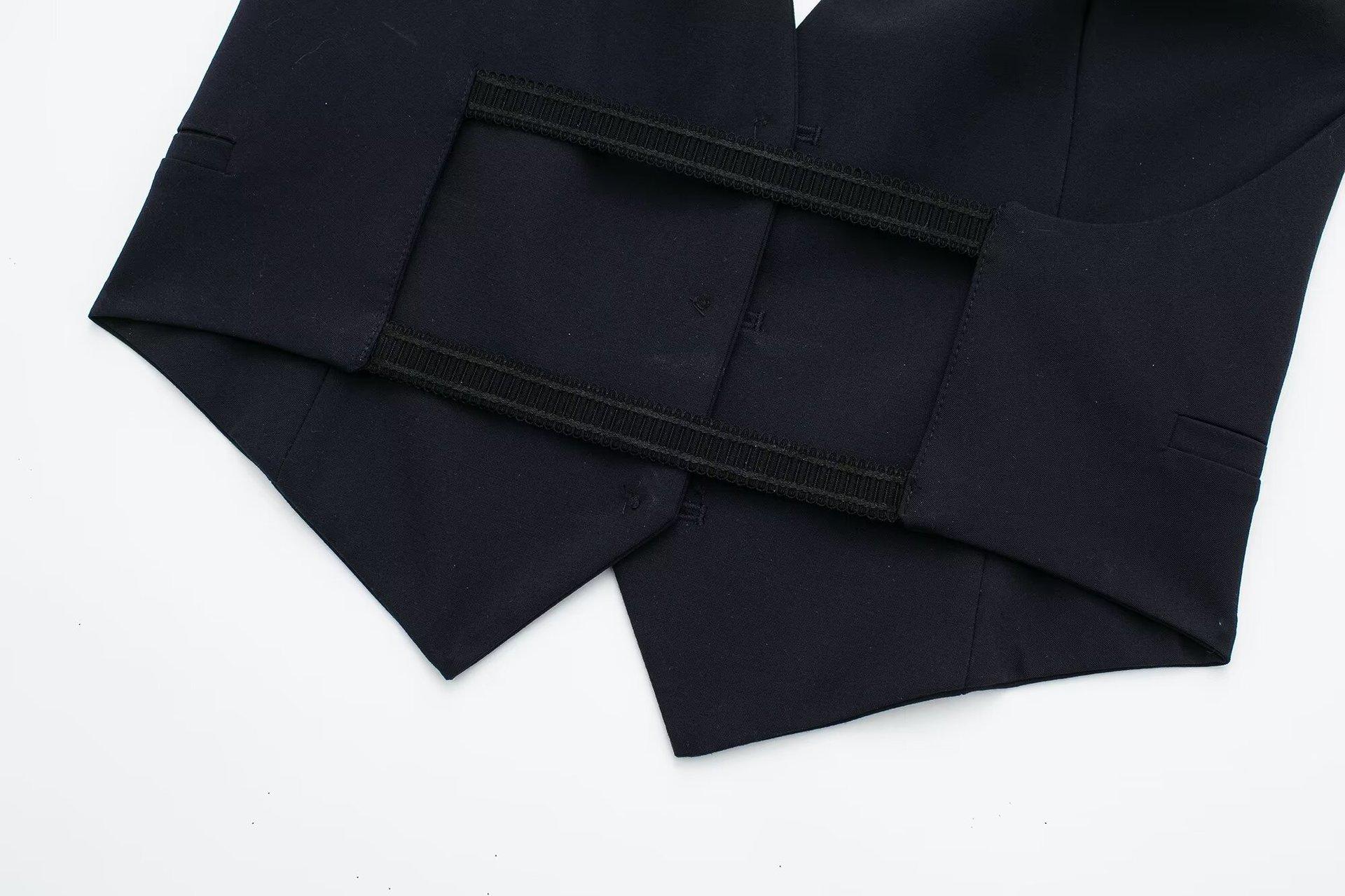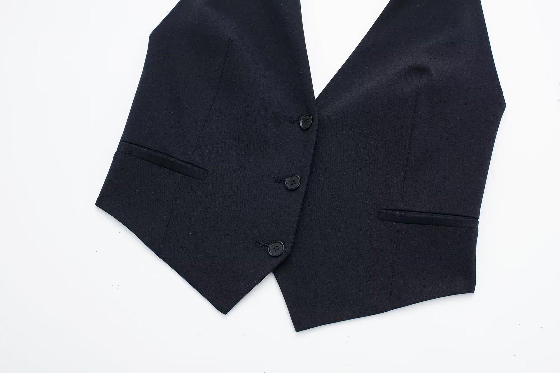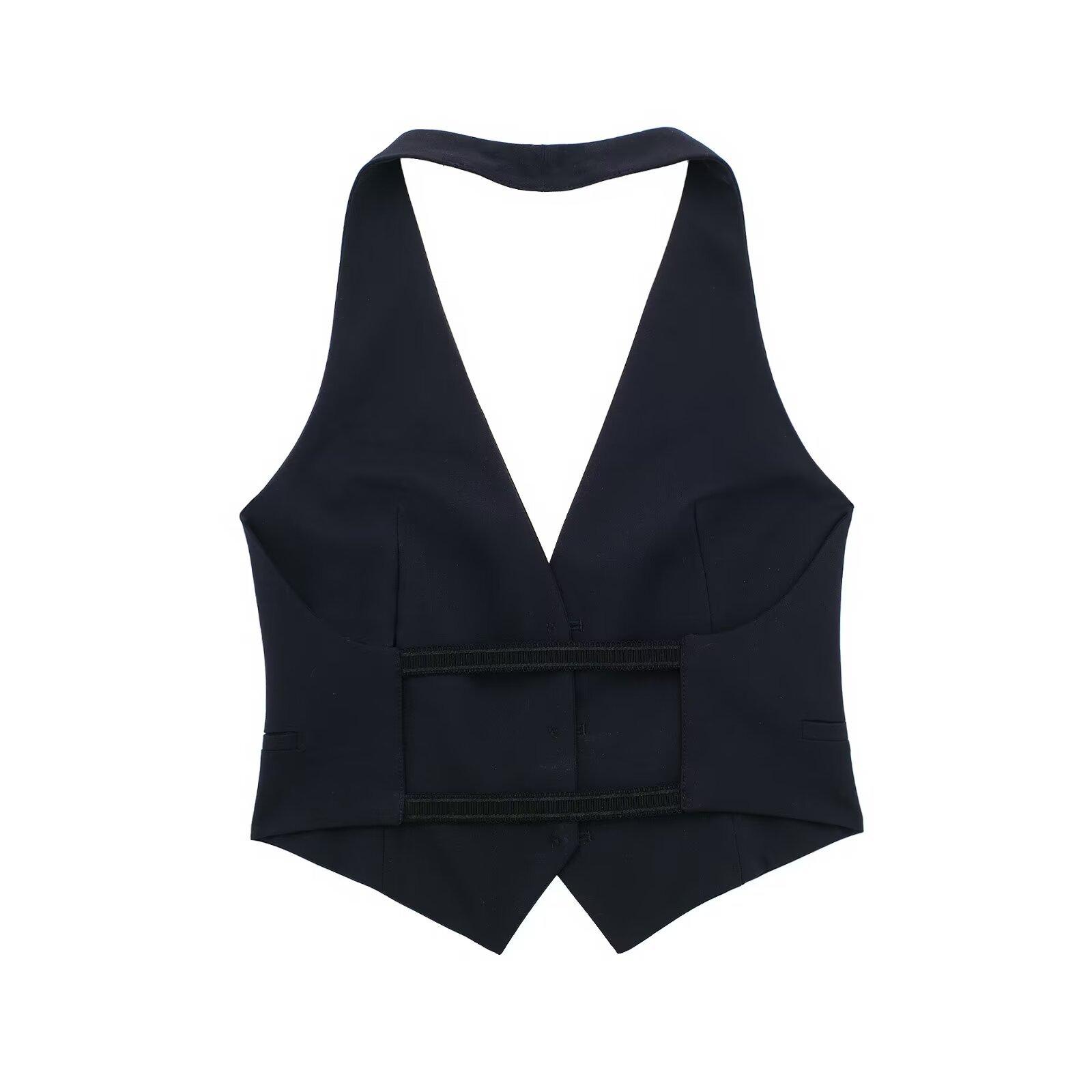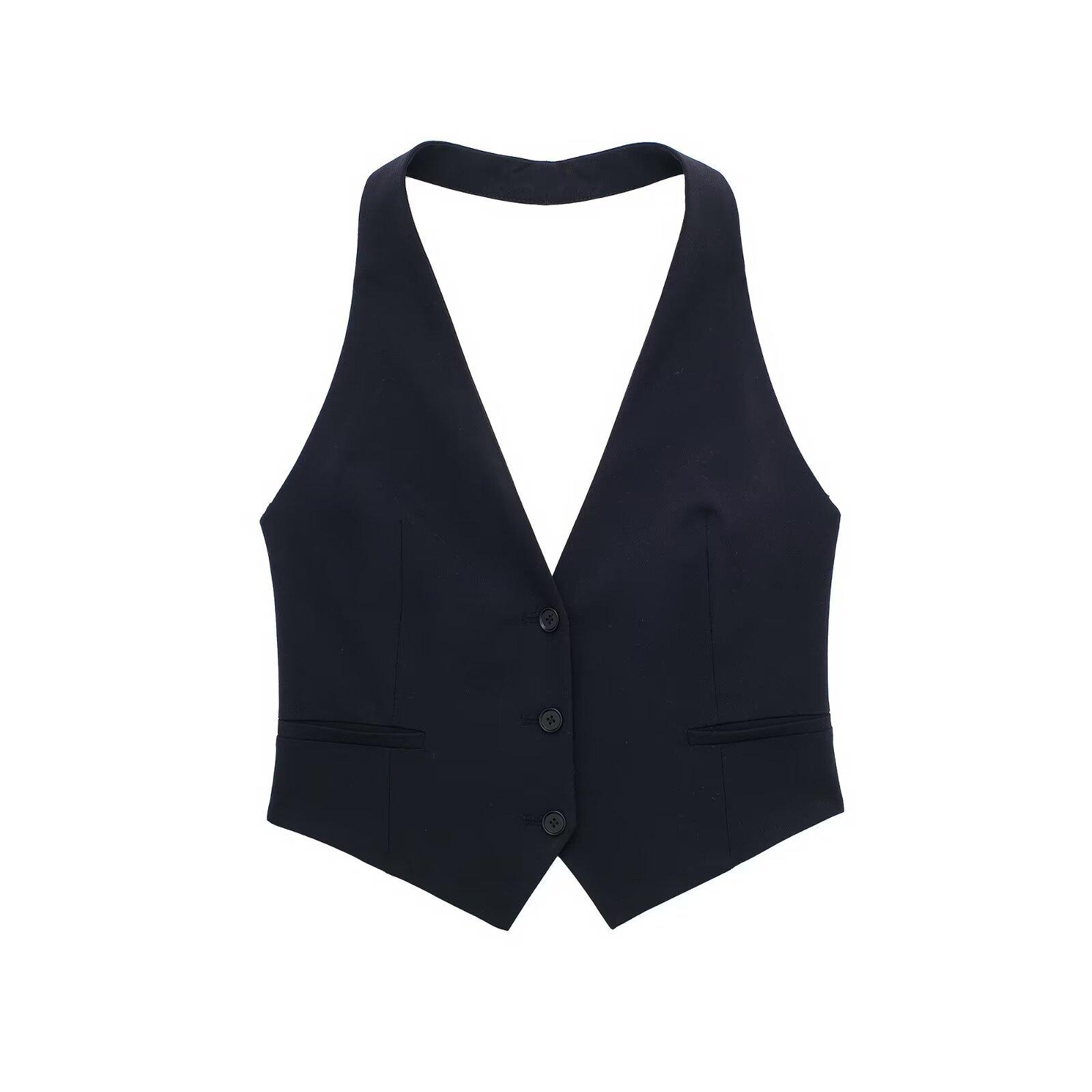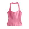 Chaleco corto ajustado con cuello colgante, ropa de mujer transfronteriza europea y americana de color sólido, novedad de primavera de 2024