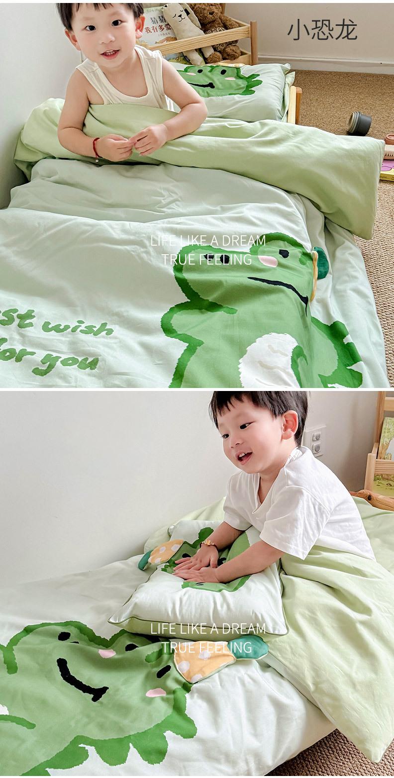 Set de Tres Piezas de Algodón Yunrou Clase A Cepillado Lindo Estampado Digital Jardín de Niños Funda Nórdica de Dibujos Animados Espesada Ropa de Cama