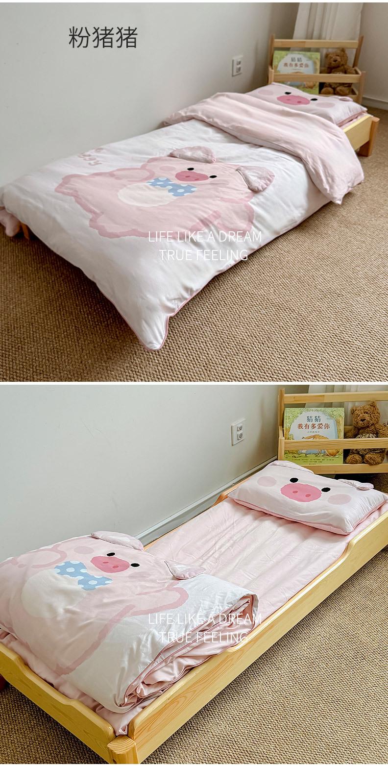 Kindergarten three-piece set (quilt cover + pillowcase + cushion cover), Feather silk cotton summer six-piece ...