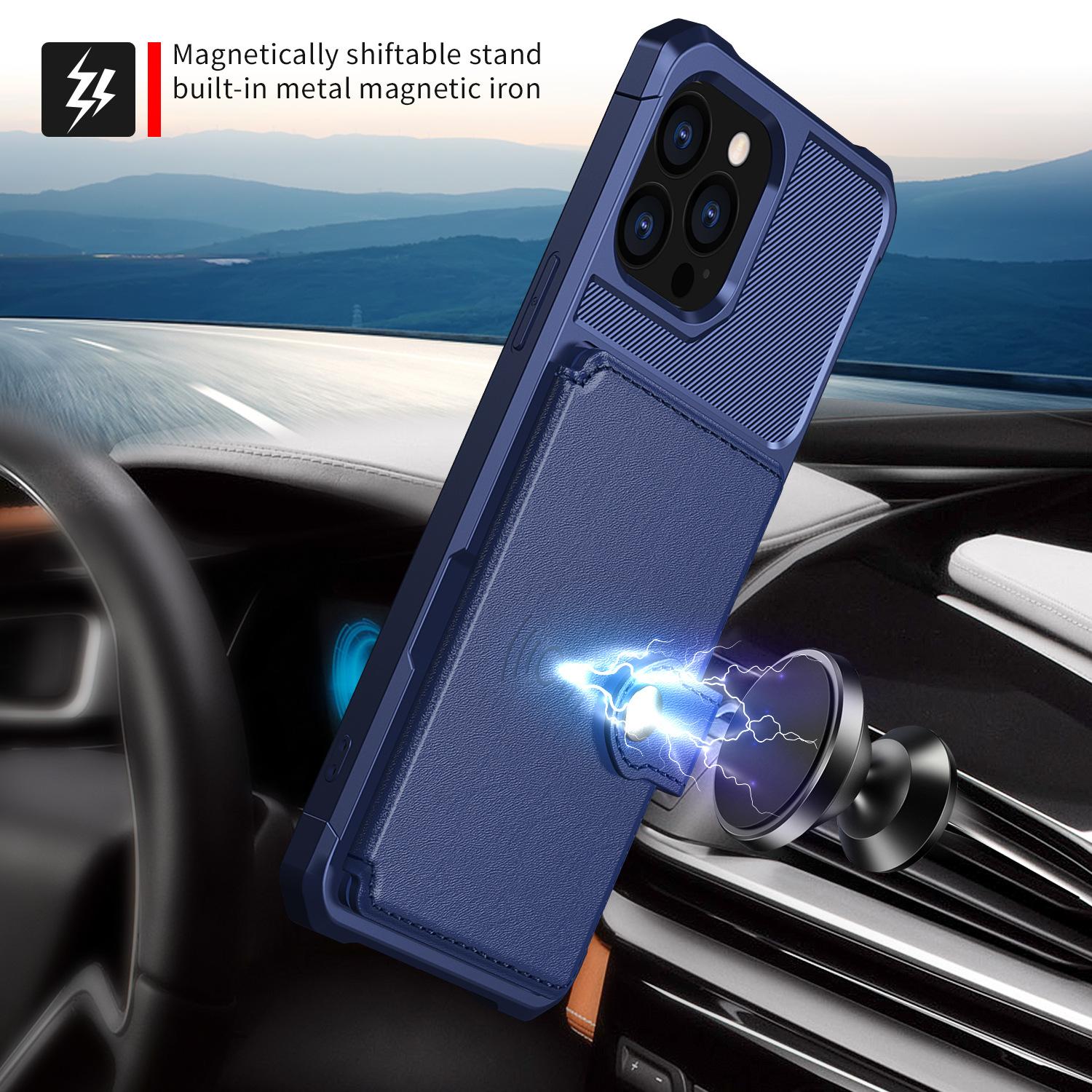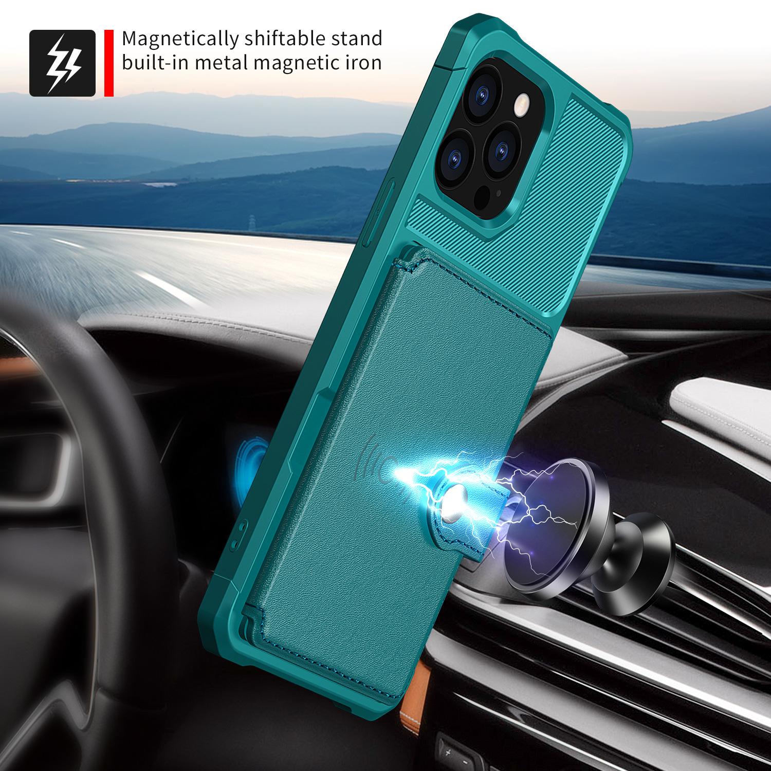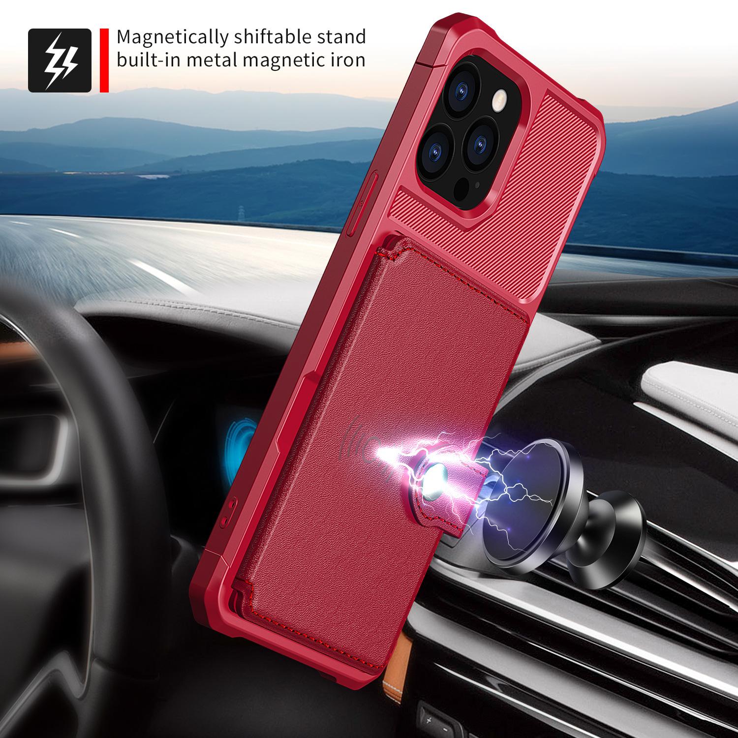 Funda de cuero con inserción de tarjeta para iPhone 13/13 ProMax, resistente a caídas y con absorción magnética para coche, compatible con el mercado transfronterizo.
