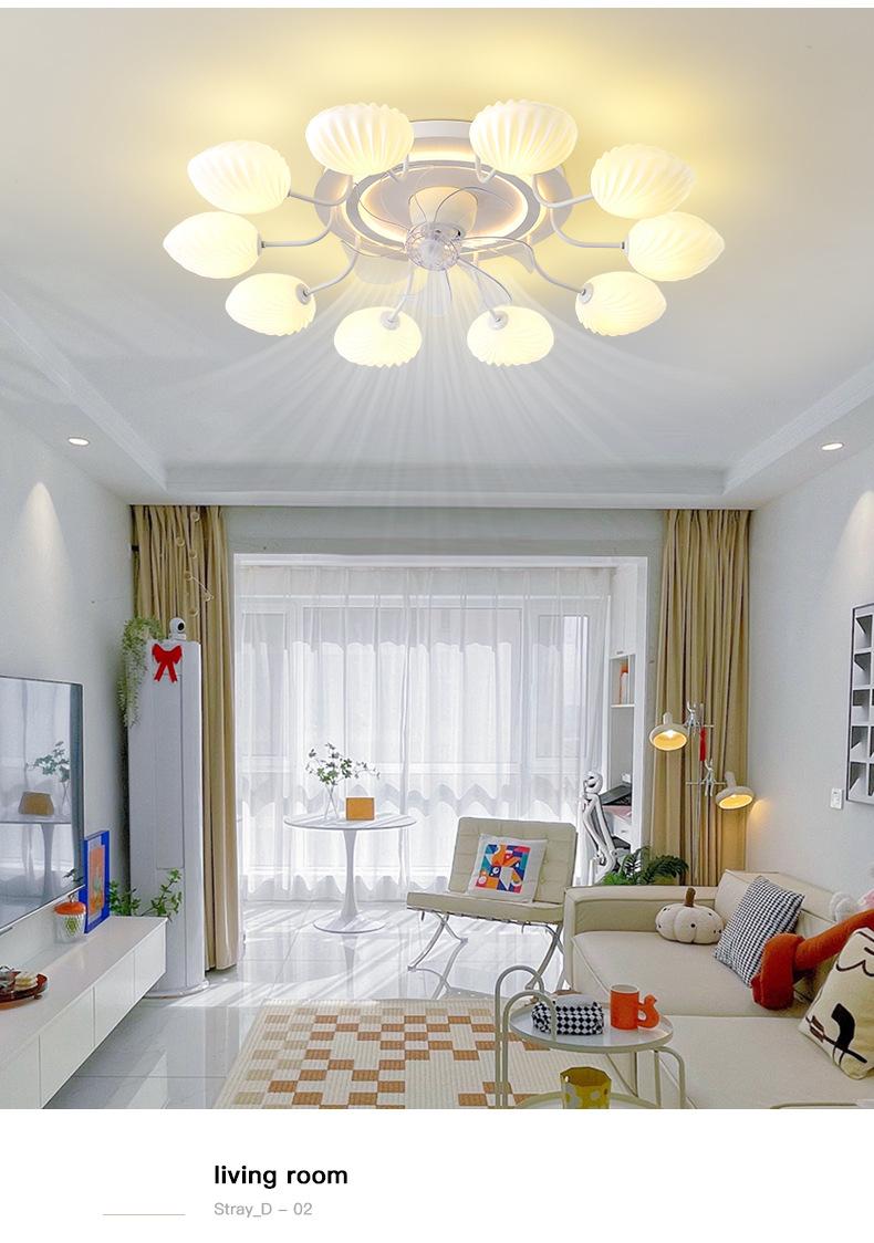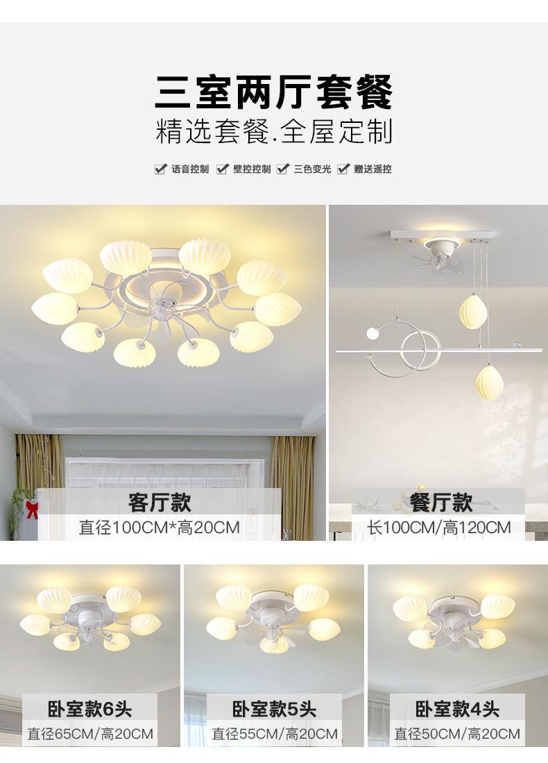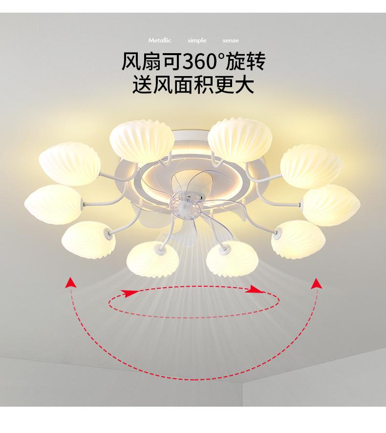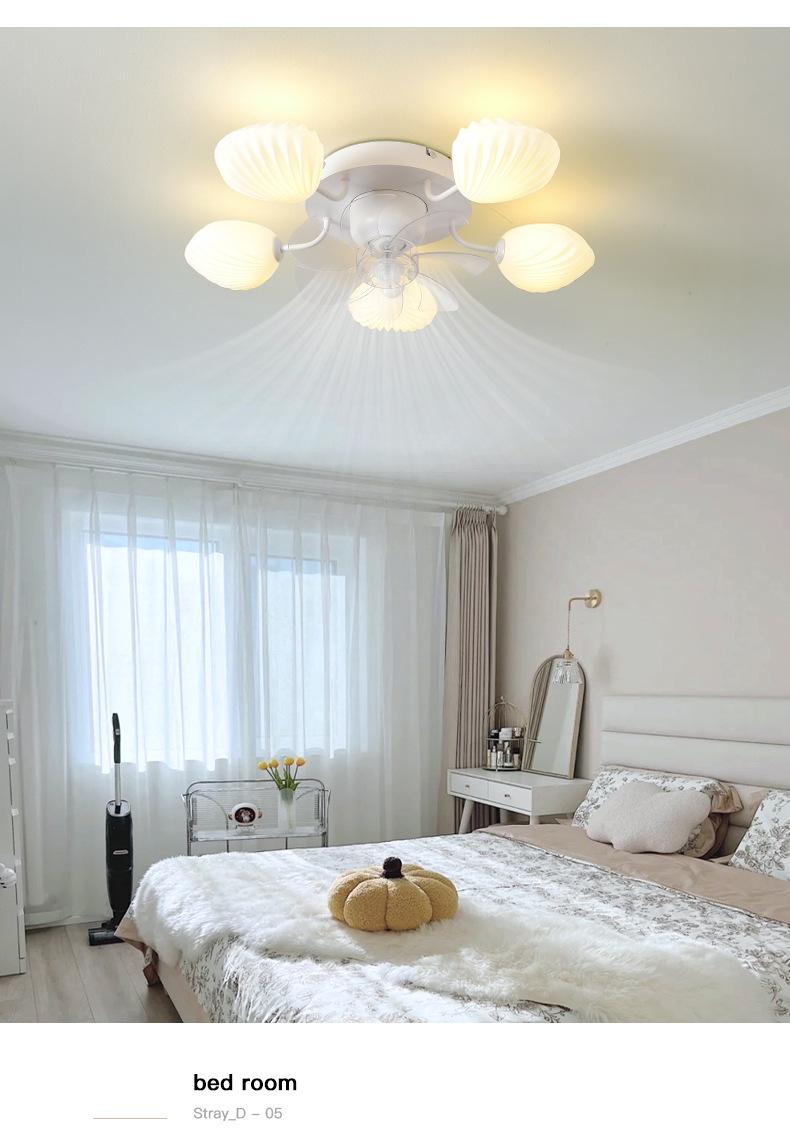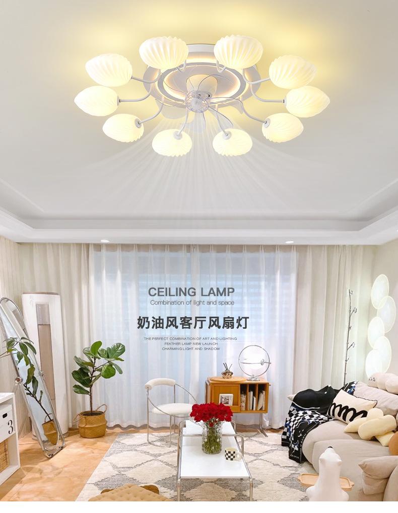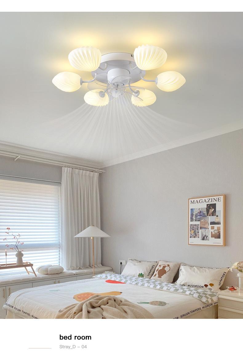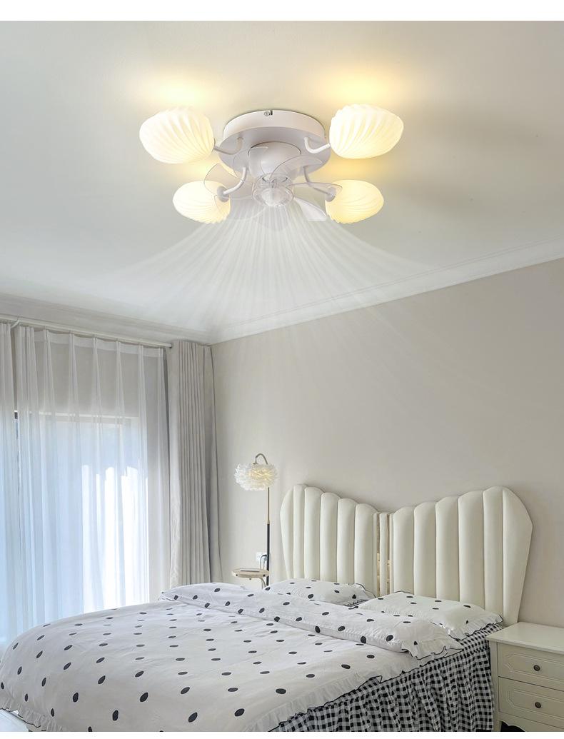 Lámpara de ventilador lámpara de techo sala de estar lámpara de ventilador de techo dormitorio sala de estar crema concha creativa lámparas de ventilador integradas