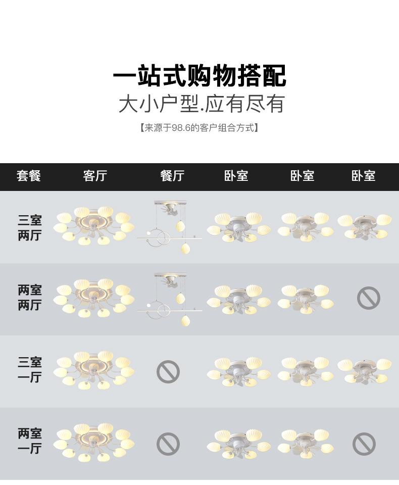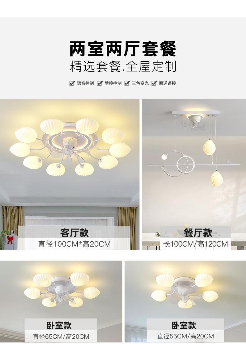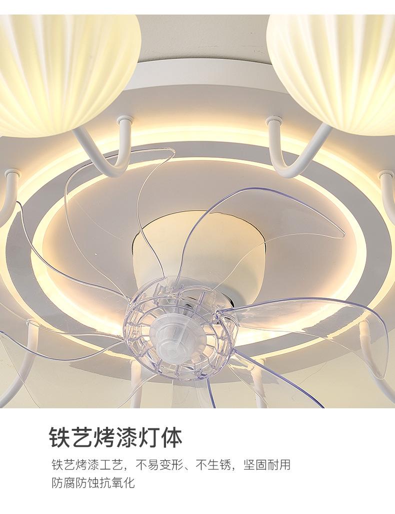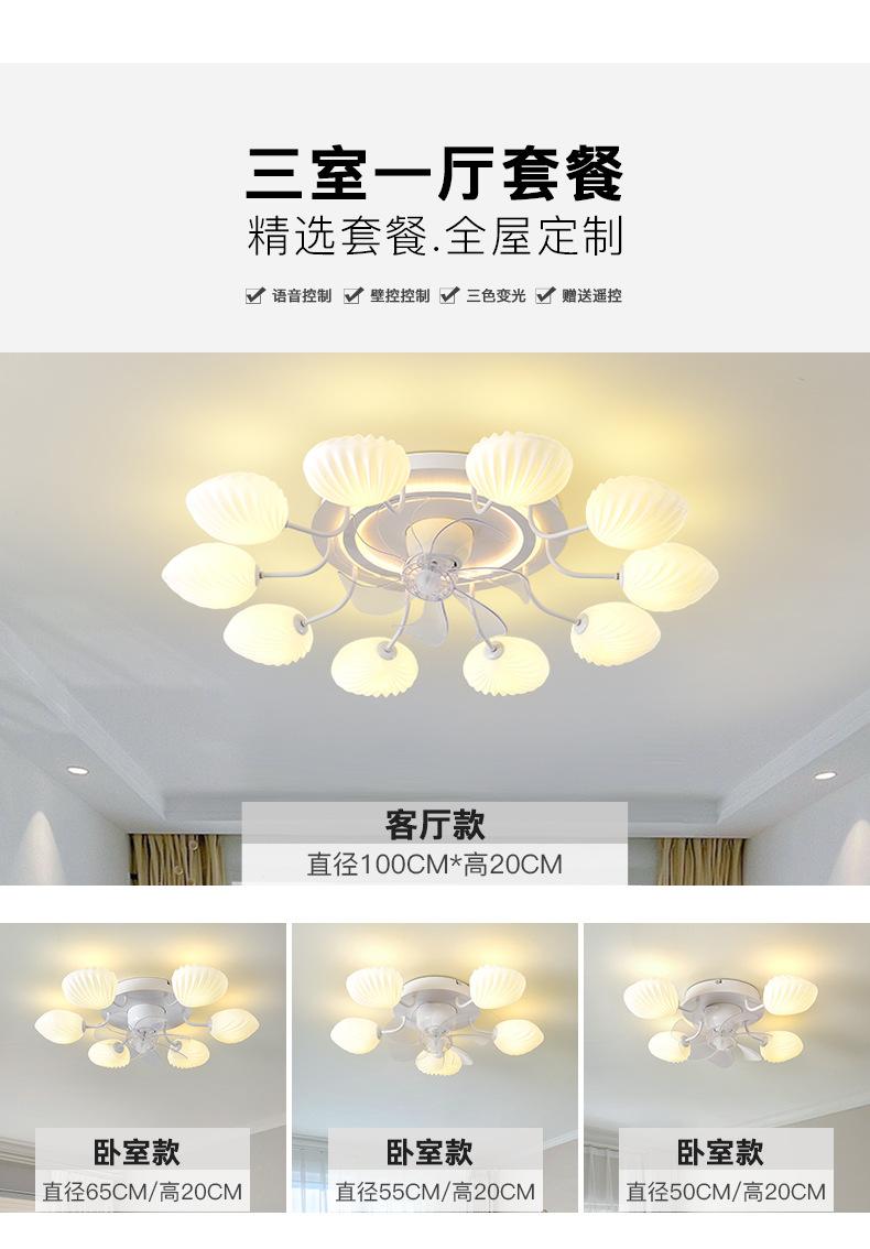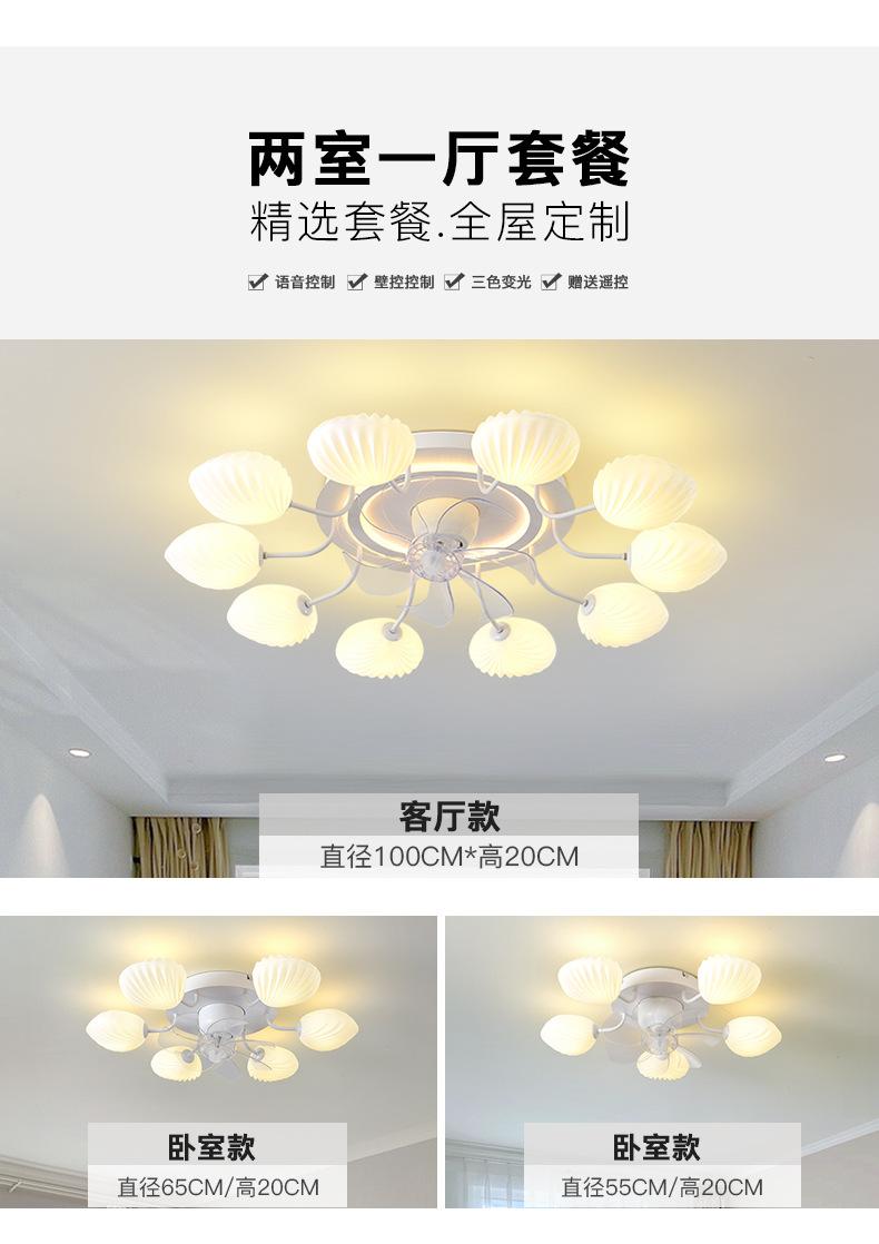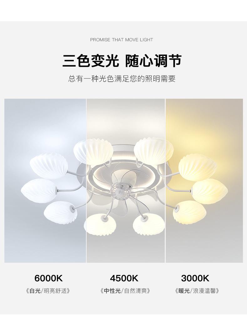 Lámpara de ventilador lámpara de techo sala de estar lámpara de ventilador de techo dormitorio sala de estar crema concha creativa lámparas de ventilador integradas