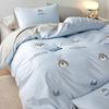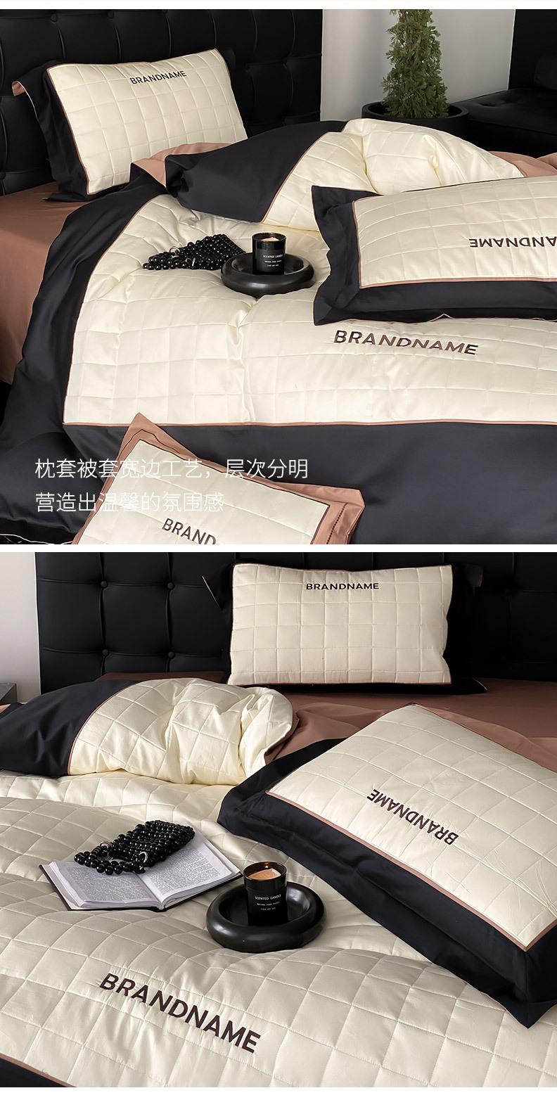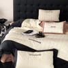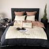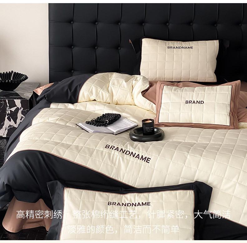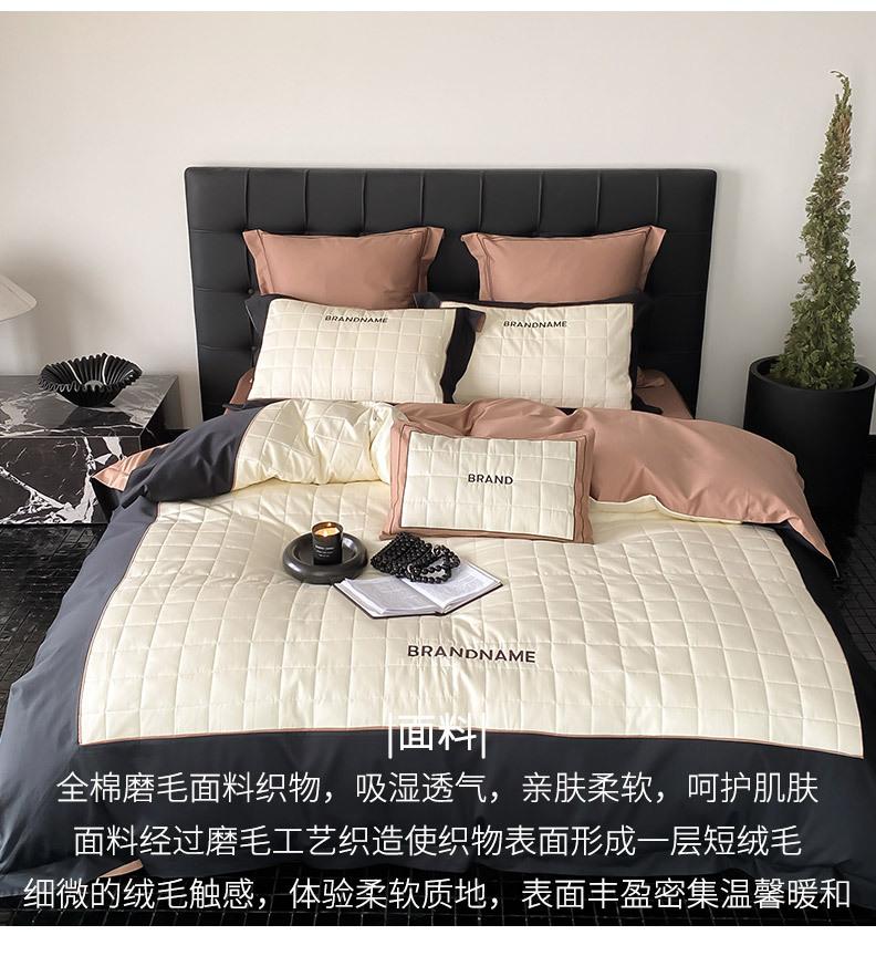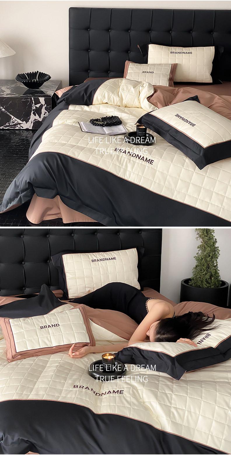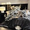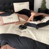 Conjunto de edredón clásico de algodón con bordado de lija de cuatro piezas, otoño/invierno, 100%, con funda de edredón gruesa a cuadros, ropa de cama en blanco y negro
