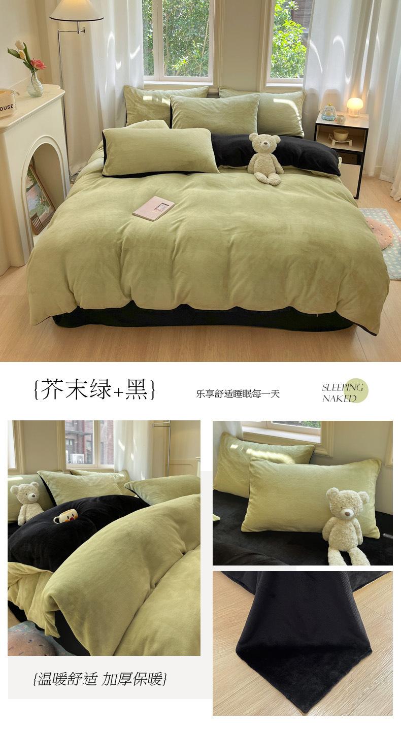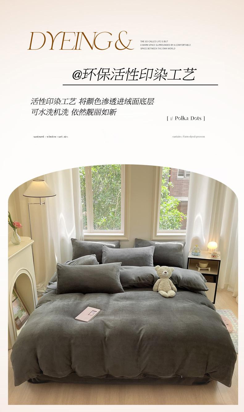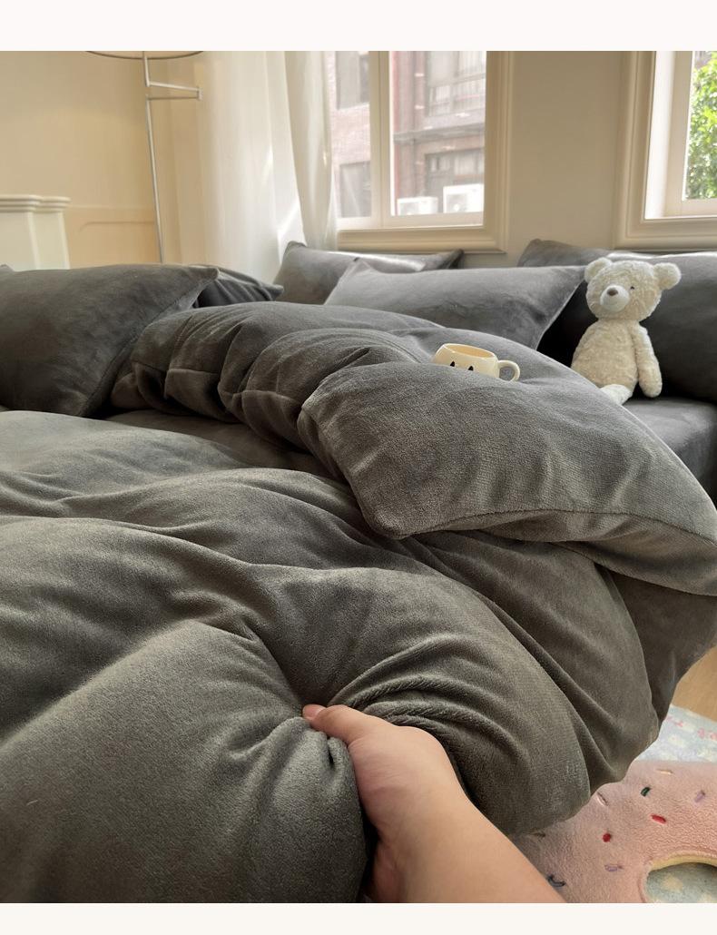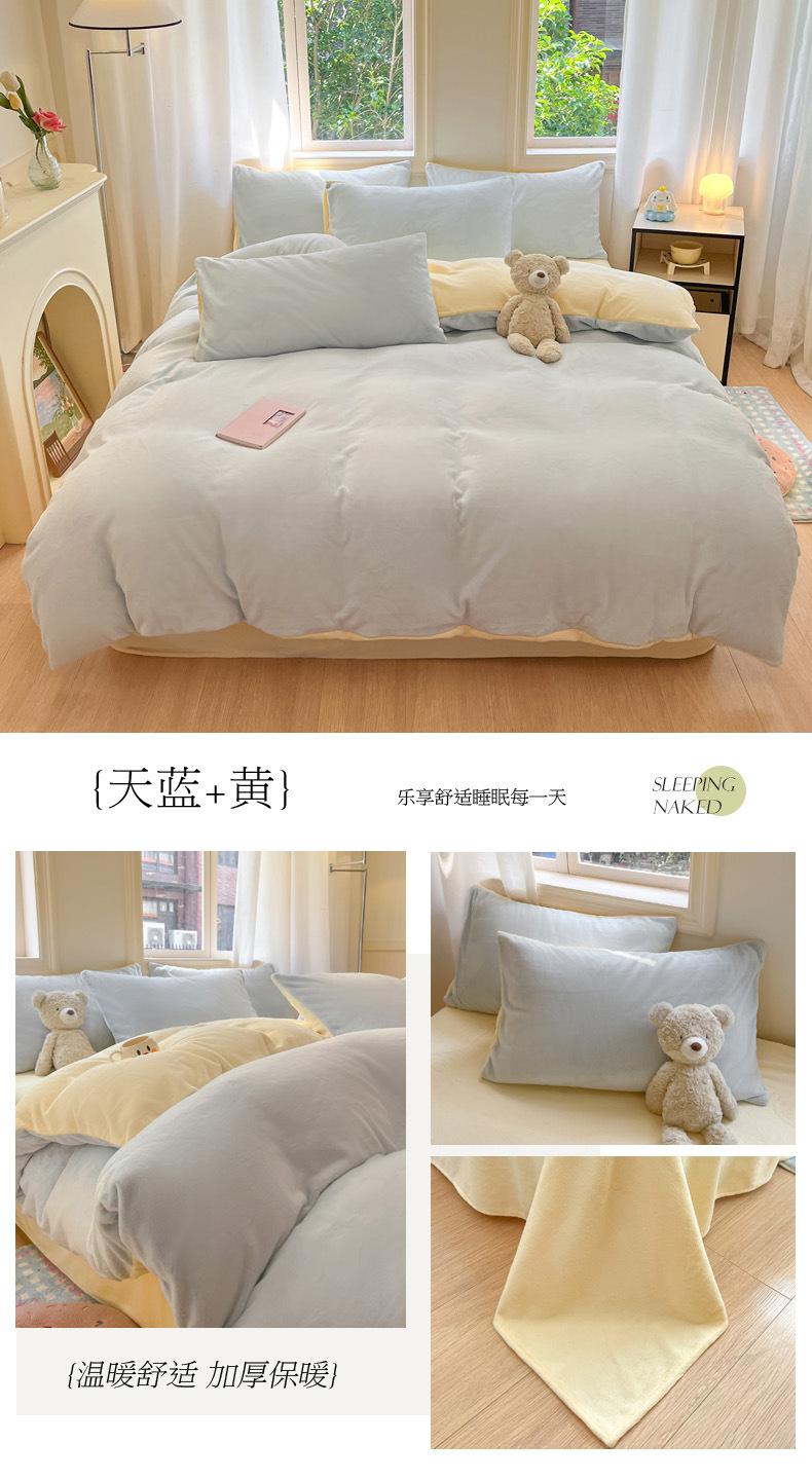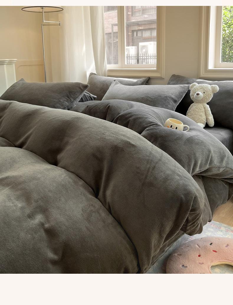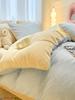 Juego de cuatro piezas de terciopelo de leche de doble cara para invierno, Ropa de cama gruesa de terciopelo coral, Forro polar, Cálido, Franela, Funda nórdica, Sábana