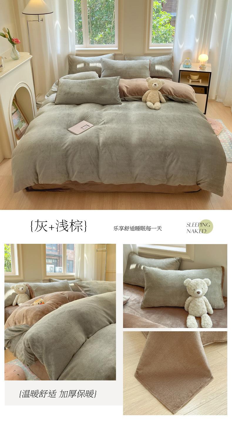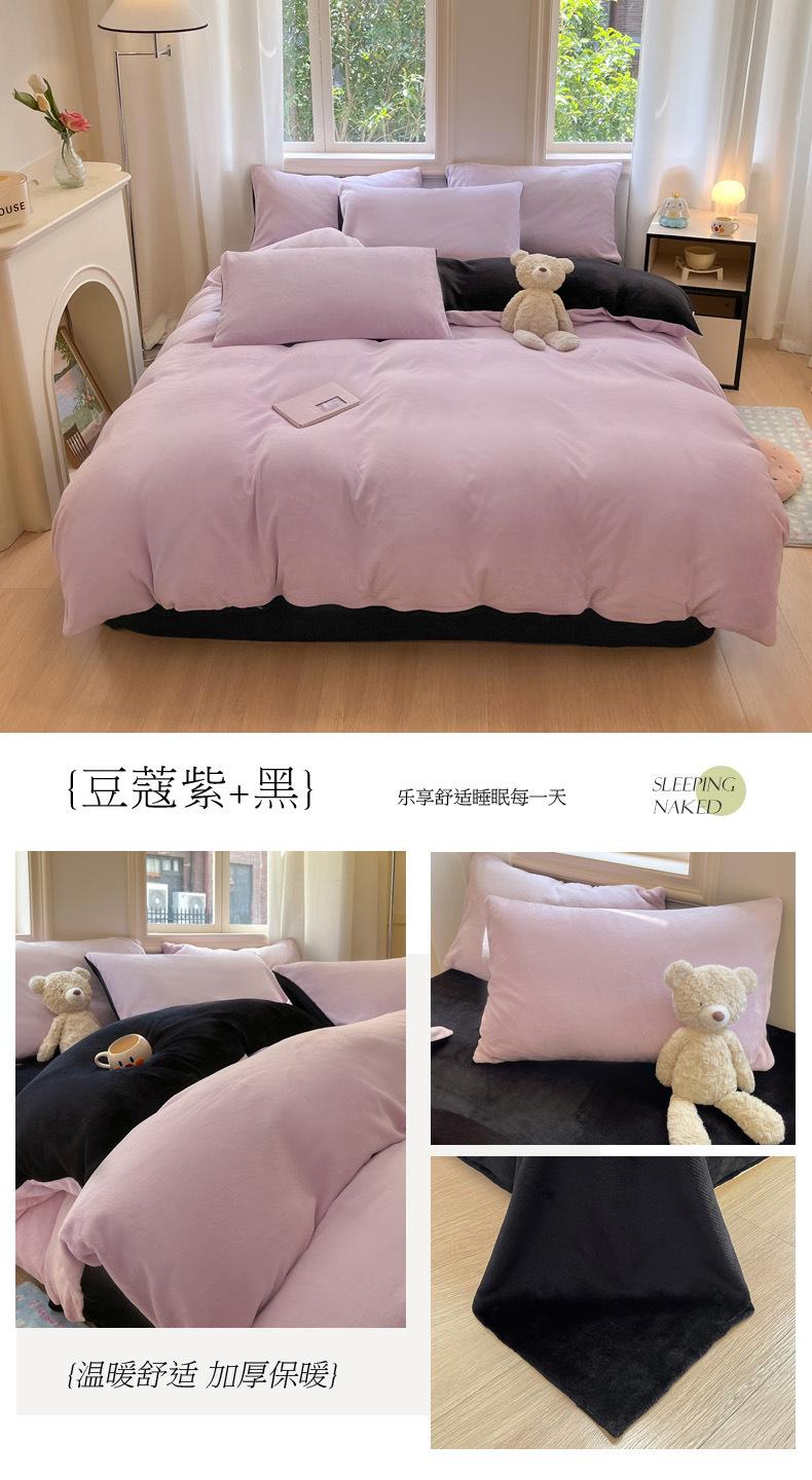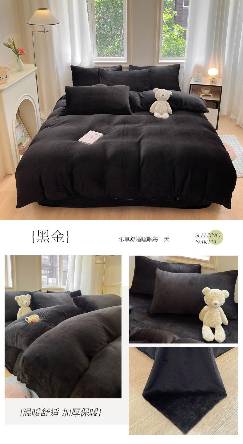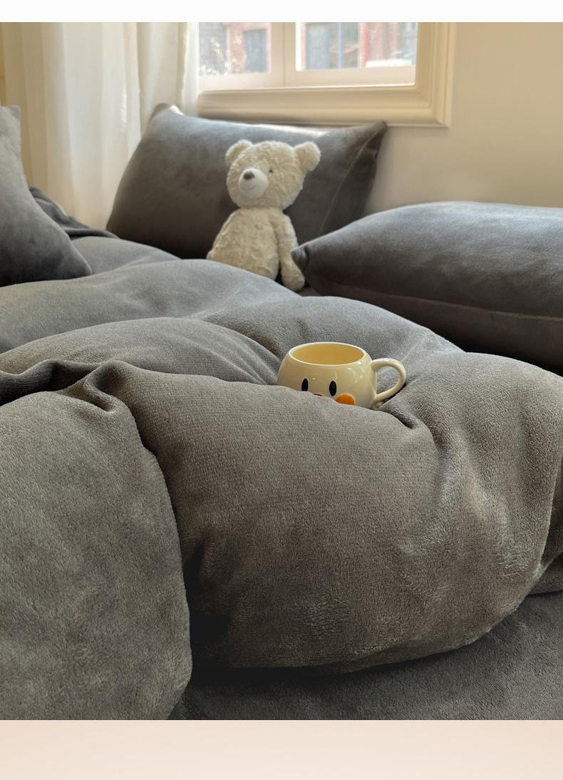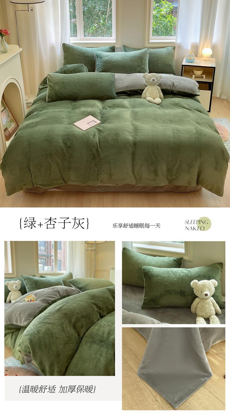 Juego de cuatro piezas de terciopelo de leche de doble cara para invierno, Ropa de cama gruesa de terciopelo coral, Forro polar, Cálido, Franela, Funda nórdica, Sábana