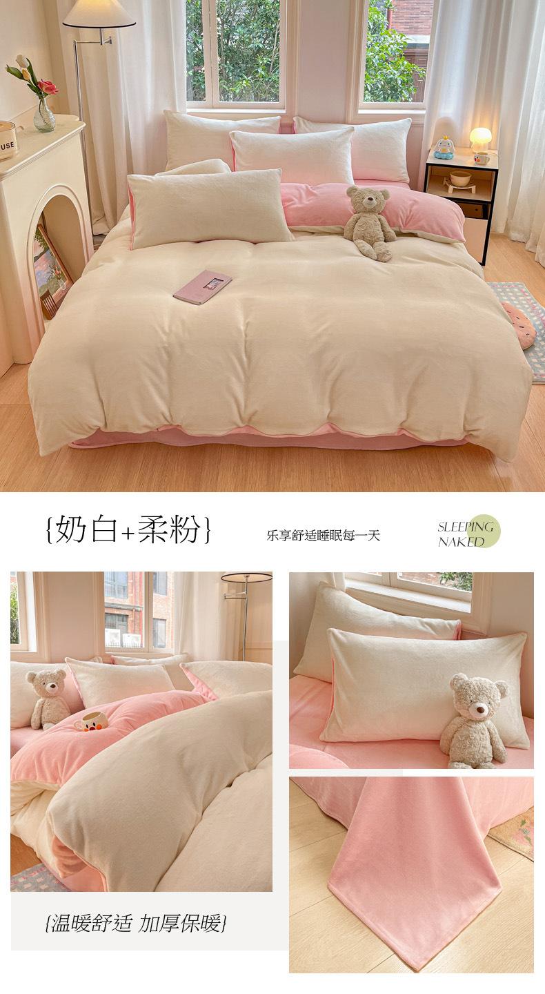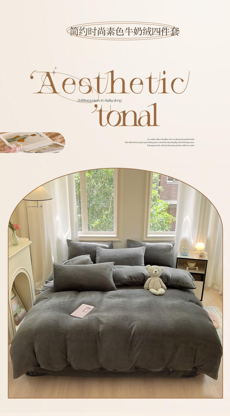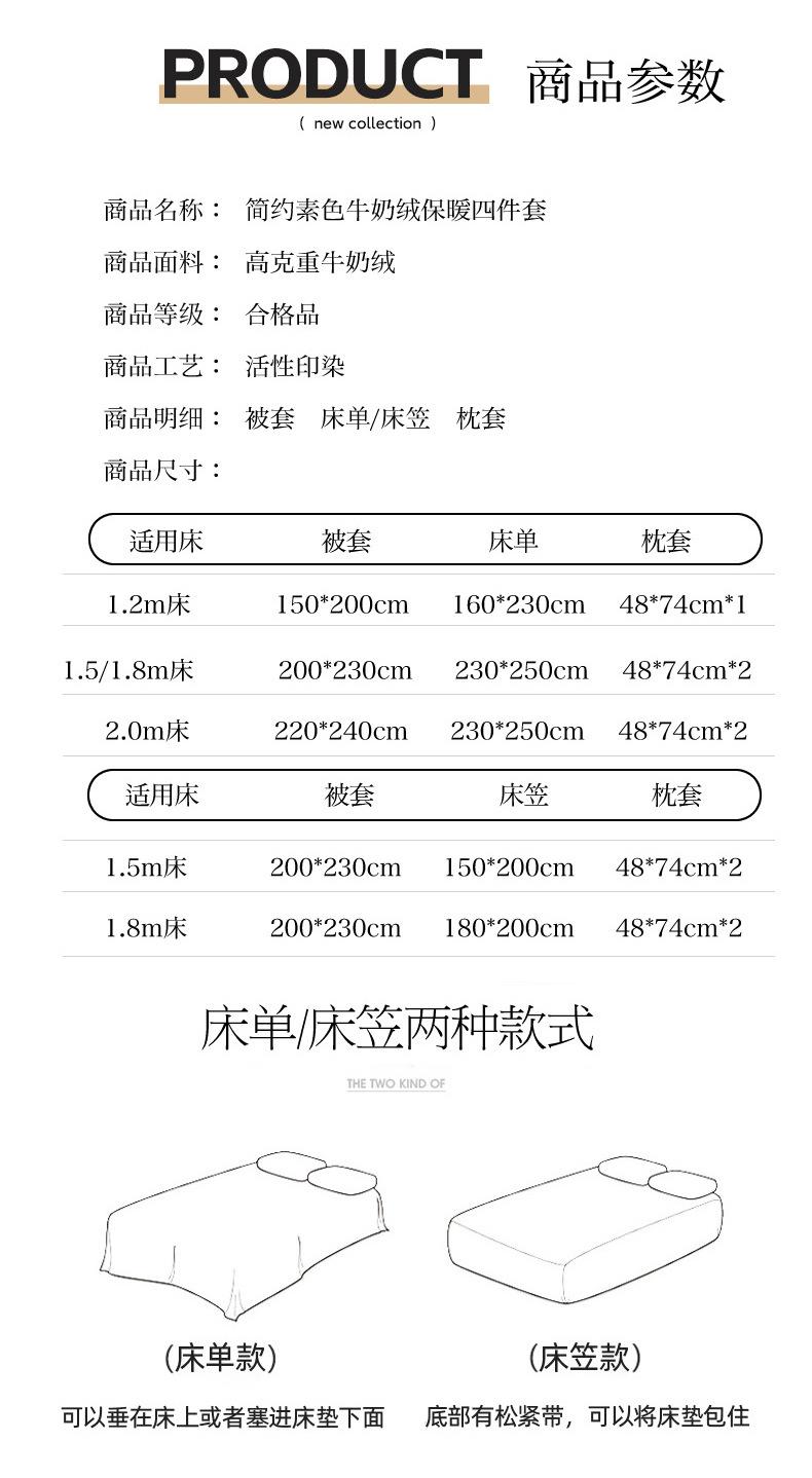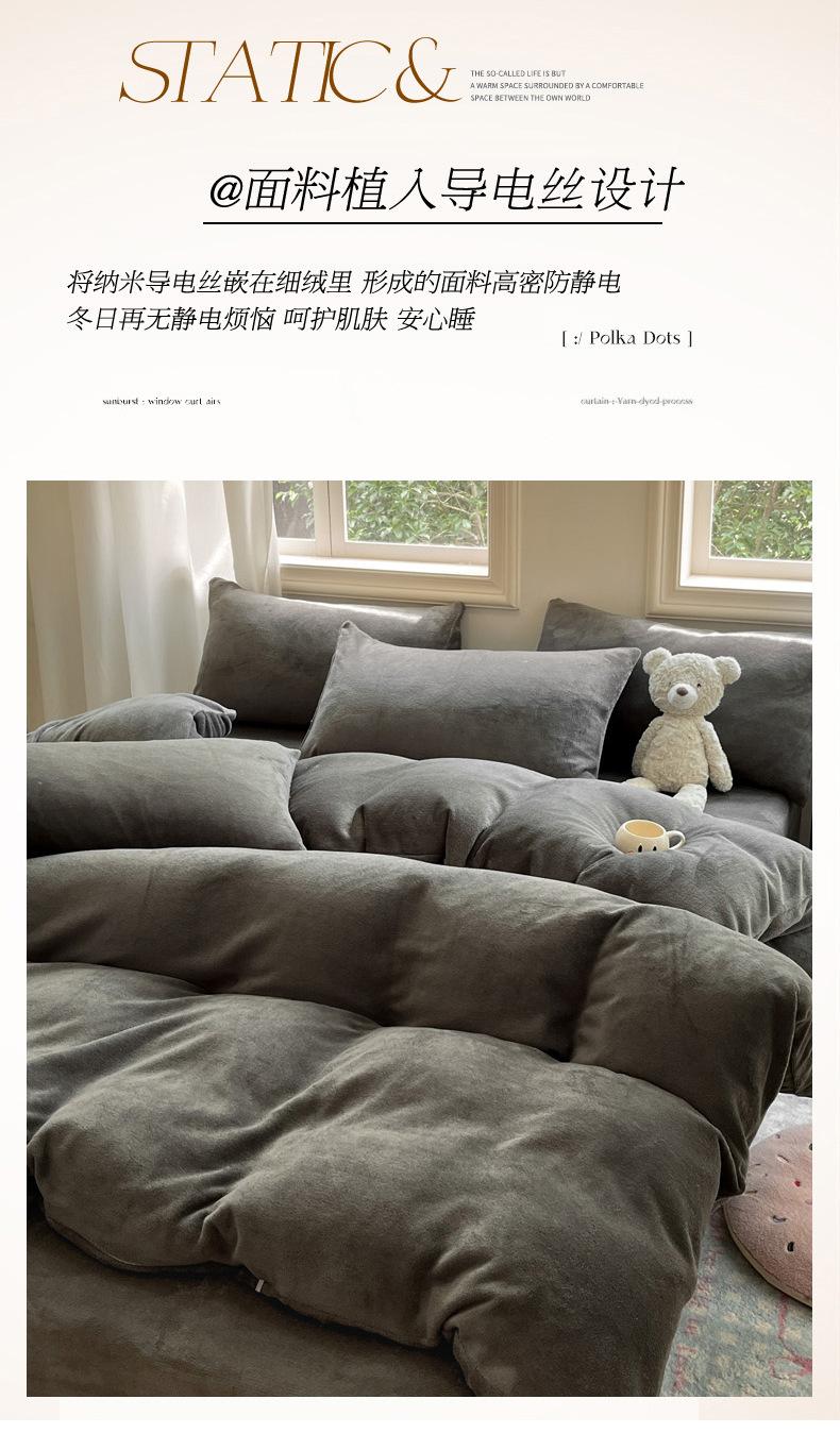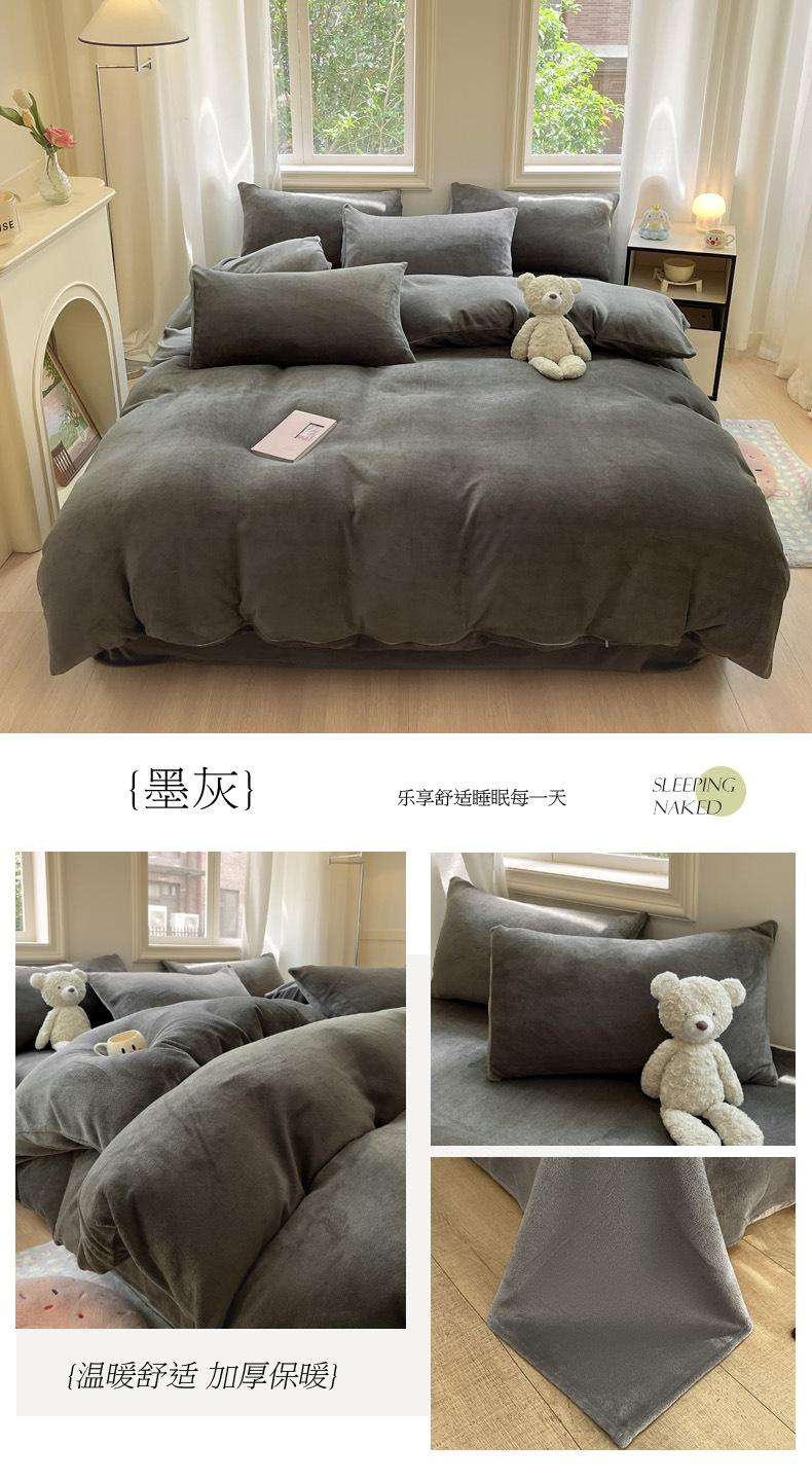 Juego de cuatro piezas de terciopelo de leche de doble cara para invierno, Ropa de cama gruesa de terciopelo coral, Forro polar, Cálido, Franela, Funda nórdica, Sábana