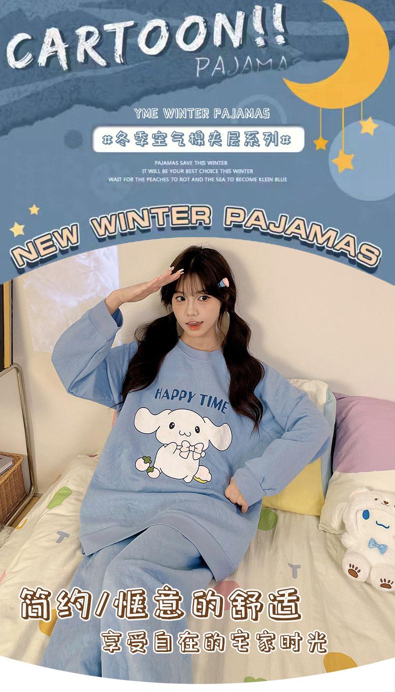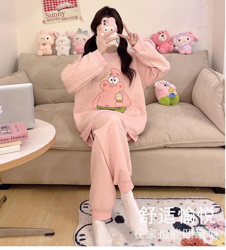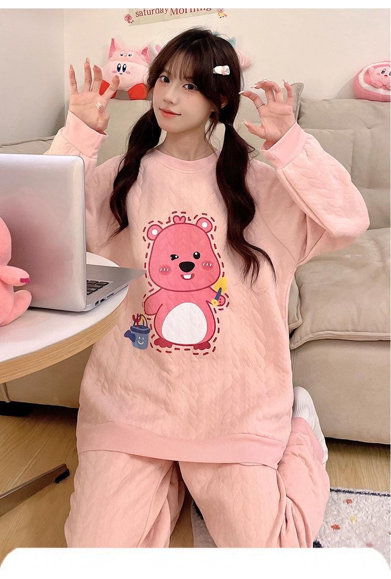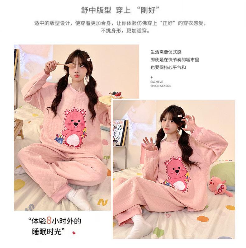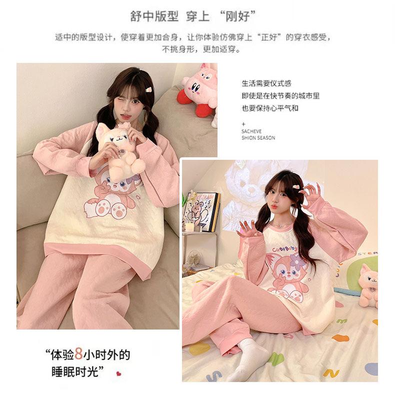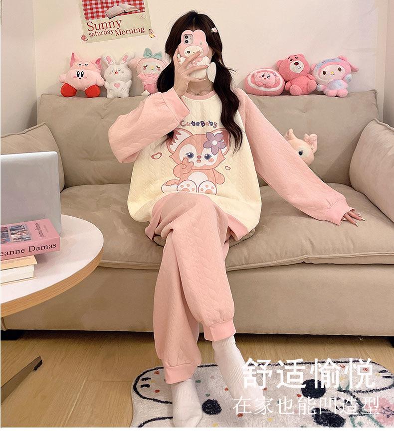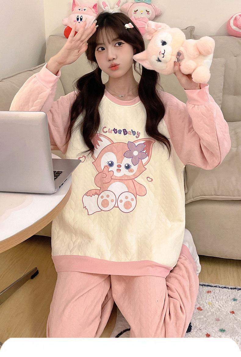 Pijama de niña de comercio exterior otoño e invierno nuevo entrecapa de algodón aire manga larga lindo caricatura traje de ropa para el hogar