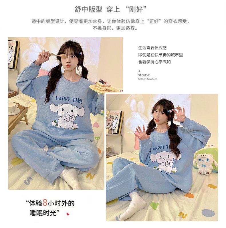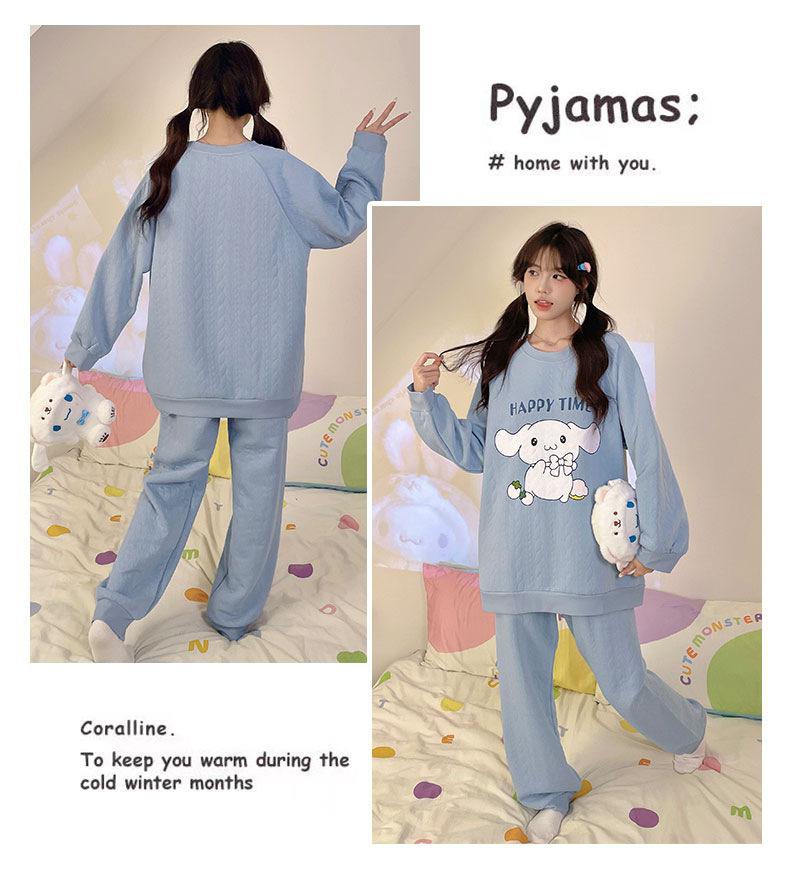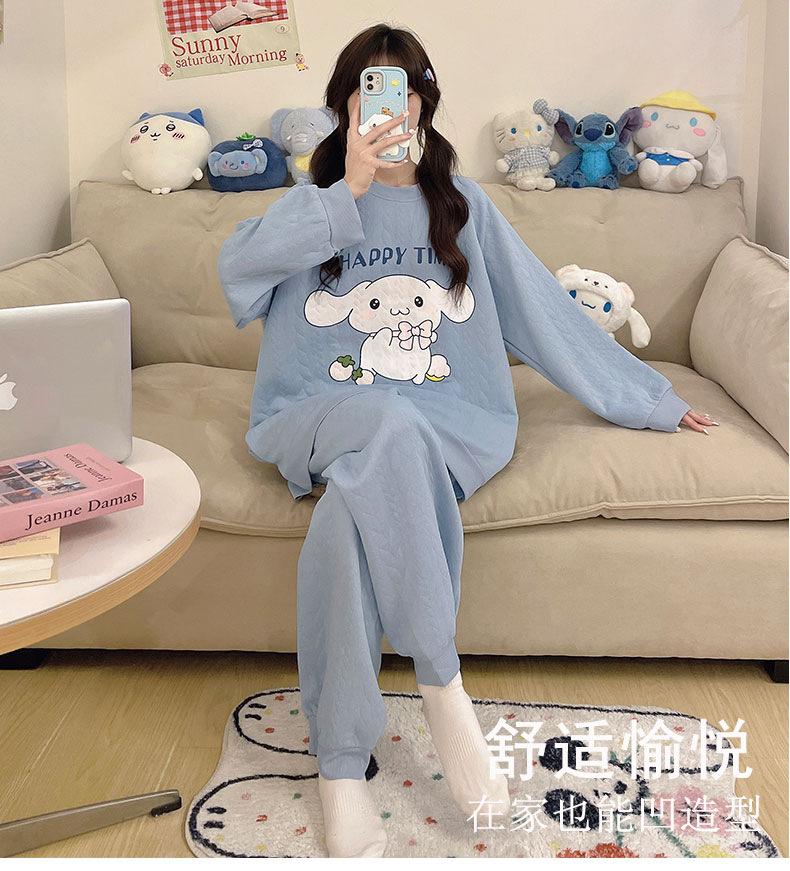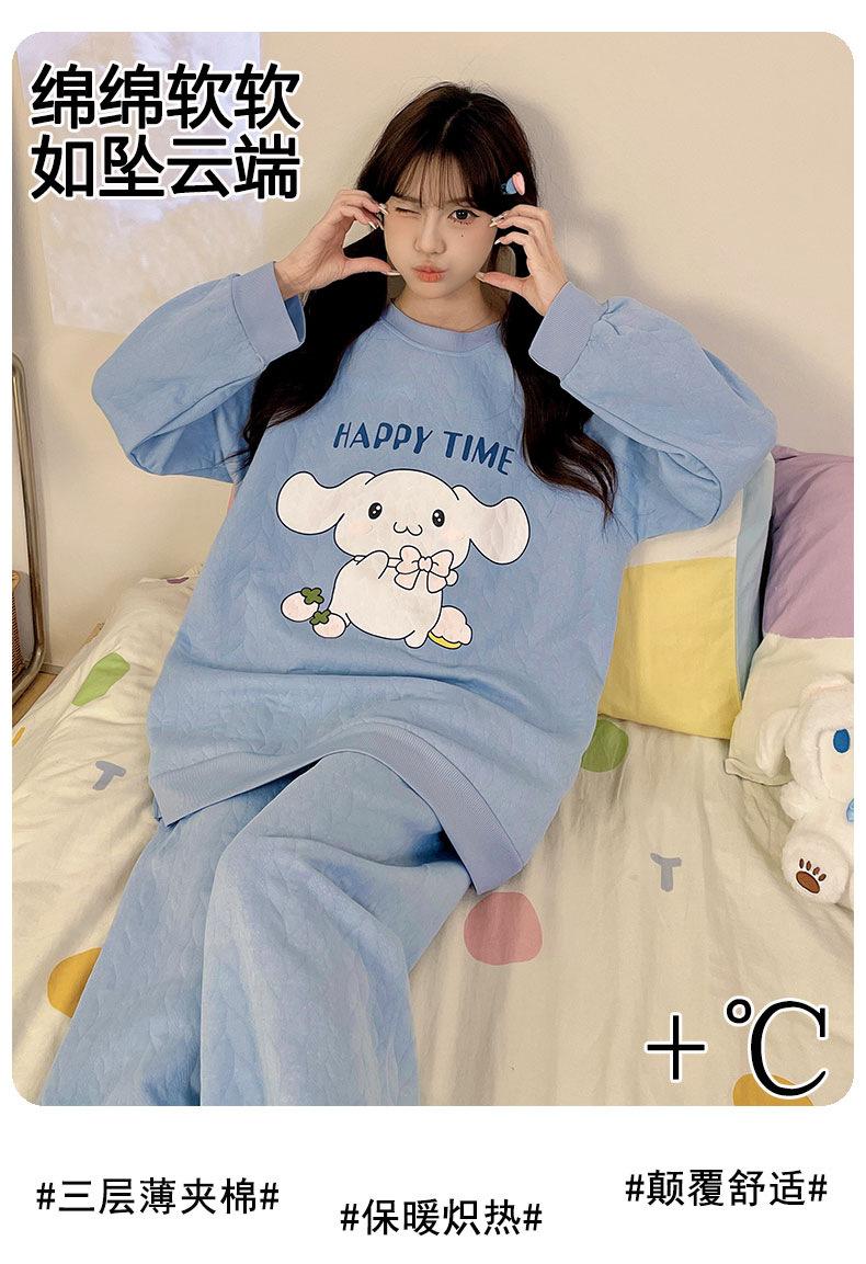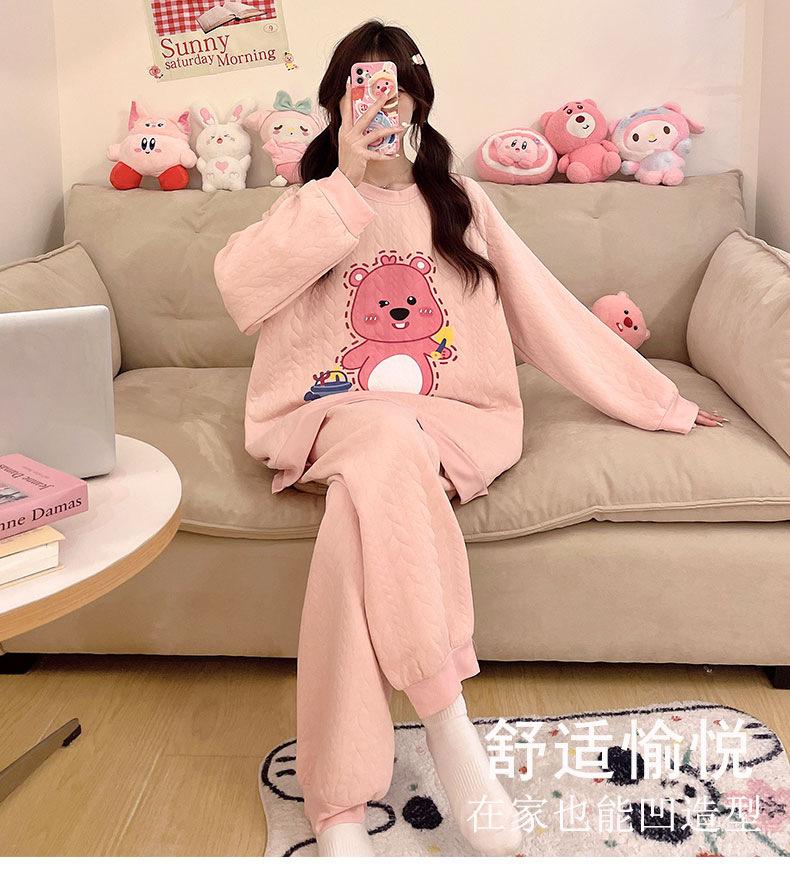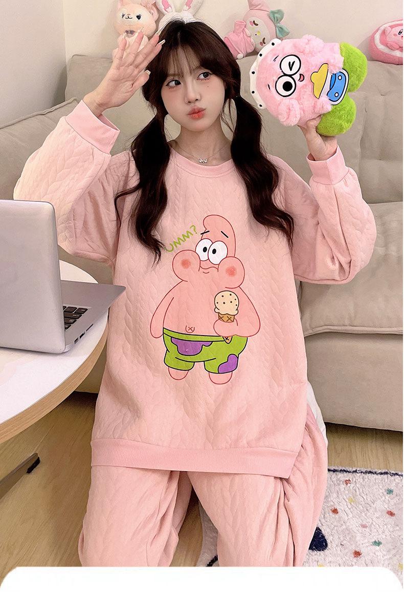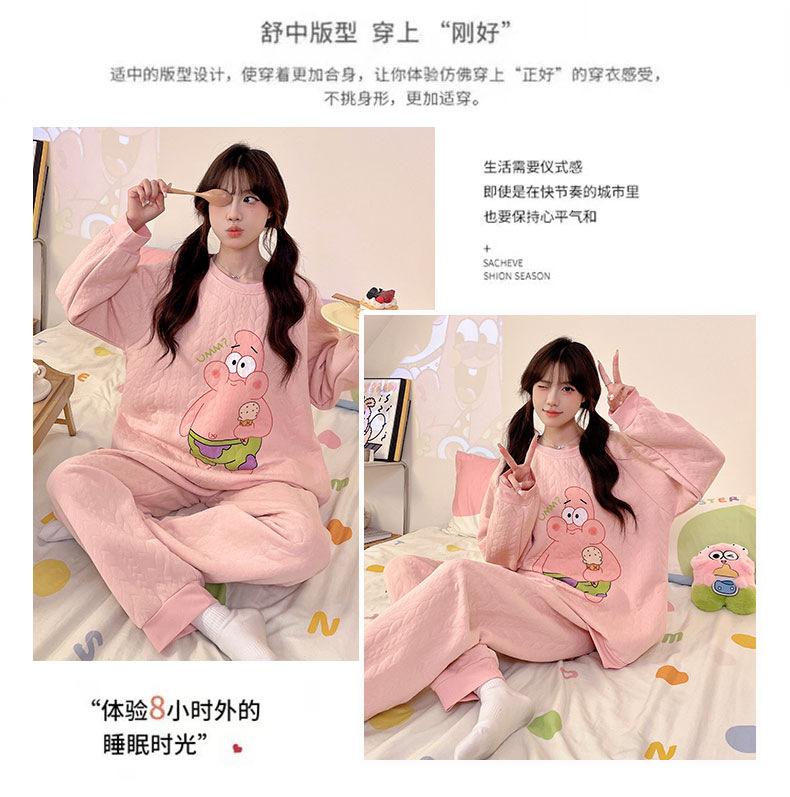 Pijama de niña de comercio exterior otoño e invierno nuevo entrecapa de algodón aire manga larga lindo caricatura traje de ropa para el hogar