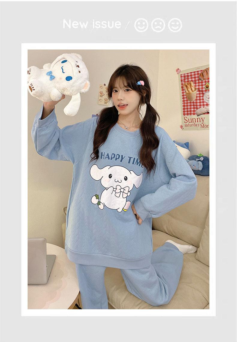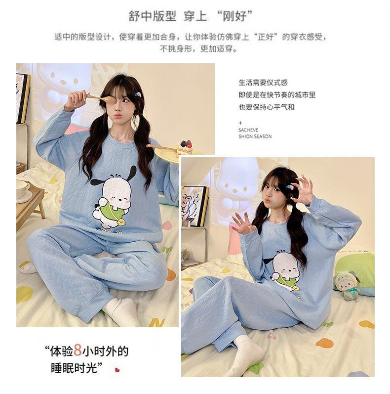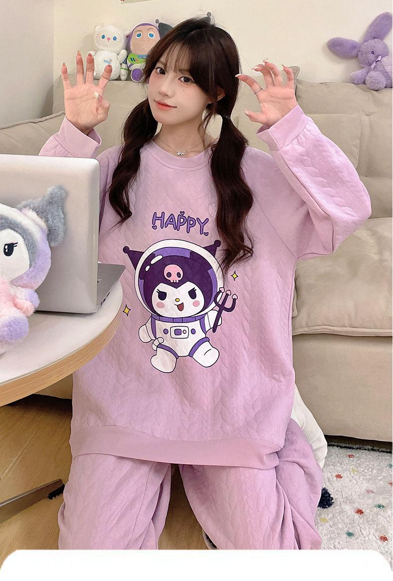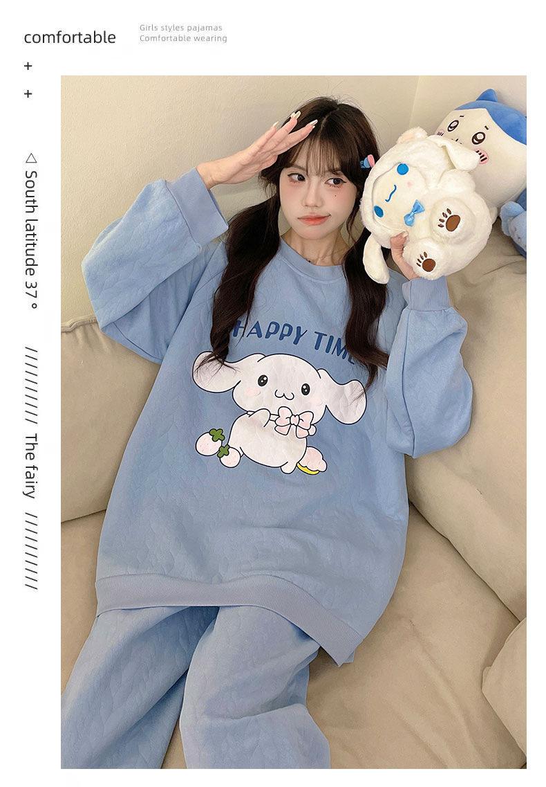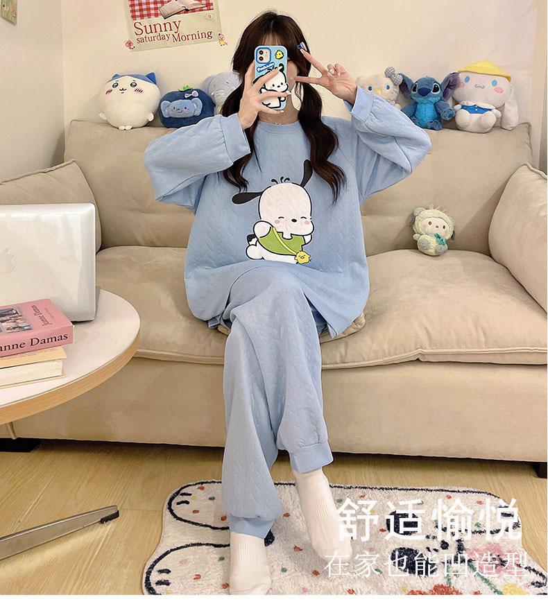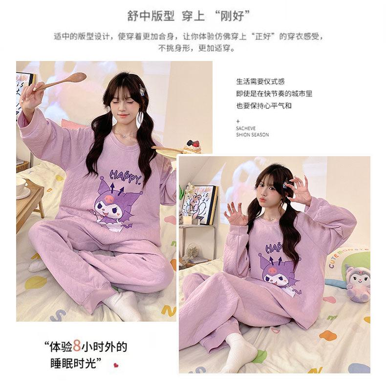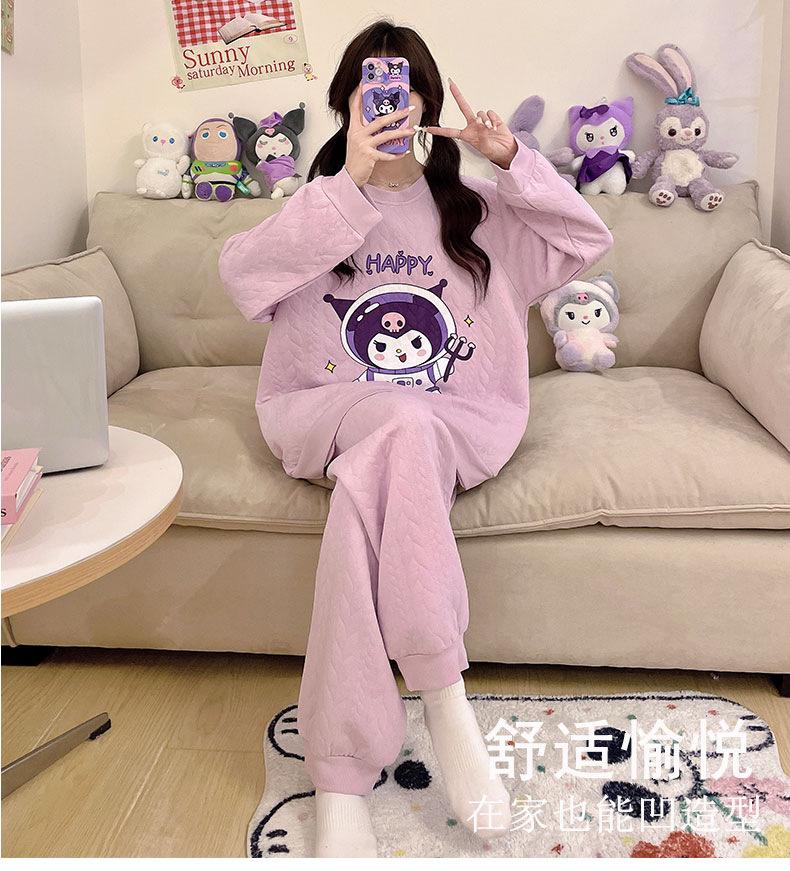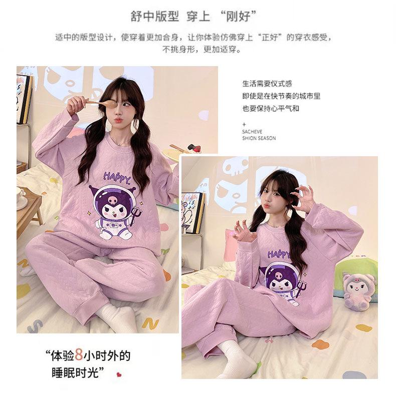 Pijama de niña de comercio exterior otoño e invierno nuevo entrecapa de algodón aire manga larga lindo caricatura traje de ropa para el hogar