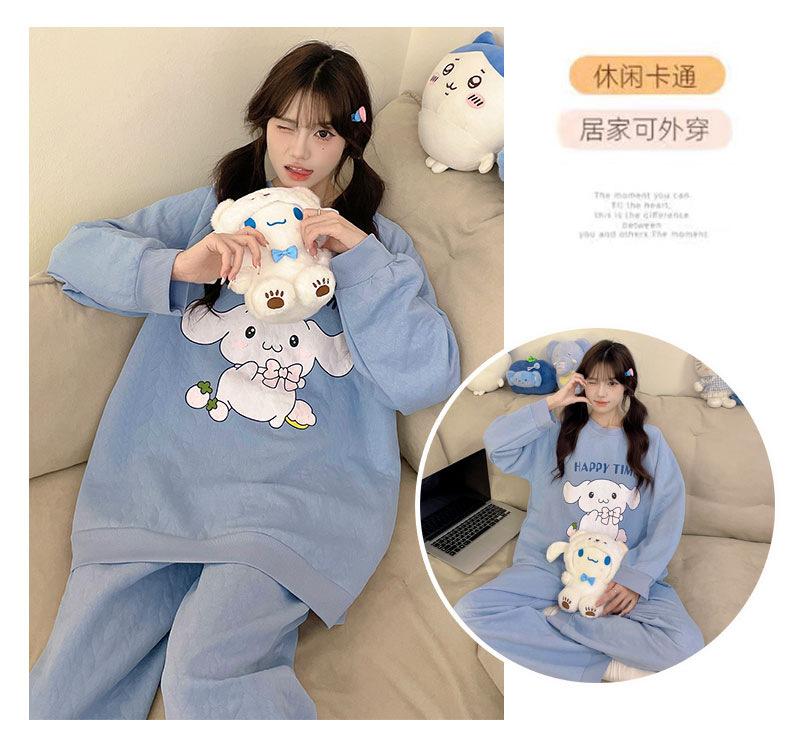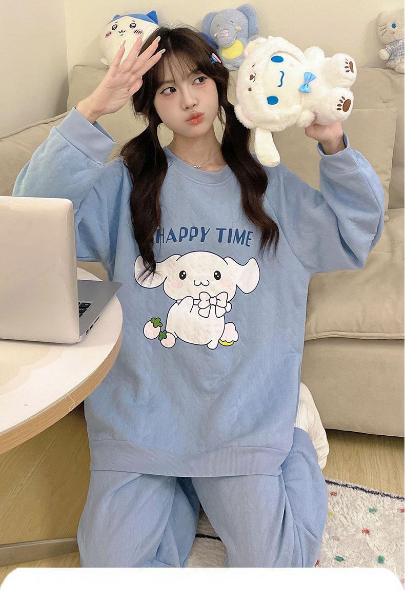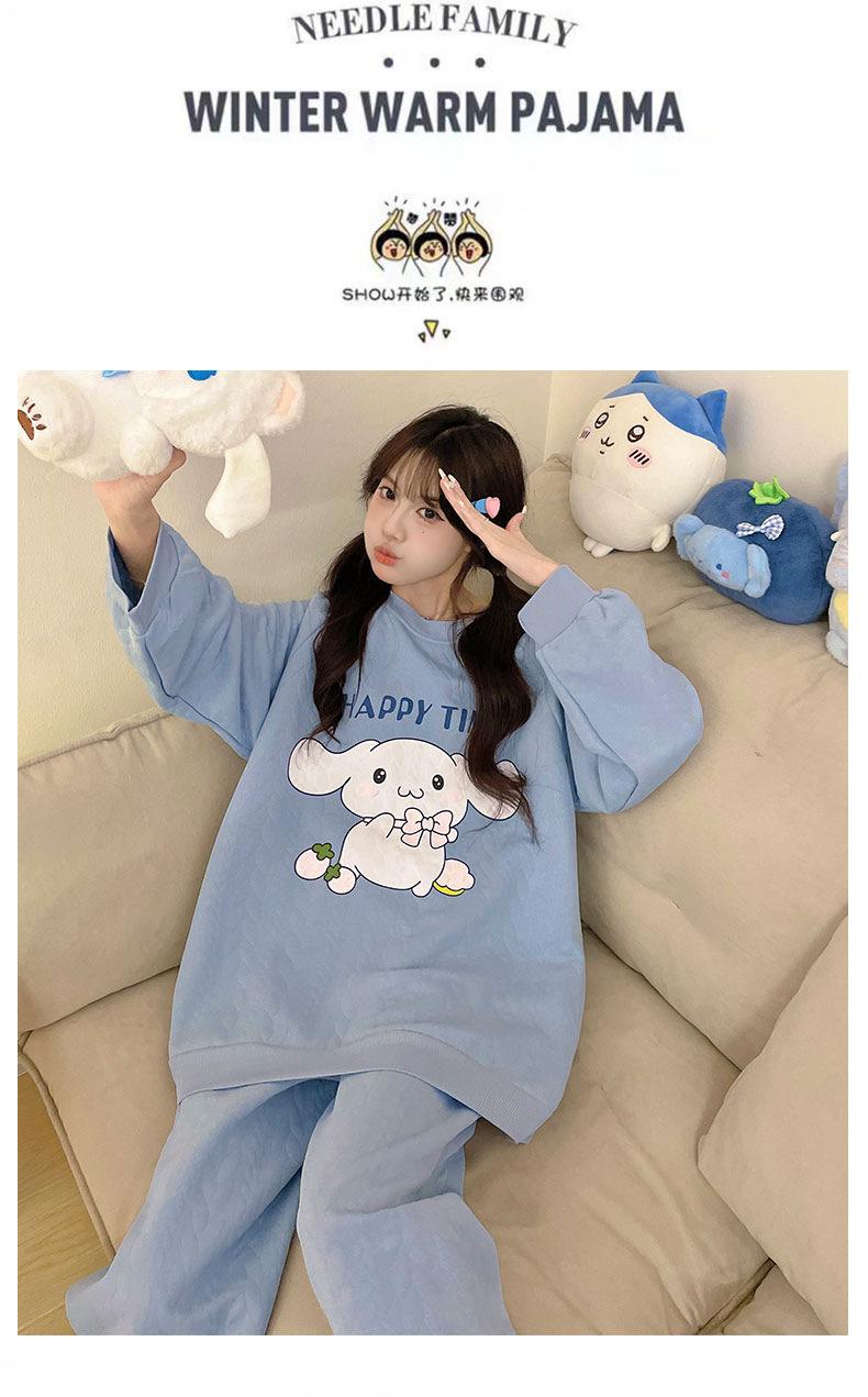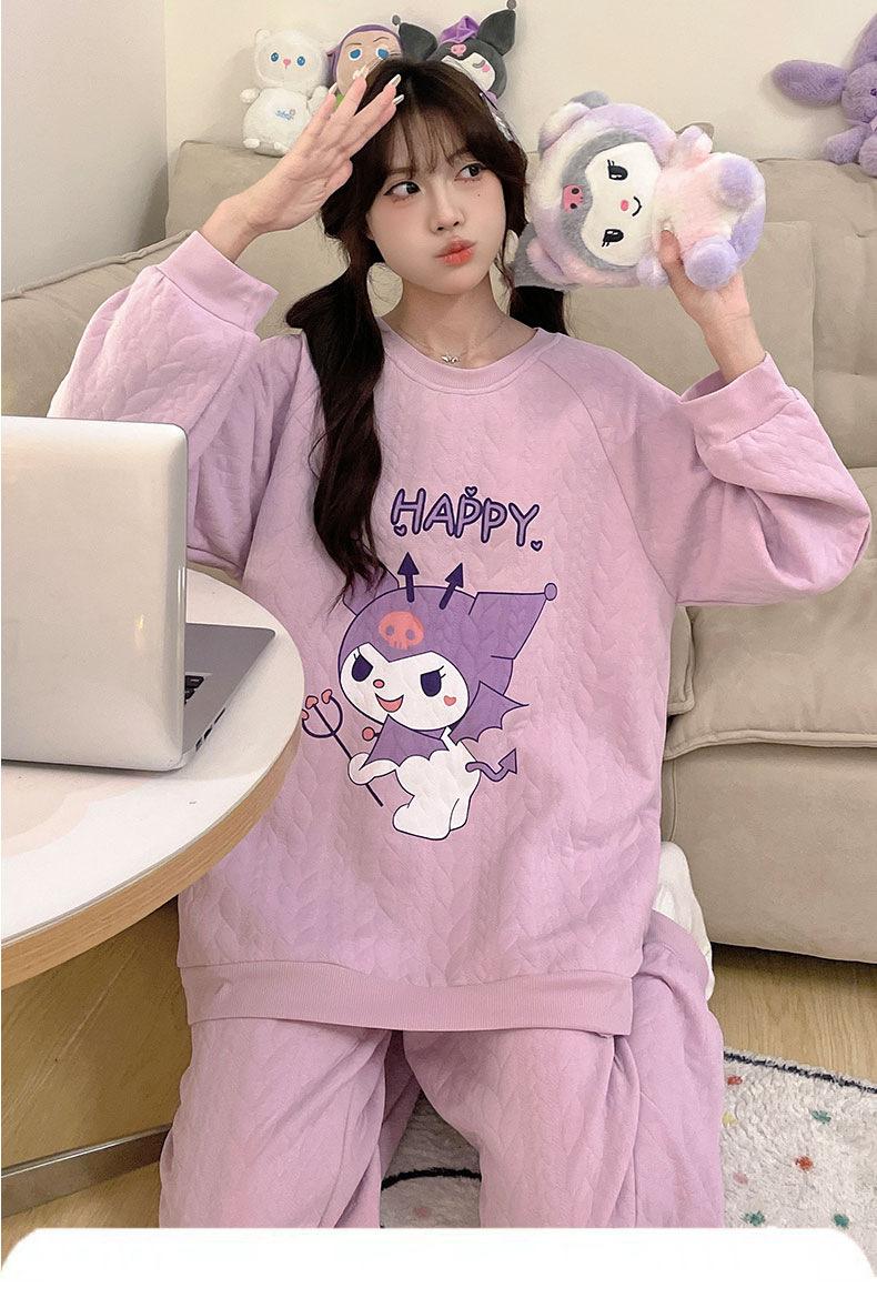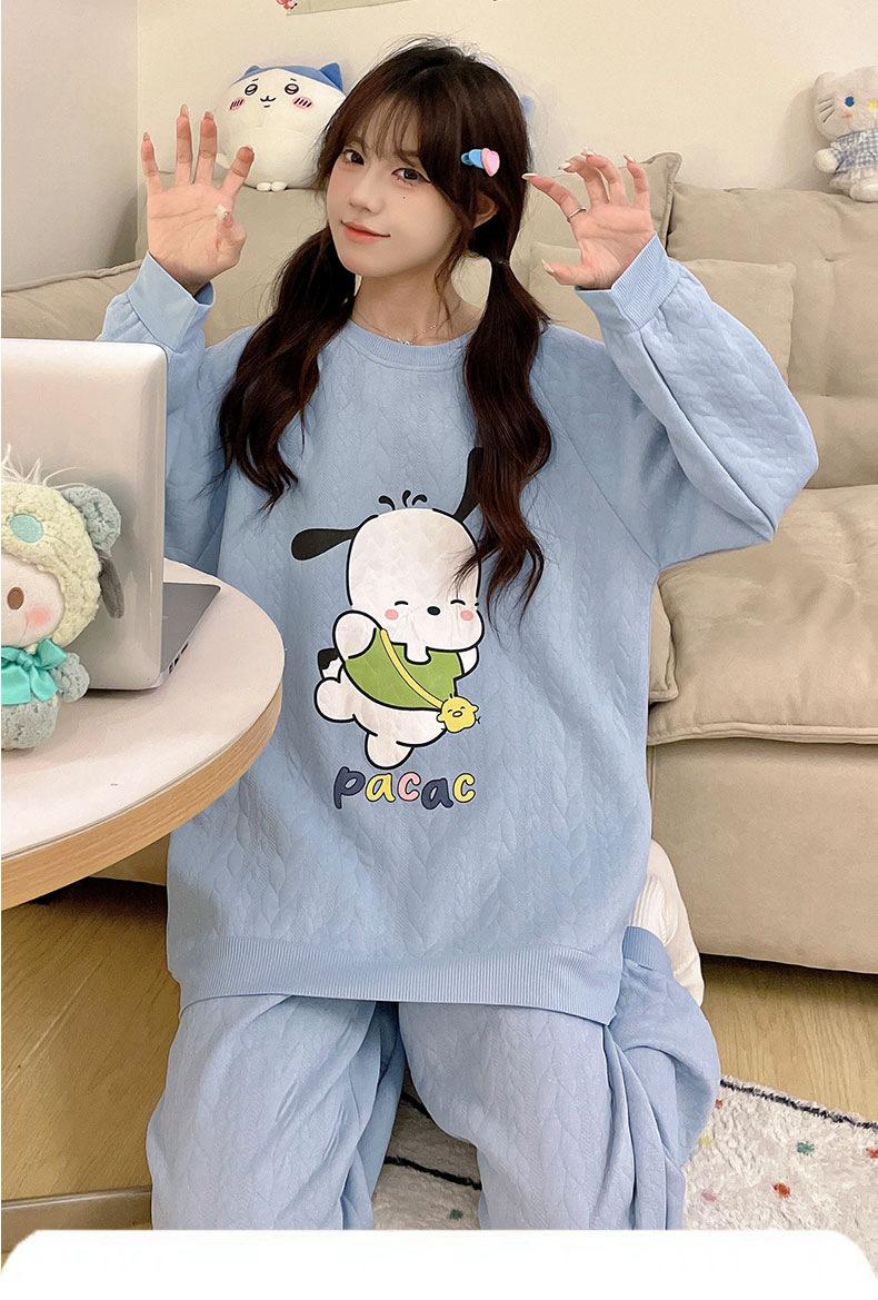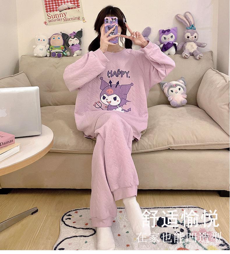 Pijama de niña de comercio exterior otoño e invierno nuevo entrecapa de algodón aire manga larga lindo caricatura traje de ropa para el hogar