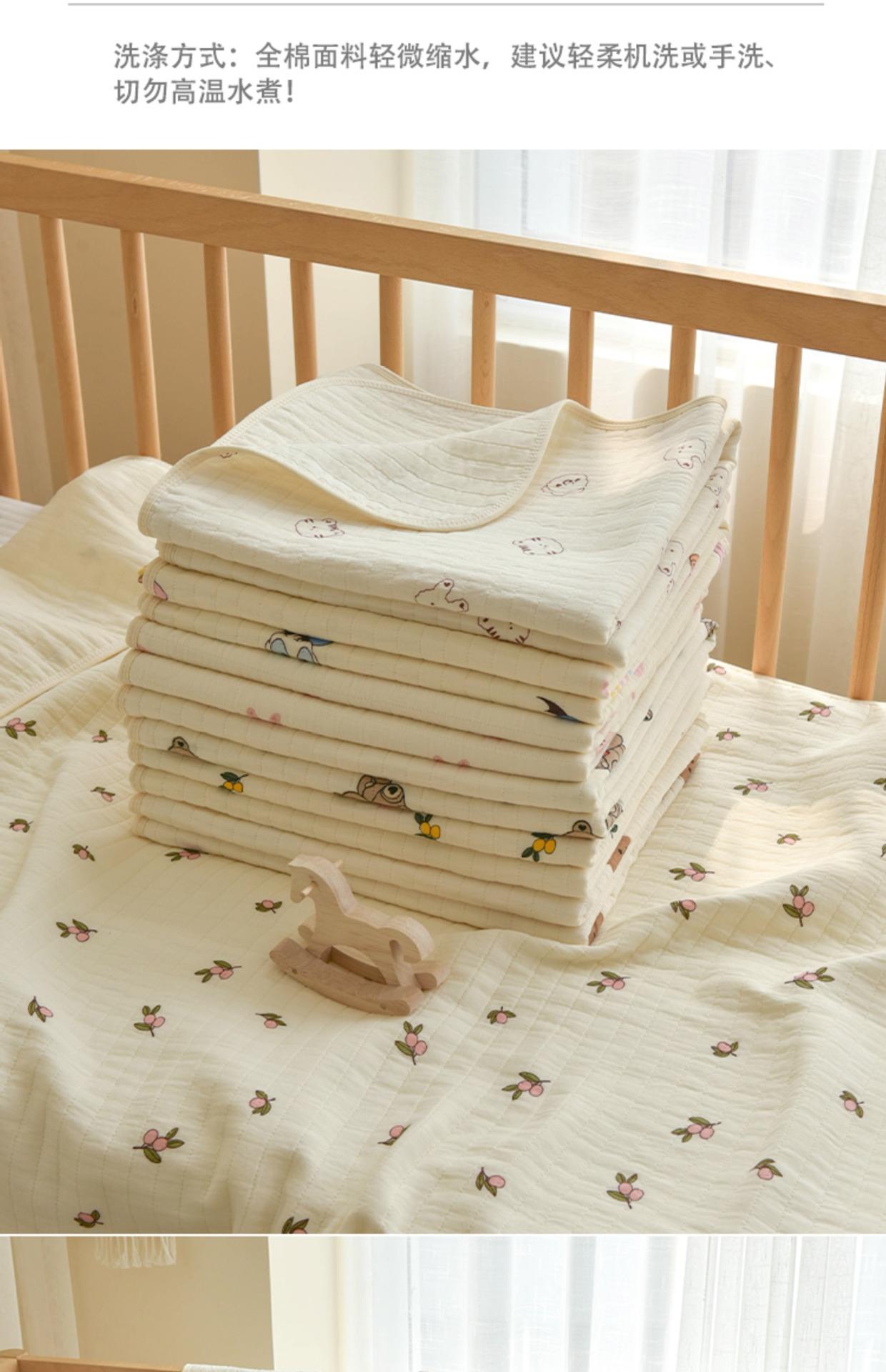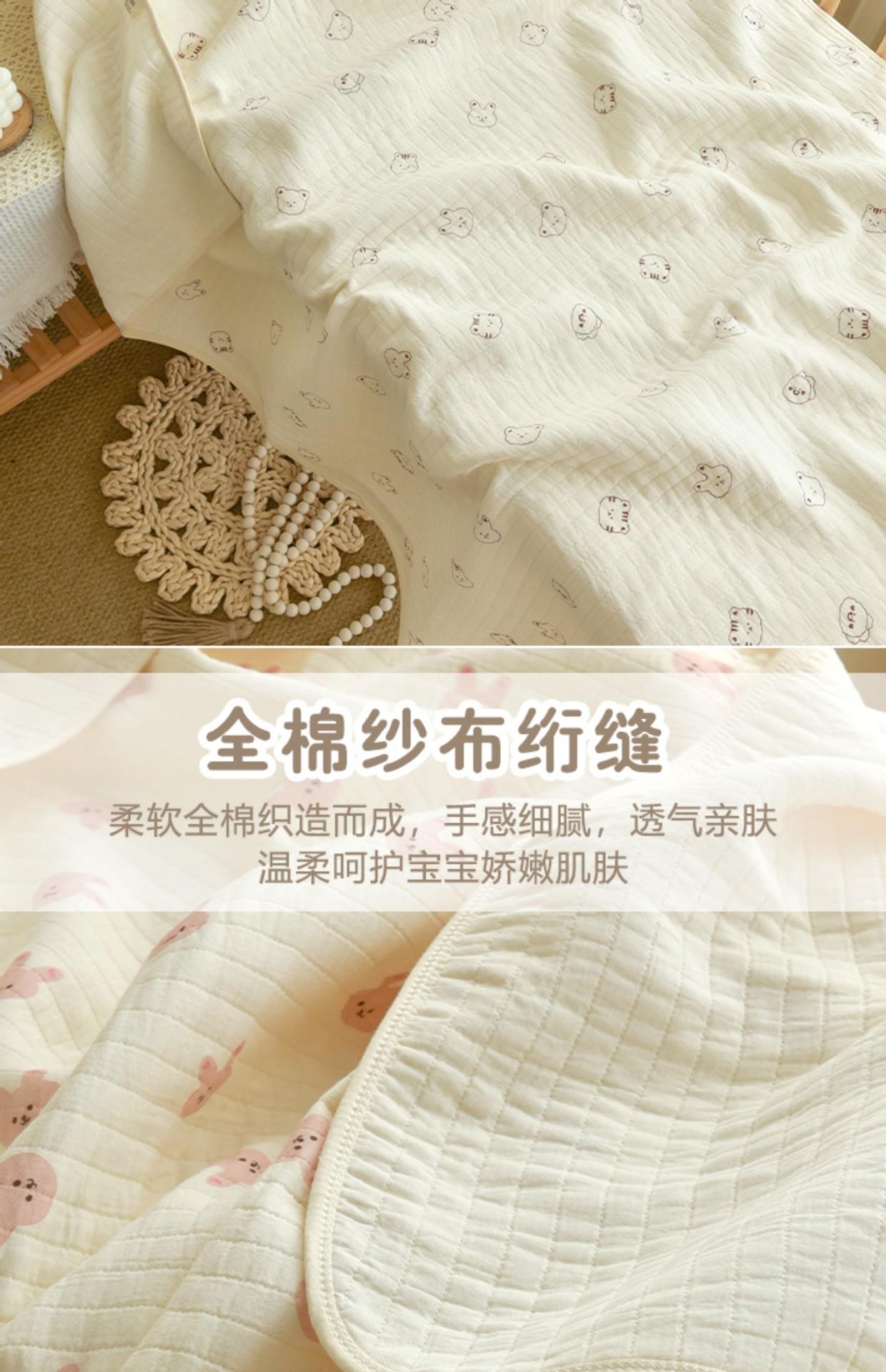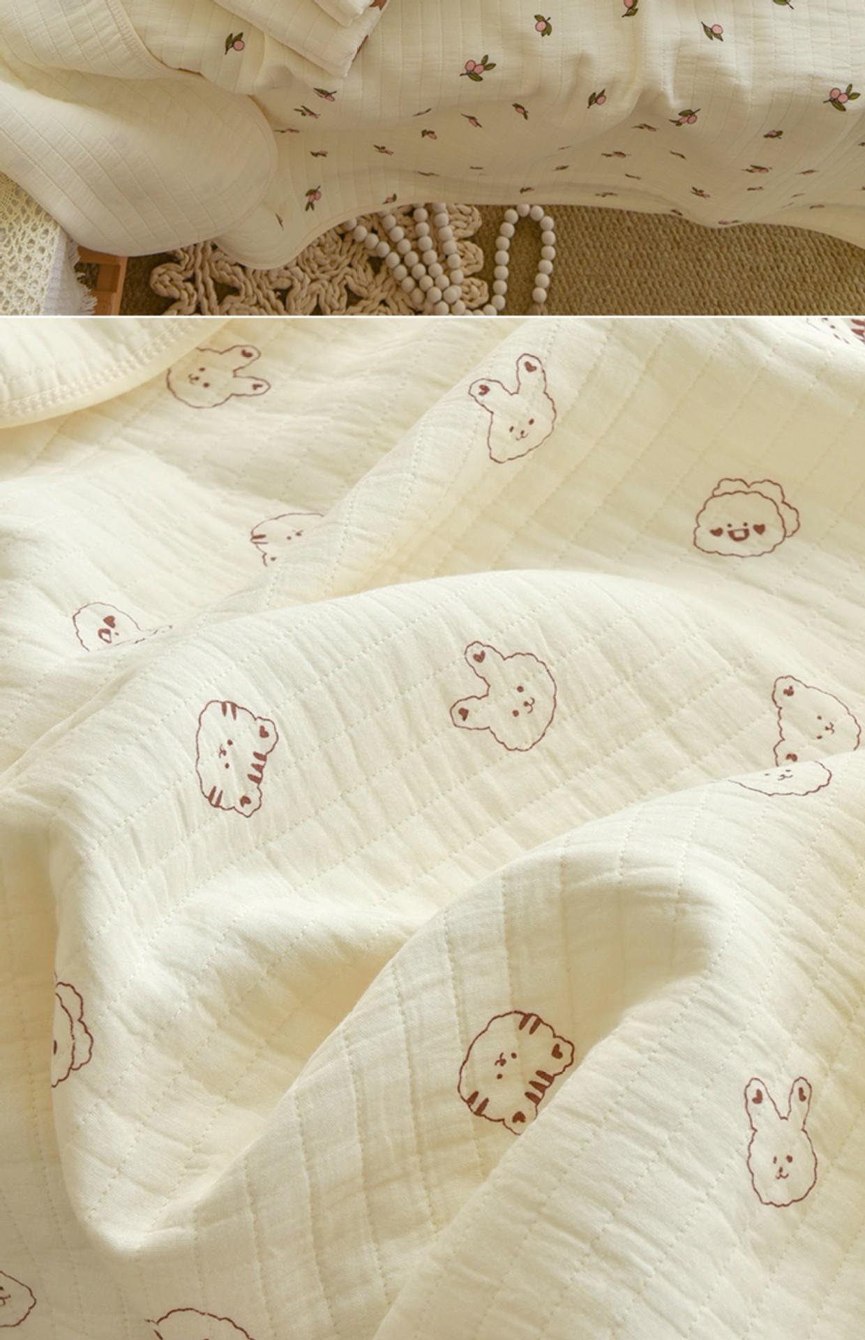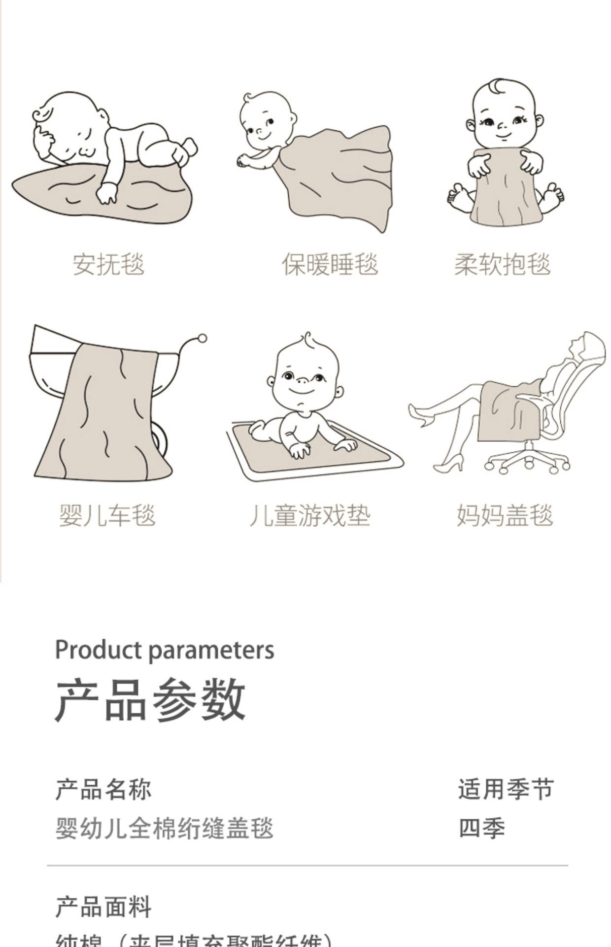 Cobija acolchada de algodón para bebé Seleccione algodón natural como materia prima, suave al tacto. Tecnología de crepé de hilo de algodón multicapa, circulación y ventilación sin congestión. Ribete exquisito, lavable a máquina, no se deshilacha fácilmente, duradero Material de algodón, transpirable y que absorbe el sudor, estampado y teñido activo, calidad Clase A