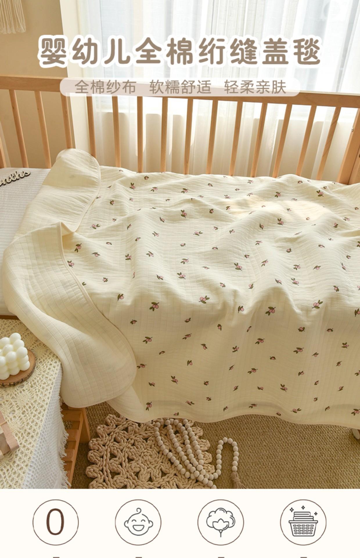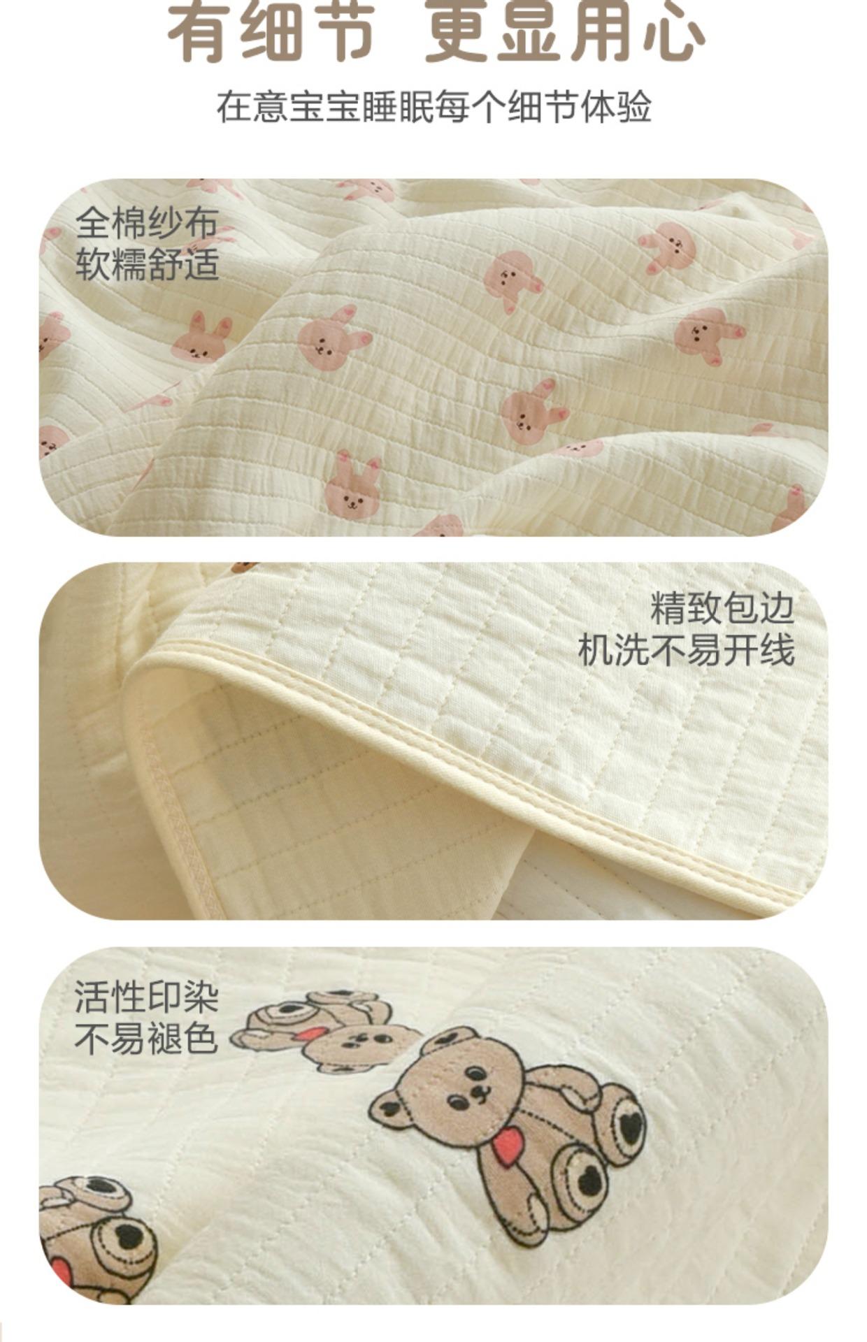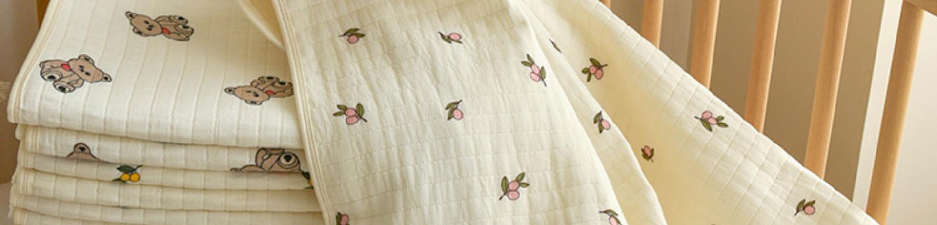 Cobija acolchada de algodón para bebé Seleccione algodón natural como materia prima, suave al tacto. Tecnología de crepé de hilo de algodón multicapa, circulación y ventilación sin congestión. Ribete exquisito, lavable a máquina, no se deshilacha fácilmente, duradero Material de algodón, transpirable y que absorbe el sudor, estampado y teñido activo, calidad Clase A