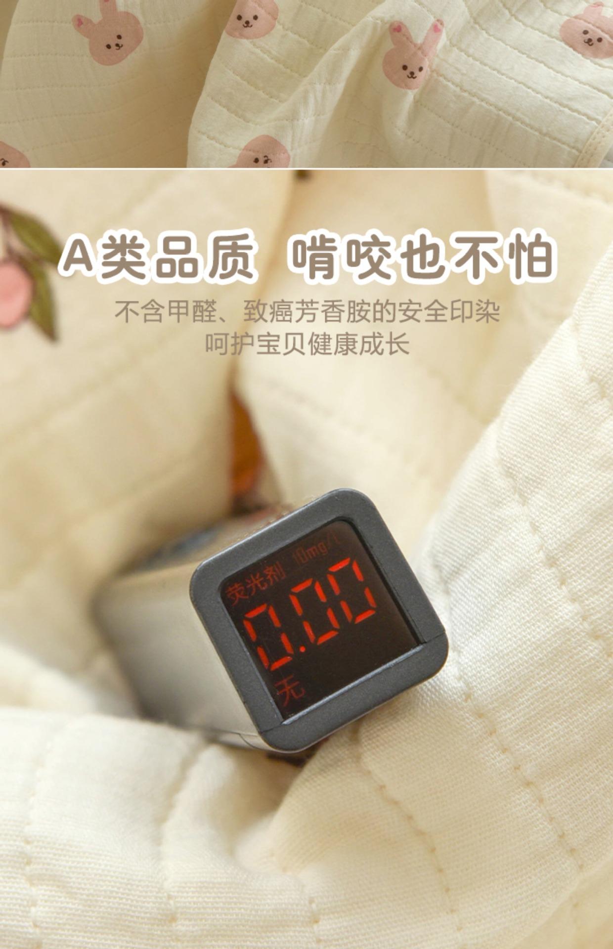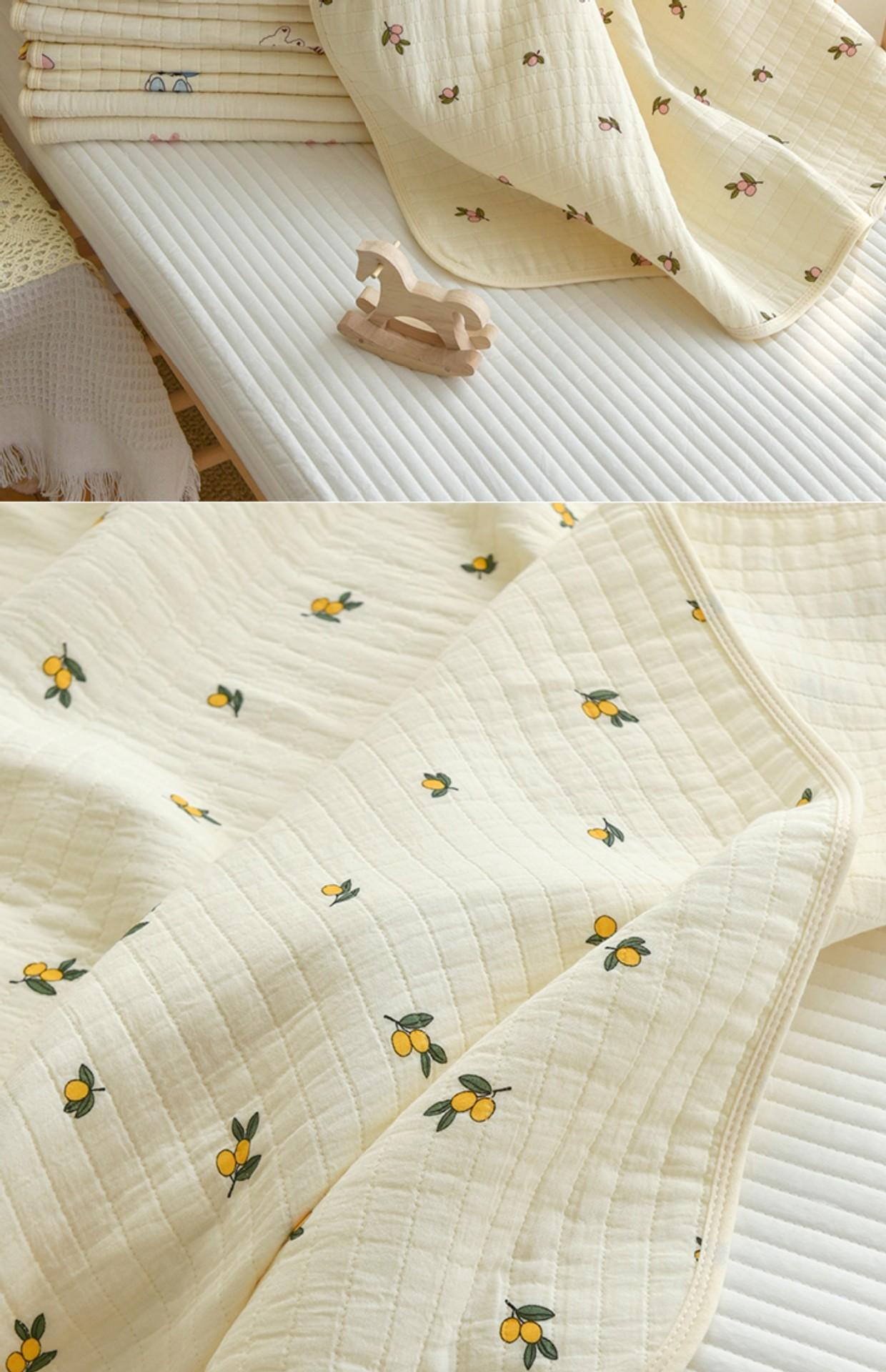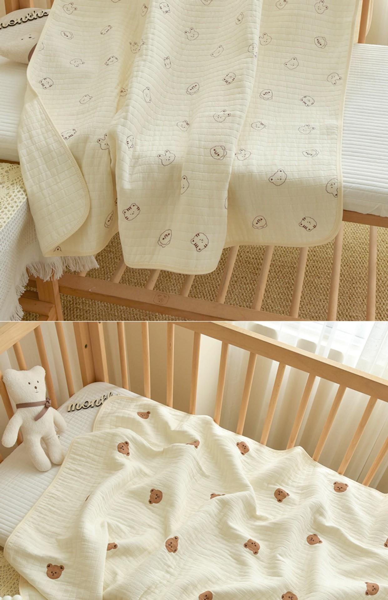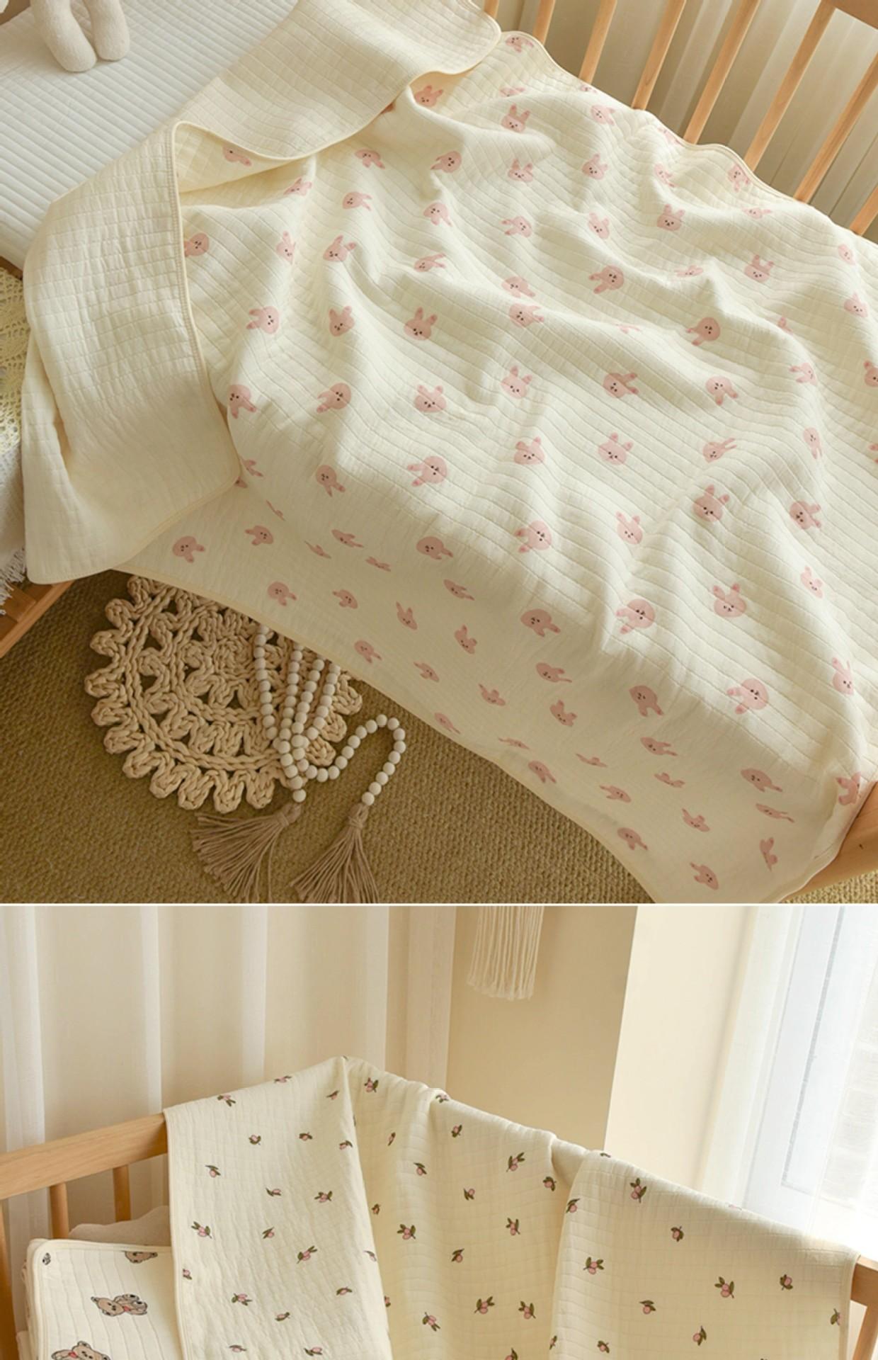 Cobija acolchada de algodón para bebé Seleccione algodón natural como materia prima, suave al tacto. Tecnología de crepé de hilo de algodón multicapa, circulación y ventilación sin congestión. Ribete exquisito, lavable a máquina, no se deshilacha fácilmente, duradero Material de algodón, transpirable y que absorbe el sudor, estampado y teñido activo, calidad Clase A