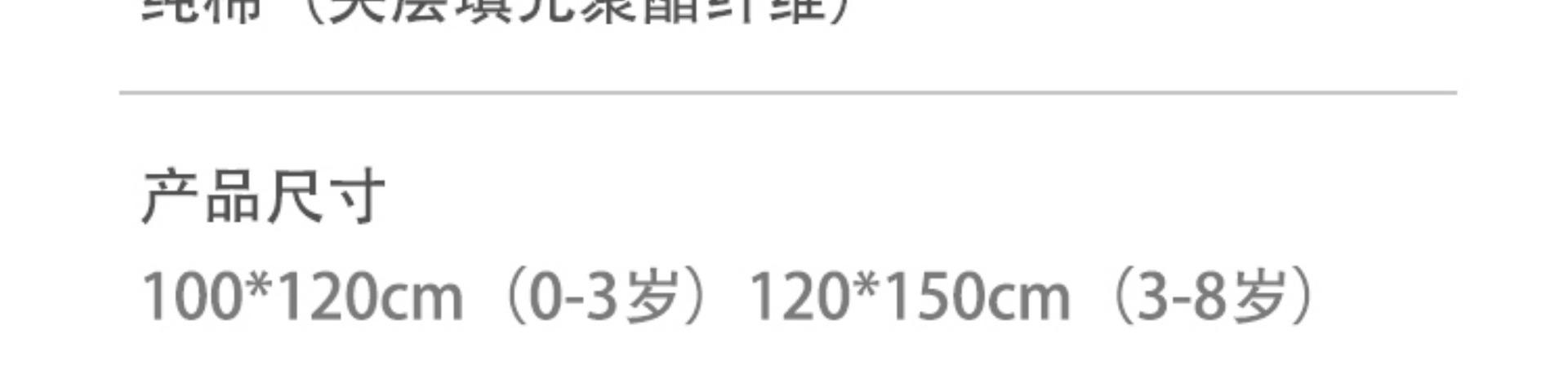 Material: 100% algodón Tamaño: 100 x 120 cm, adecuado para niños de 0 a 3 años. 120 x 150 cm, adecuado para niños de 3 a 8 años.