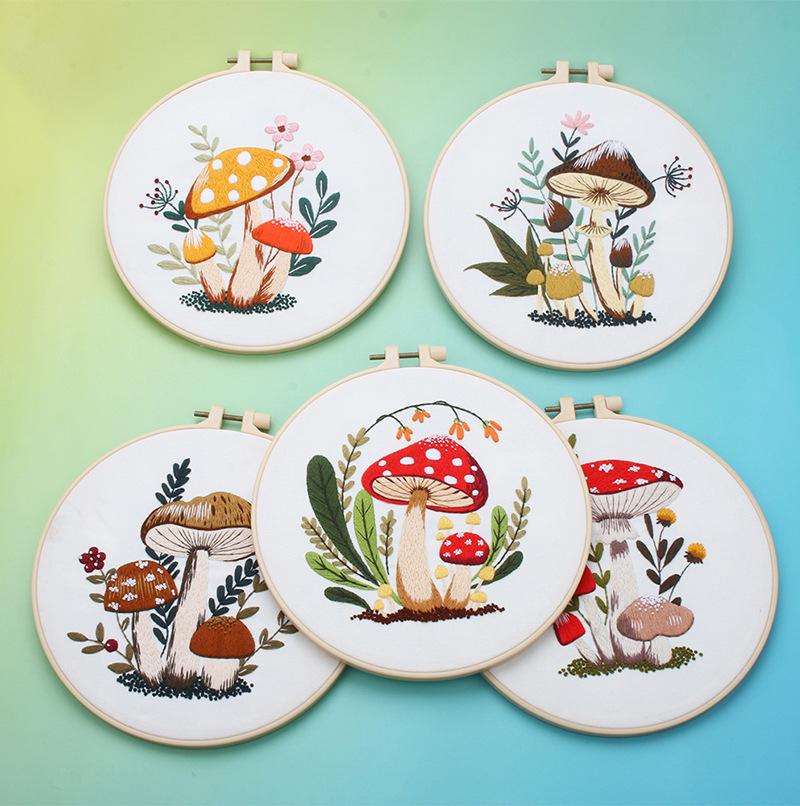 Kit de bolsa de bordado inglés transfronterizo para bricolaje, bolsa de bordado hecha a mano con forma de hongo brillante.