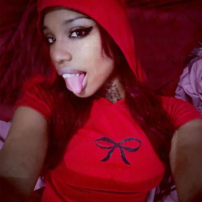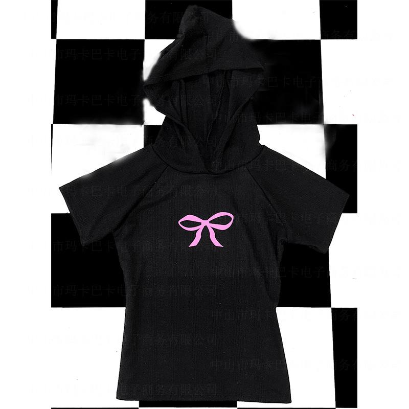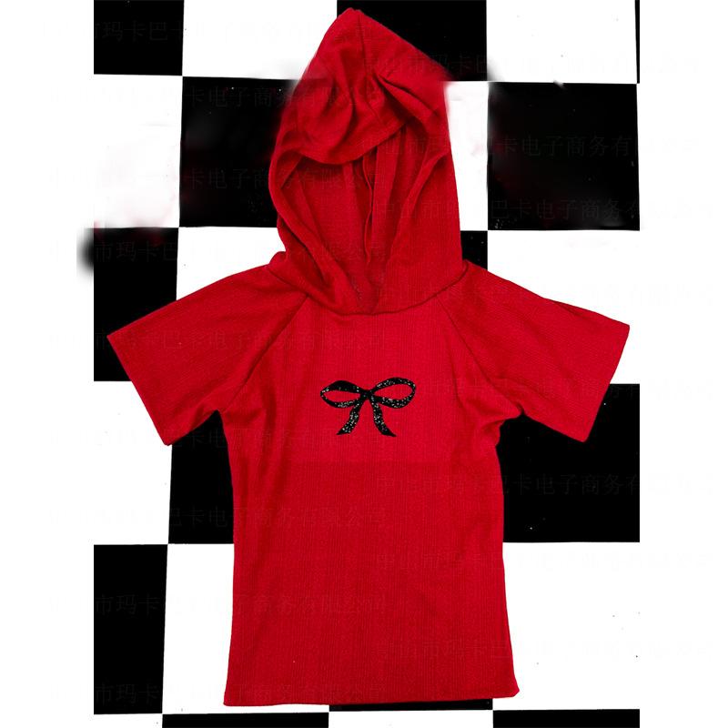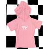 2023 nuevo jersey de manga corta con capucha y estampado de lazo de verano transfronterizo de estilo europeo y americano para mujer