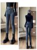 Vaqueros elásticos de cintura alta para estudiantes femeninas, versión coreana, primavera y otoño 2023, ajustados, adelgazantes, versátiles, gris ahumado, ajustados, de nueve puntos