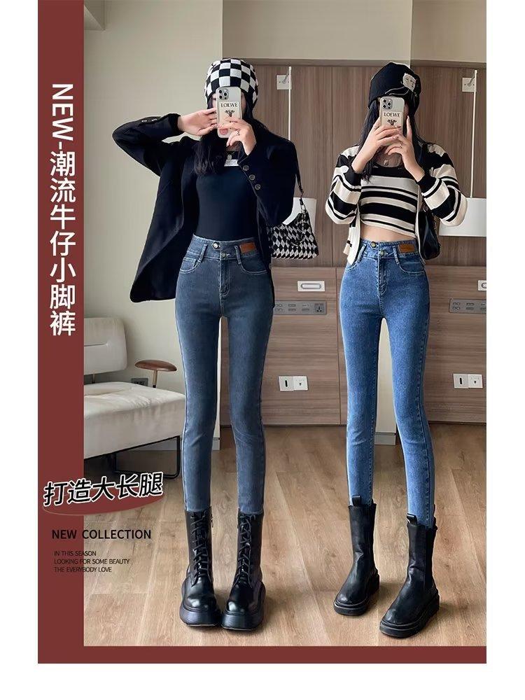 Vaqueros gruesos de terciopelo para mujer, novedad de otoño e invierno de 2024, pantalones largos ajustados de tubo con cintura alta y adelgazamiento.