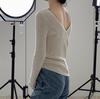 Suéter de Lana de Manga Larga Ajustado Básico de Color Sólido Estilo Coreano de Cuello Redondo Otoño 2022 para Mujer
