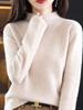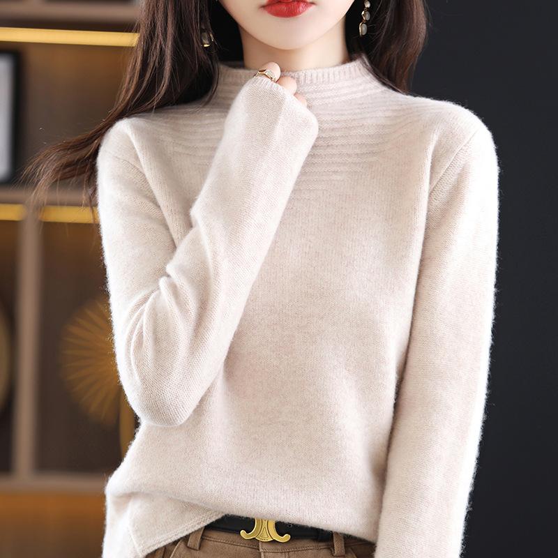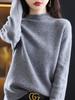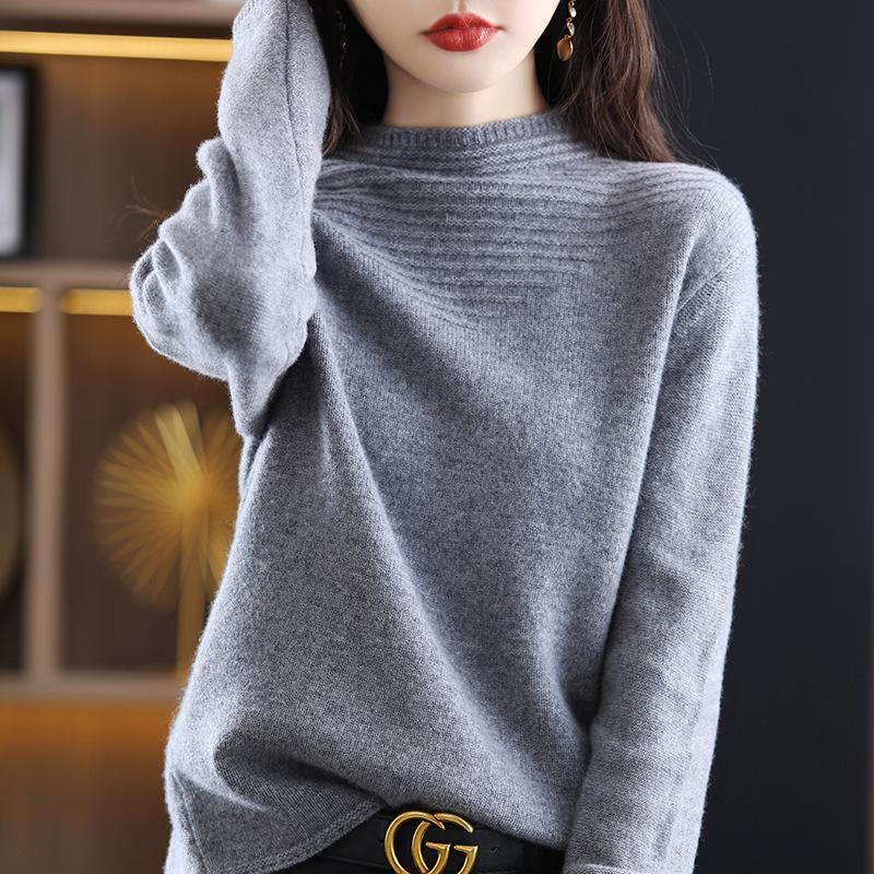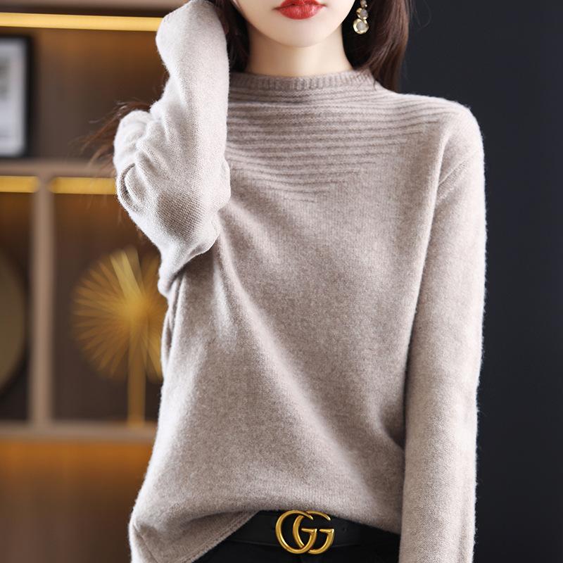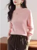 Suéter sencillo de cuello alto para mujer, otoño e invierno de 2023, camisa holgada de punto con parte inferior, estilo perezoso de alta sociedad, elegante y combinable.