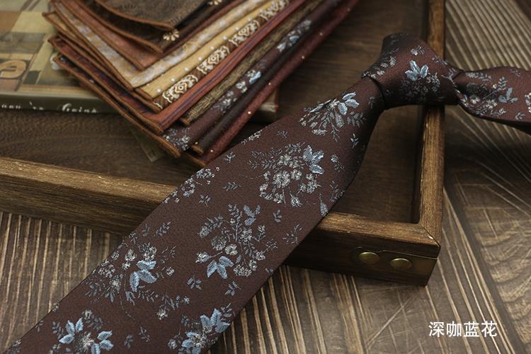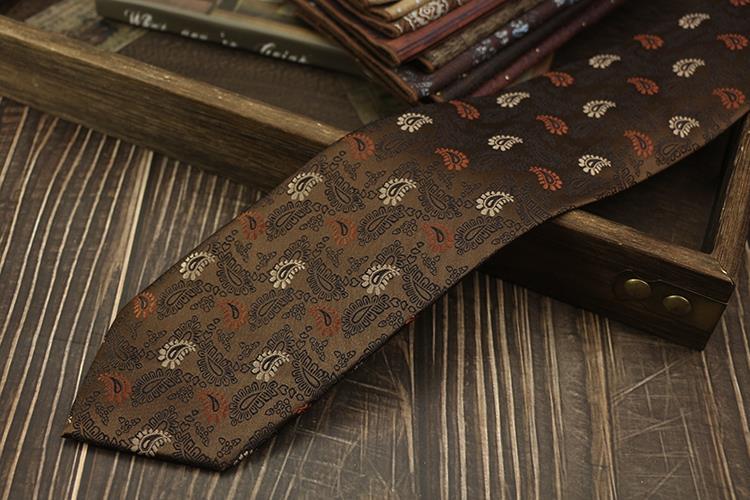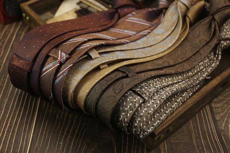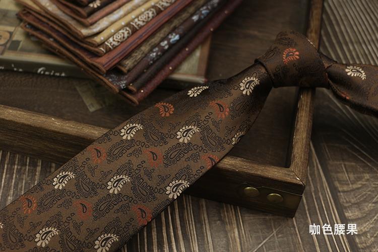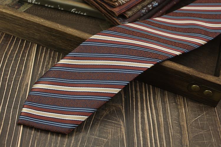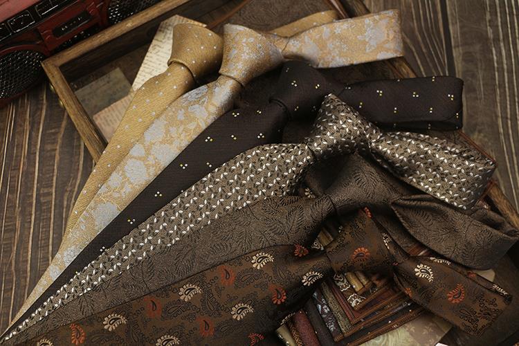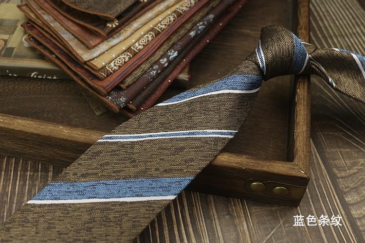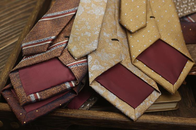 Corbata Nueva para Hombre Retro Color Curry Marrón Rojo Británica 8cm Vestido Profesional Negocios Manos Azul Raya Patrón Oro Oscuro