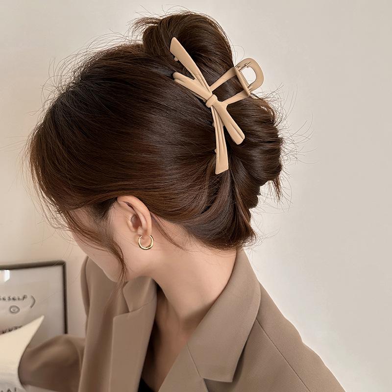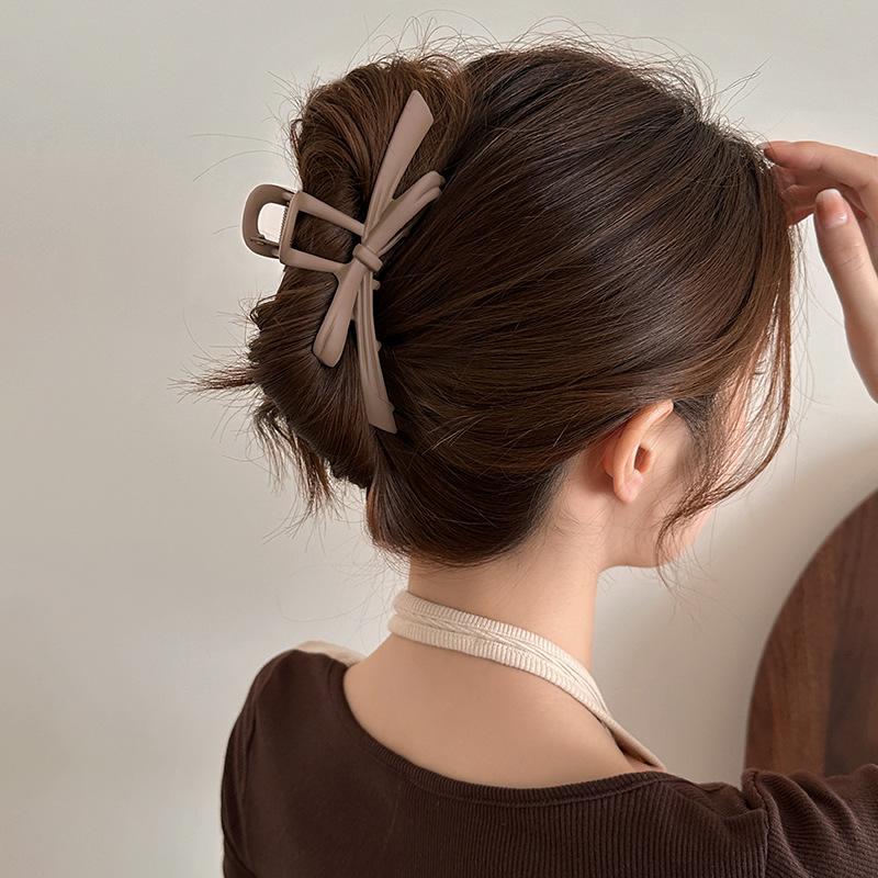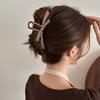 2024 nuevo otoño e invierno horquilla con lazo para mujer flequillos marrón té con leche pinza de tiburón nicho de alta gama pinza de agarre