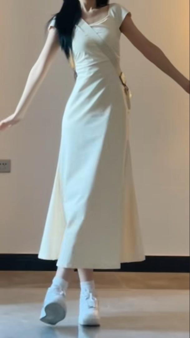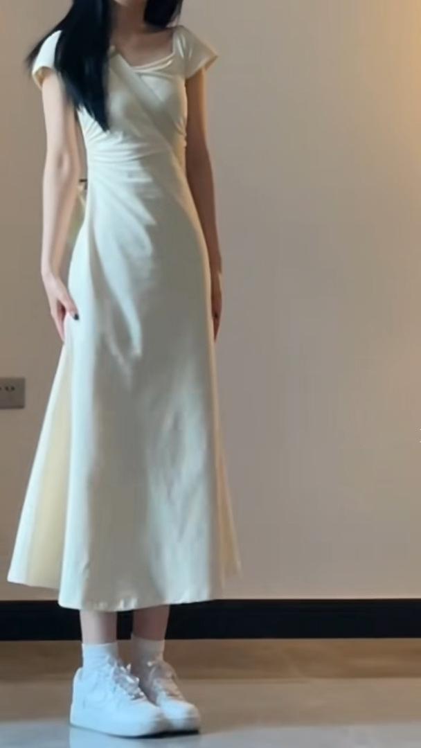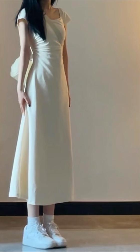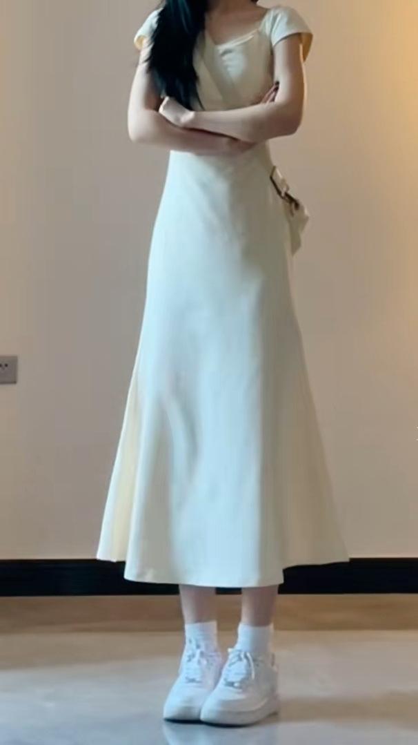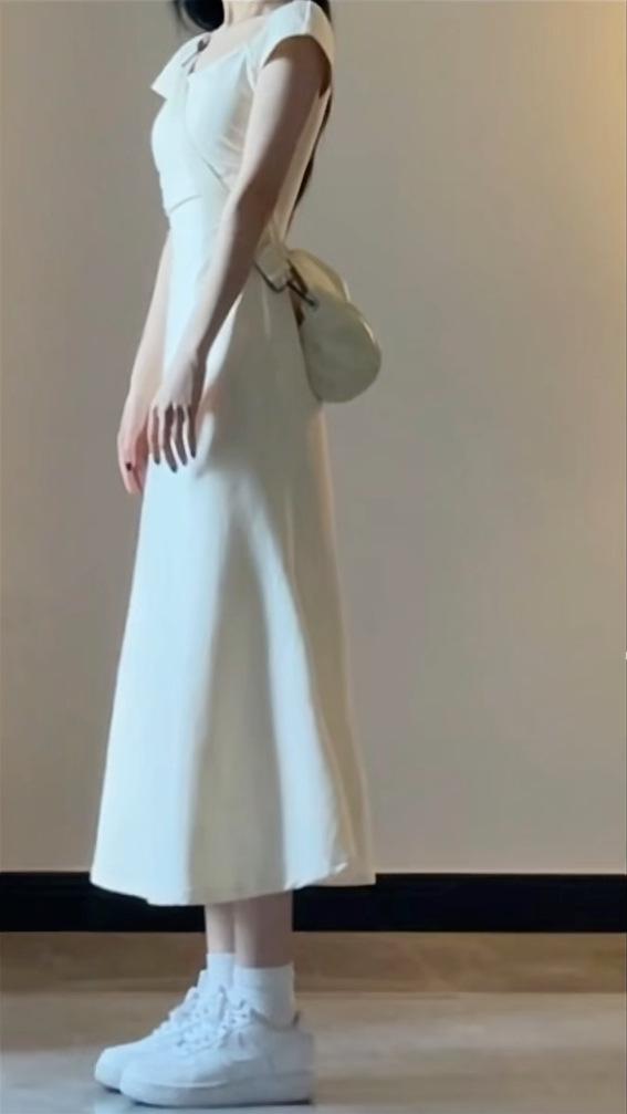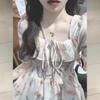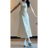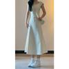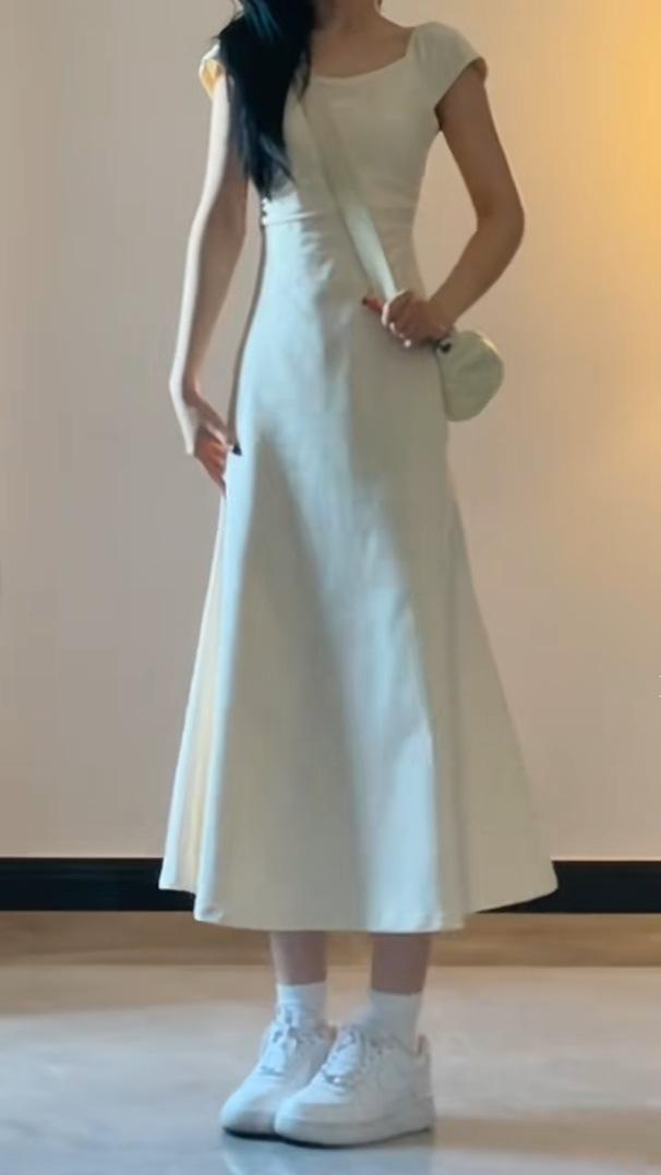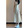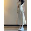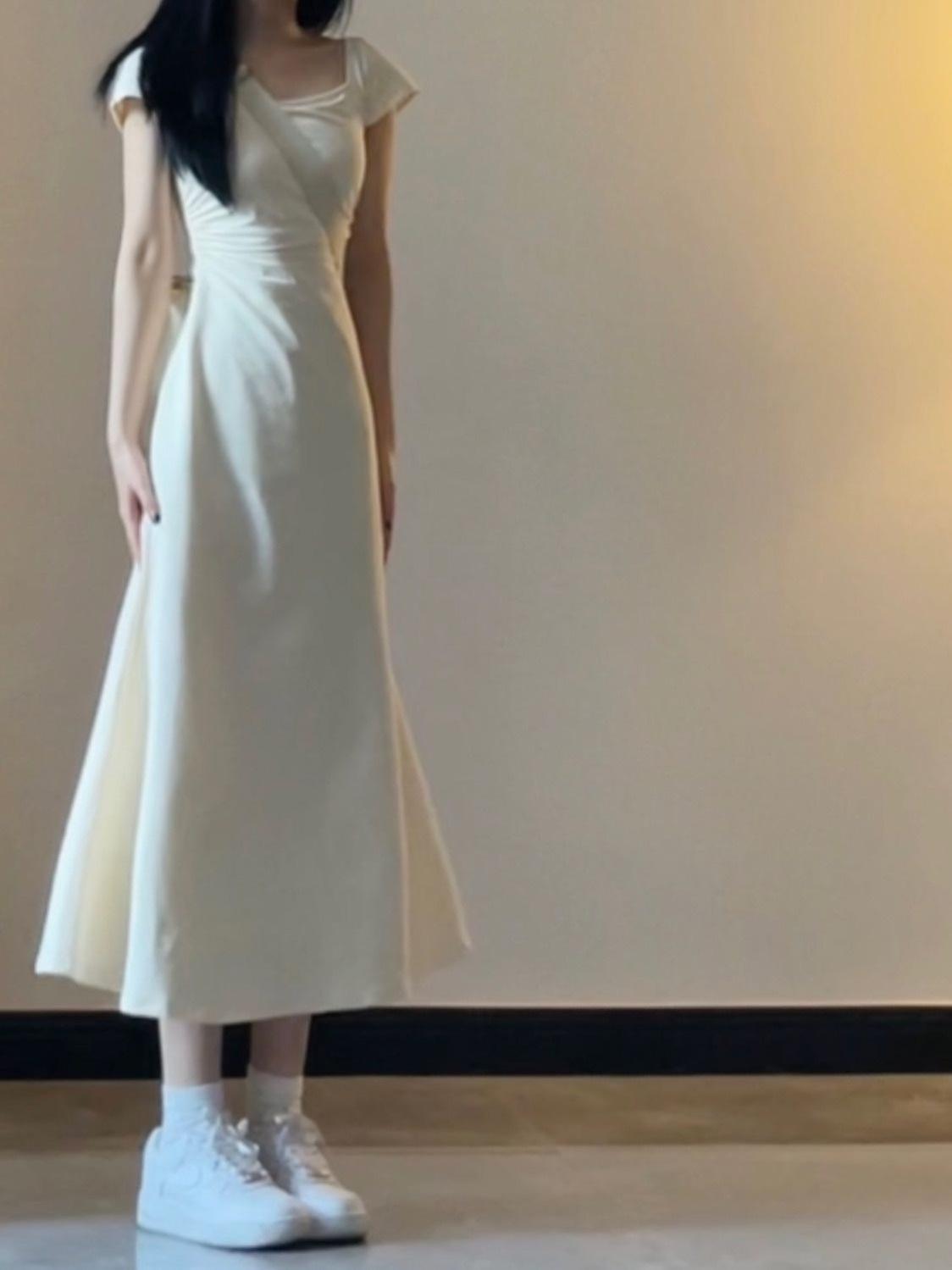Vestido largo estilo francés con cuello cuadrado y cintura alta para mujer, novedad de verano 2024, de alta gama, con cintura suave y adelgazante.