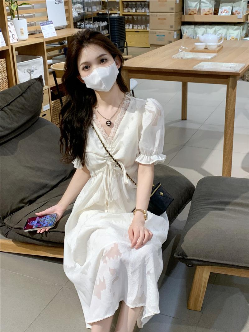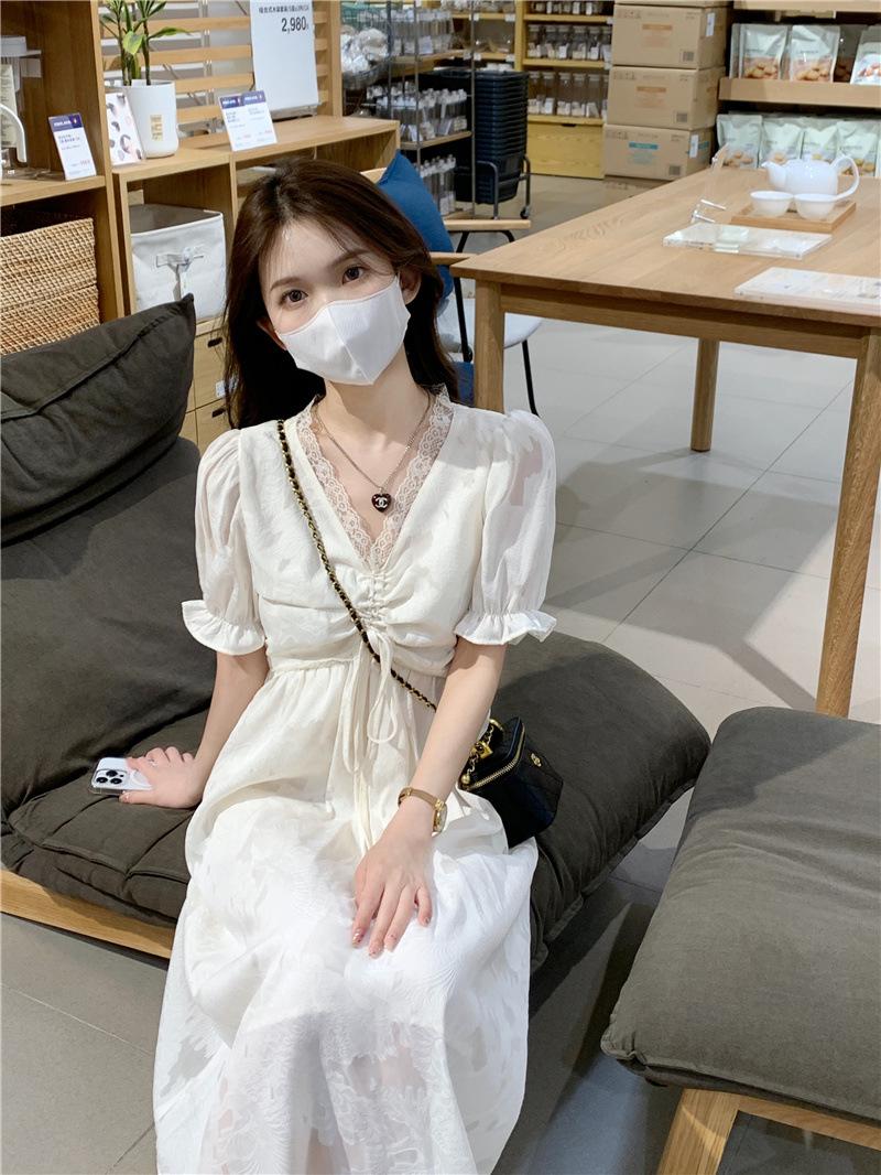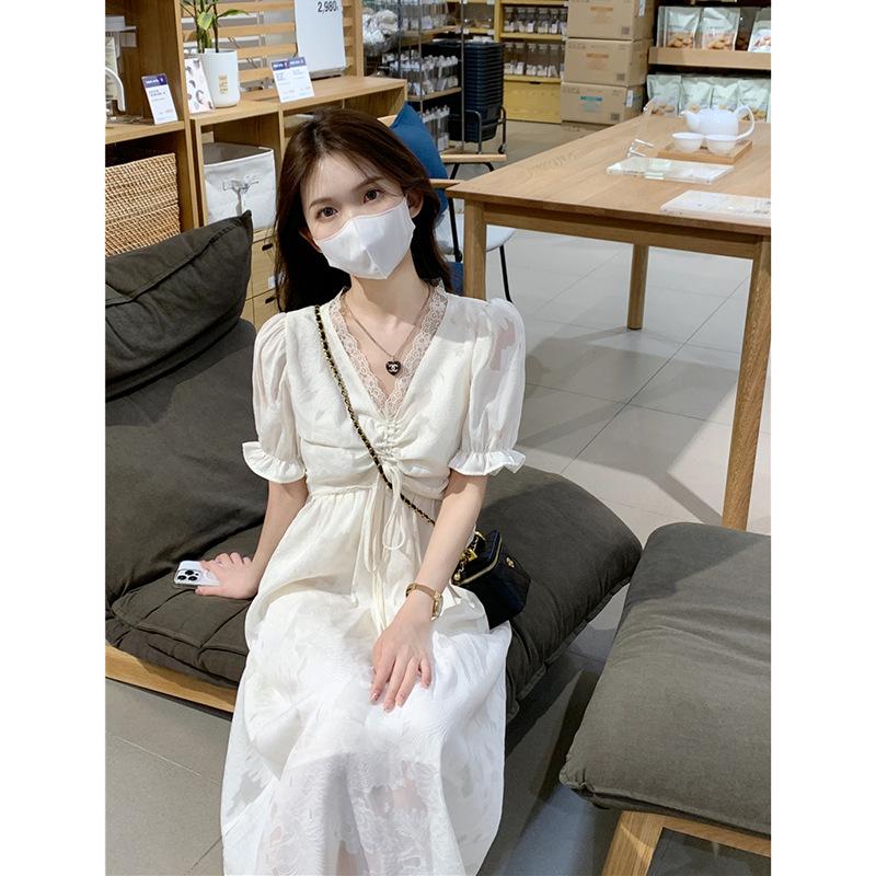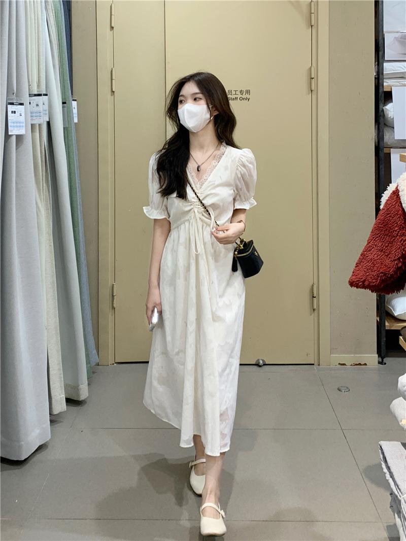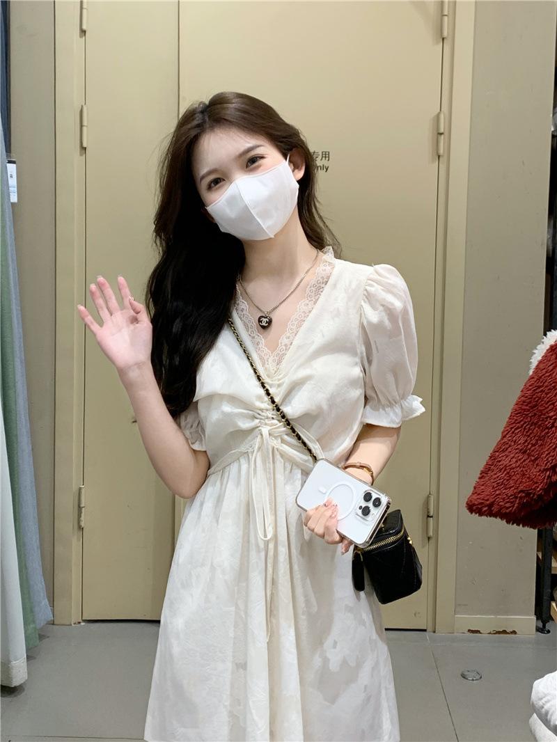 Vestido con cordones para niña, primavera 2024, nueva moda, cintura alta, cuello en V, falda, camisa, falda de longitud media, moda femenina