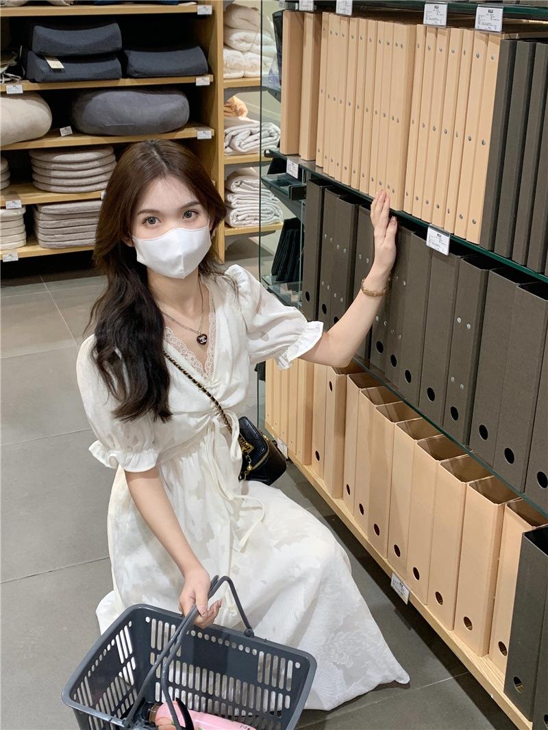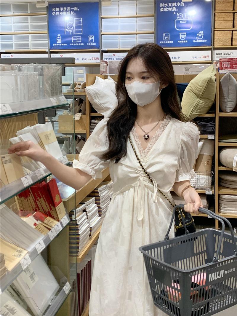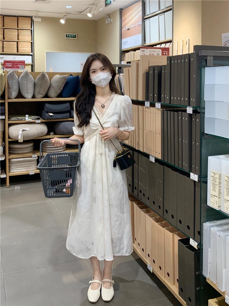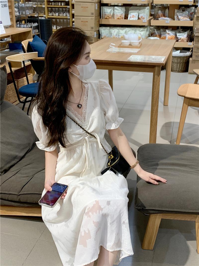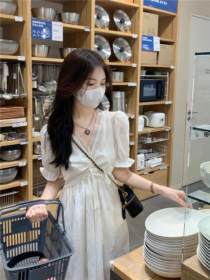 Vestido con cordones para niña, primavera 2024, nueva moda, cintura alta, cuello en V, falda, camisa, falda de longitud media, moda femenina
