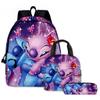 Mochila 3D Nueva Puntada Transfronteriza Dibujos Animados Estampada Mochila Escolar Estuche para Lápices Cartera Set de Tres Piezas
