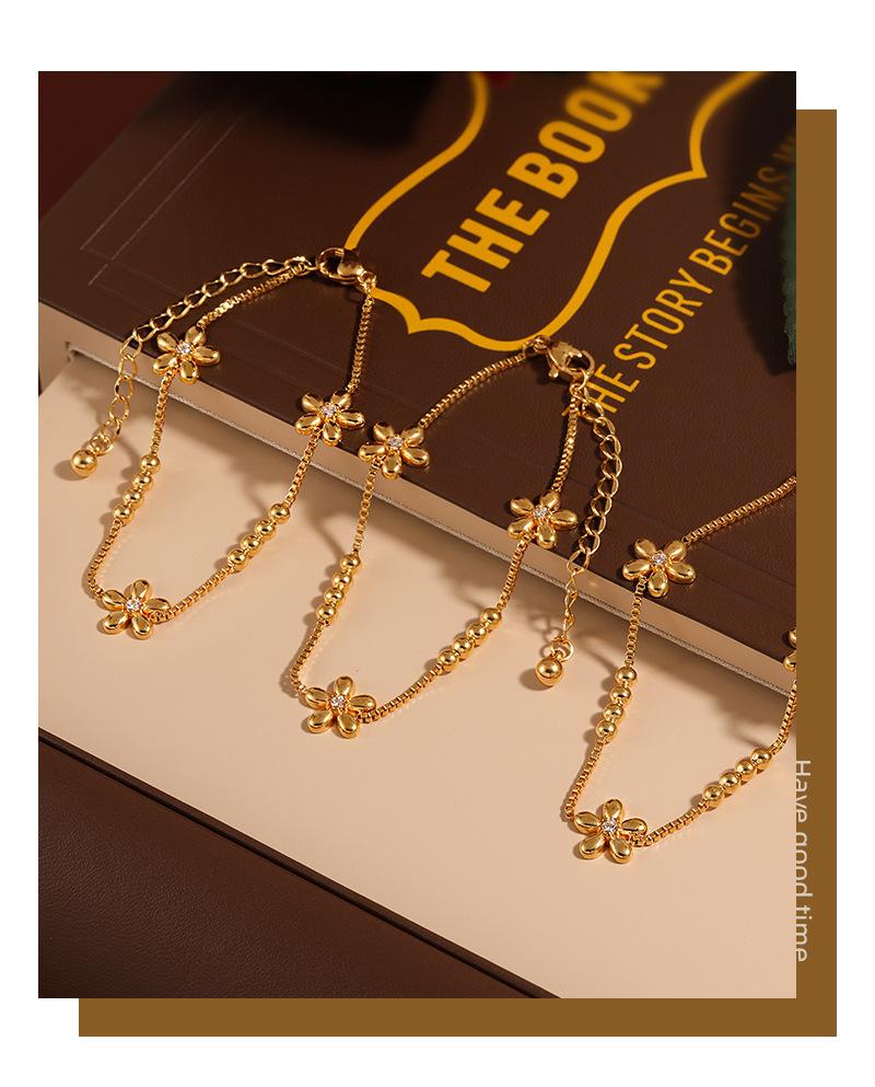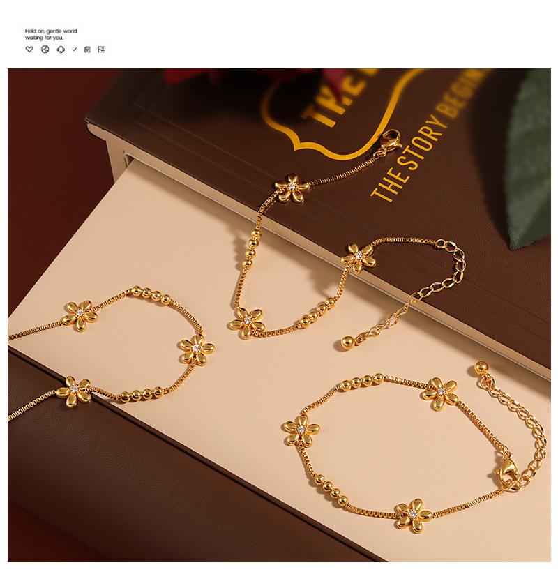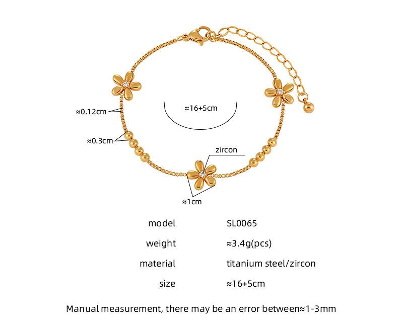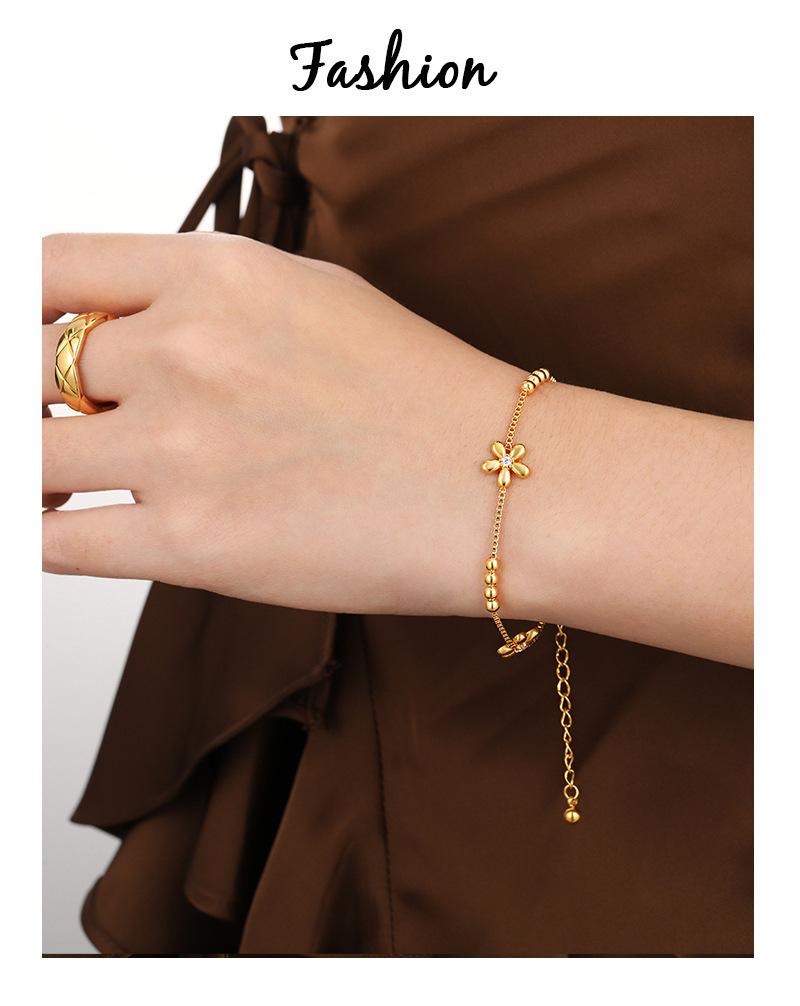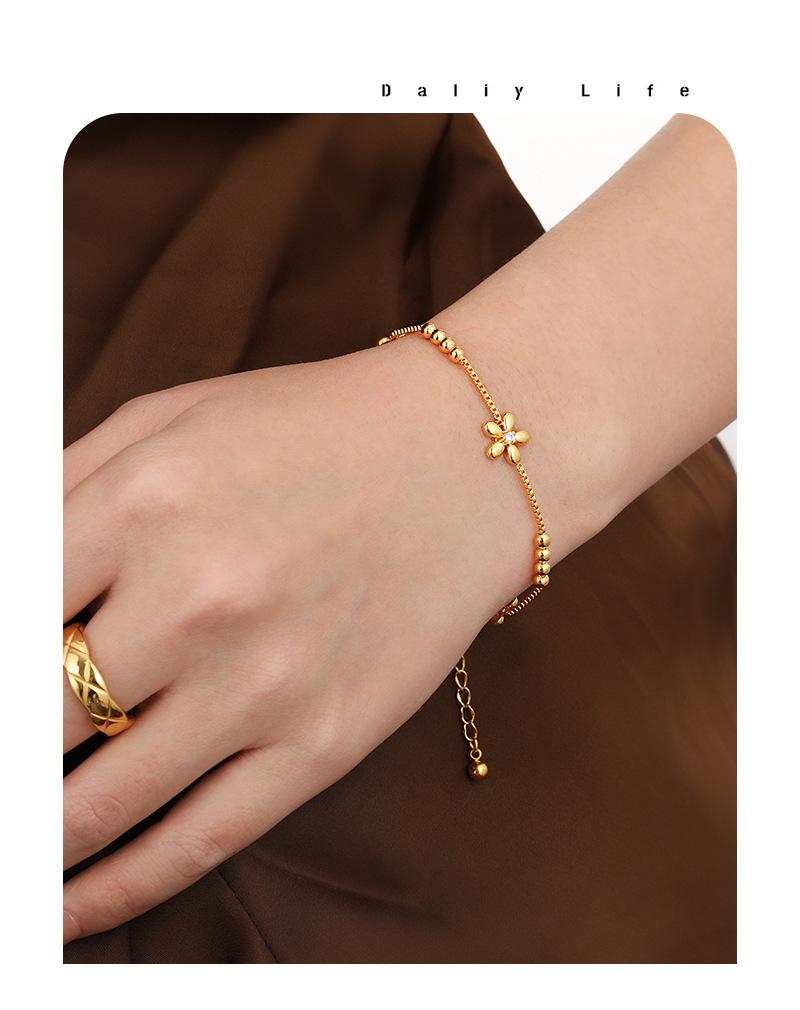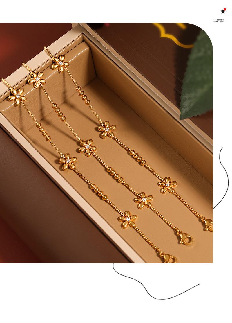 Pulsera de Cuentas Estilo Coreano Nuevo Estilo Elegante Simple Ins Tres Flores Moda para Mujer Personalizada Acero Titanio Chapado en Oro Joyería de Mano
