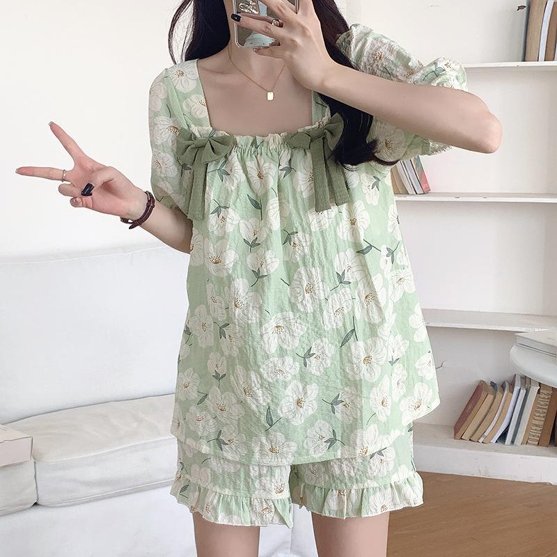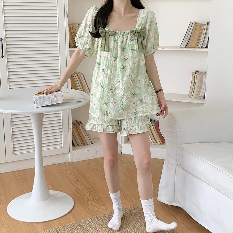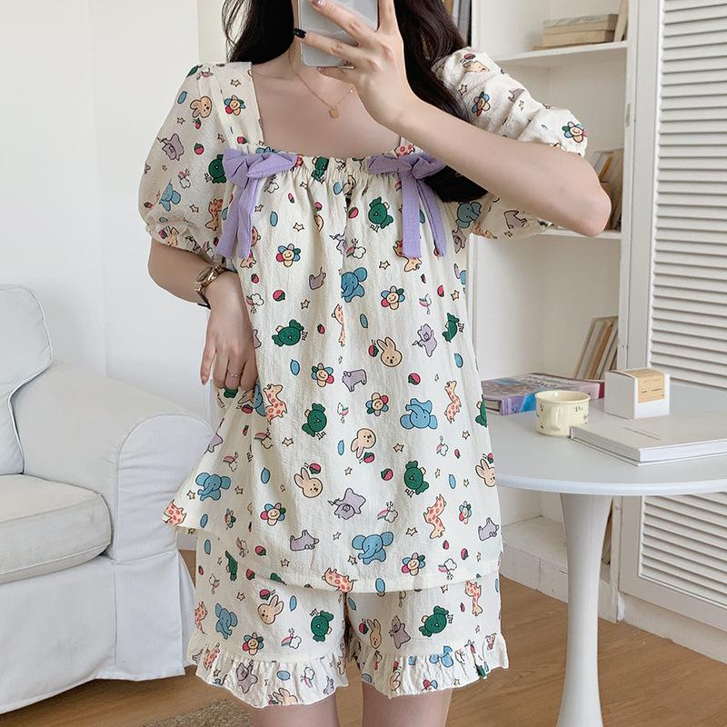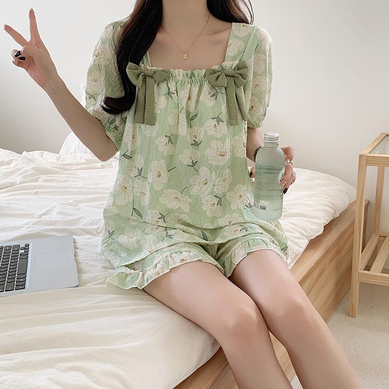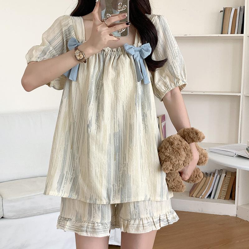 Pijamas de verano para mujer, de algodón abullonado, de manga corta, estilo princesa dulce, holgados, para usar en casa, se pueden usar al aire libre. Venta al por mayor.