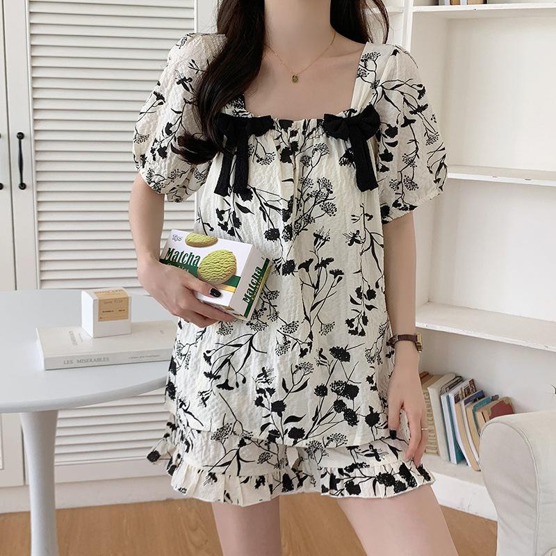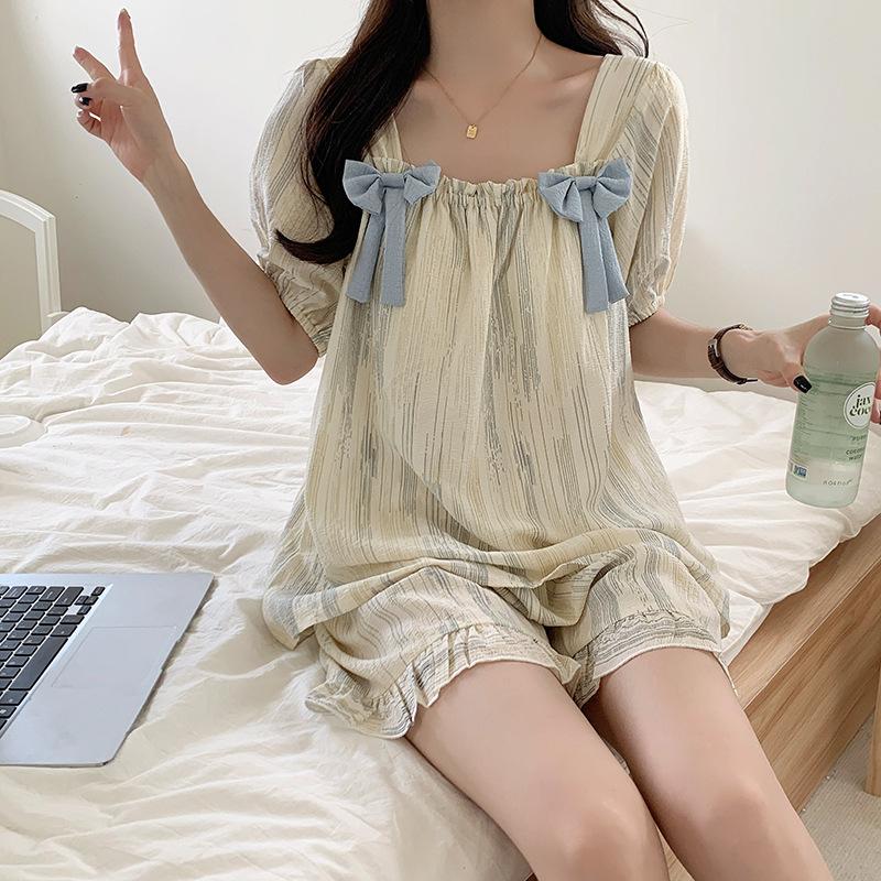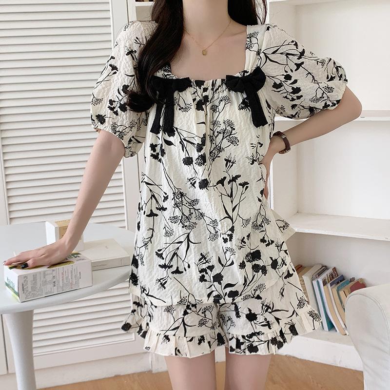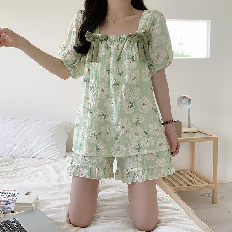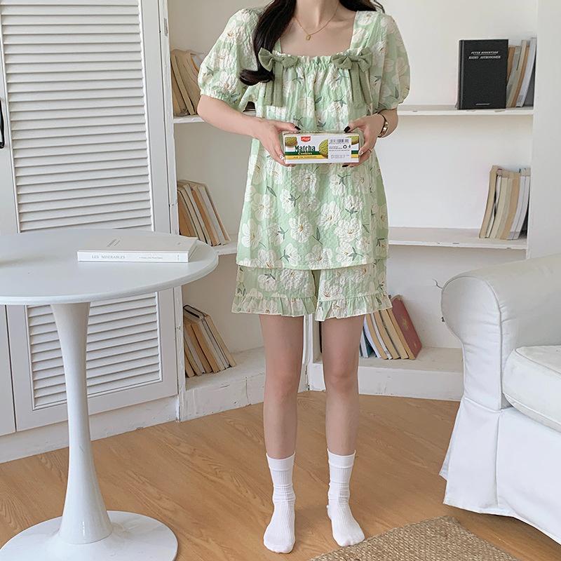 Pijamas de verano para mujer, de algodón abullonado, de manga corta, estilo princesa dulce, holgados, para usar en casa, se pueden usar al aire libre. Venta al por mayor.
