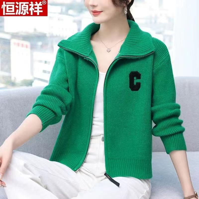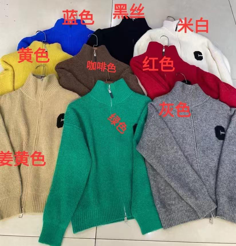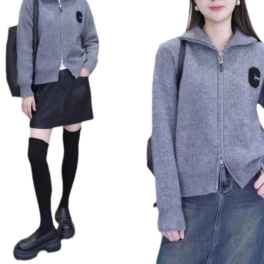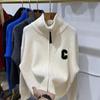 Otoño e Invierno Nuevo Cárdigan de Punto de Cuello Alto con Doble Cremallera para Mujer Transfronterizo Estilo Coreano Suelto Color Sólido Casual Chaqueta Suéter Trendy