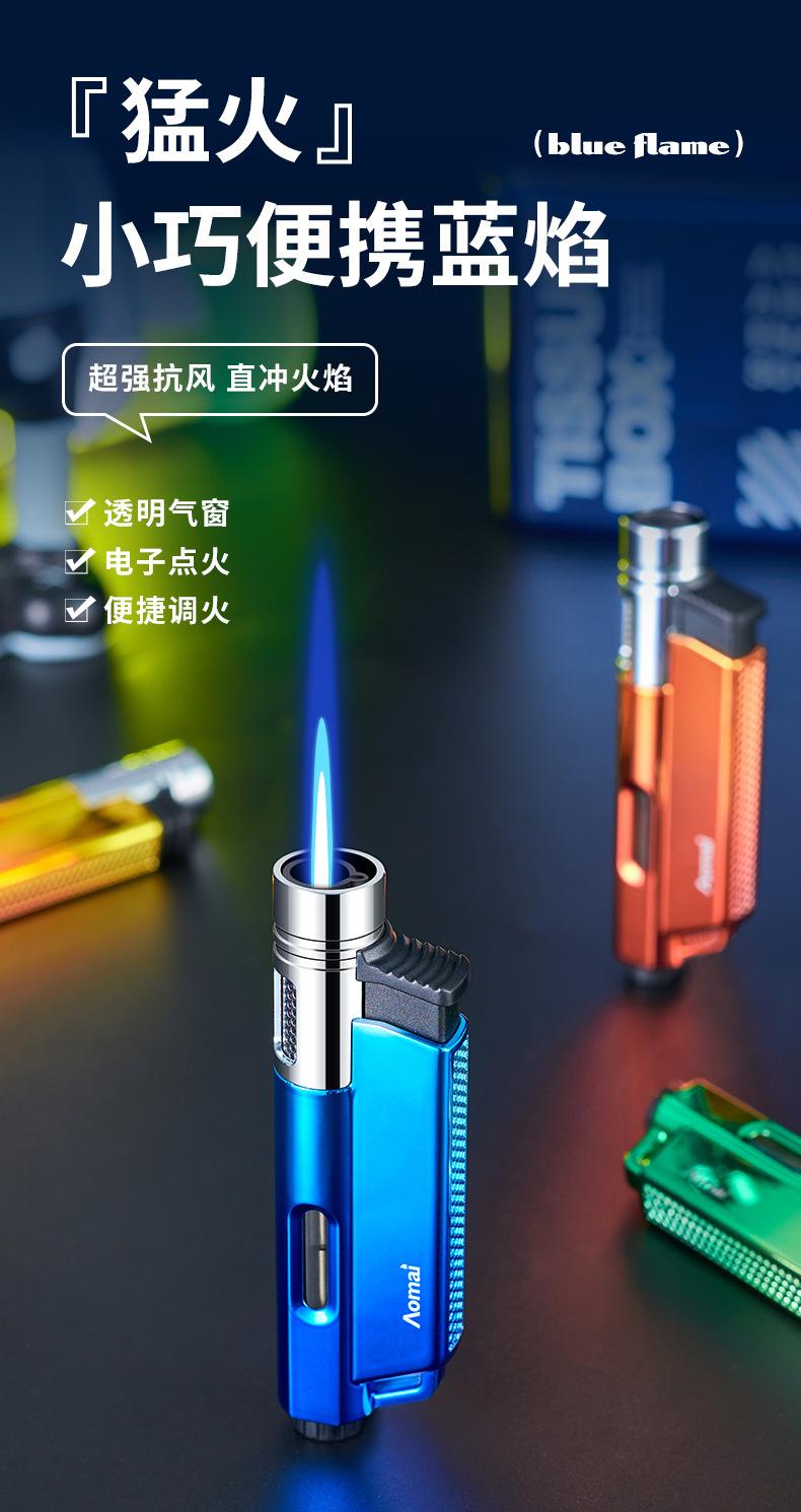 Encendedor inflable de llama azul, nuevo, directo, a prueba de viento, llama feroz, compacto, portátil, Tiktok, venta transfronteriza.