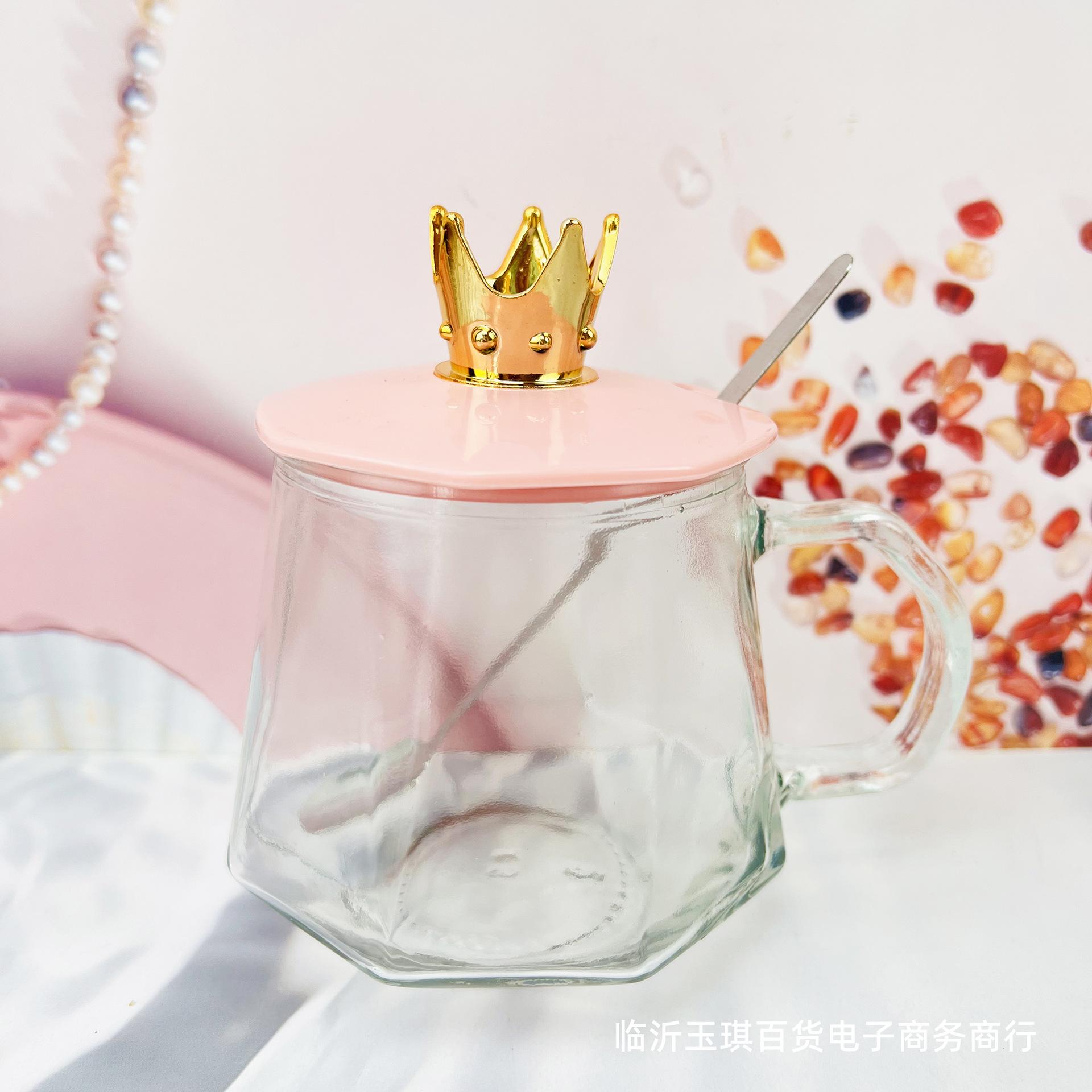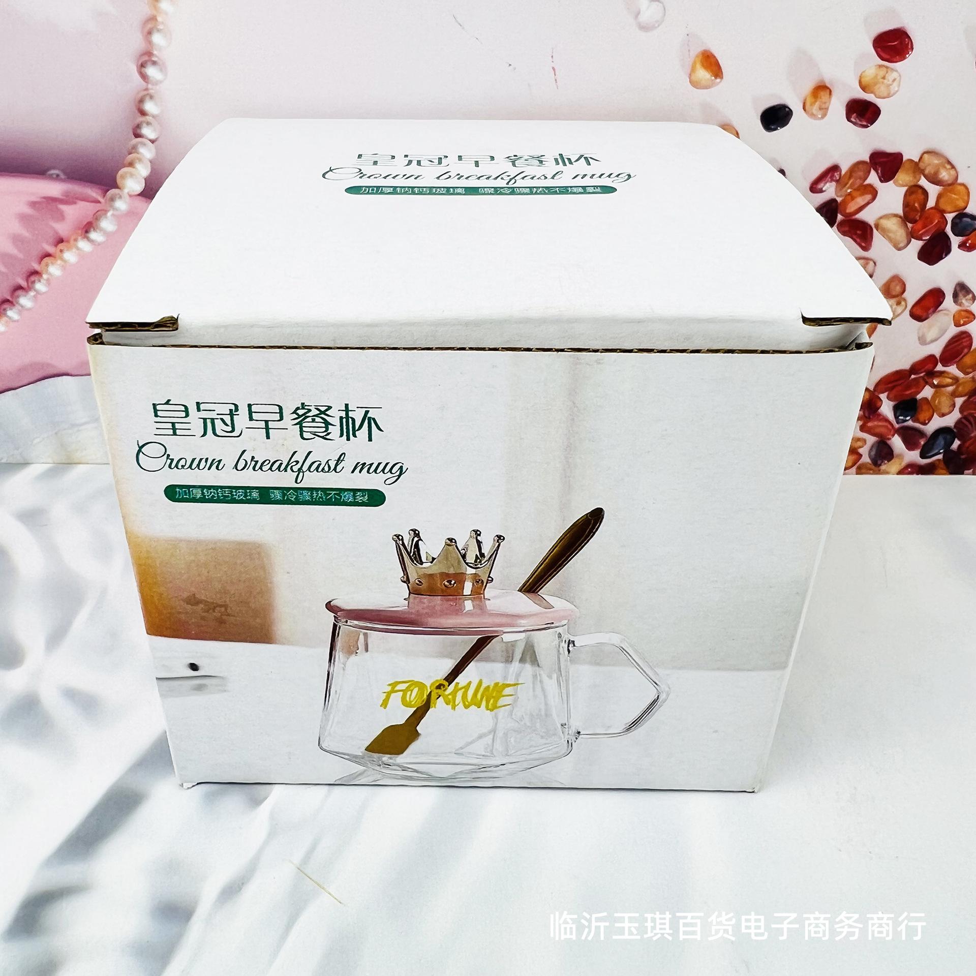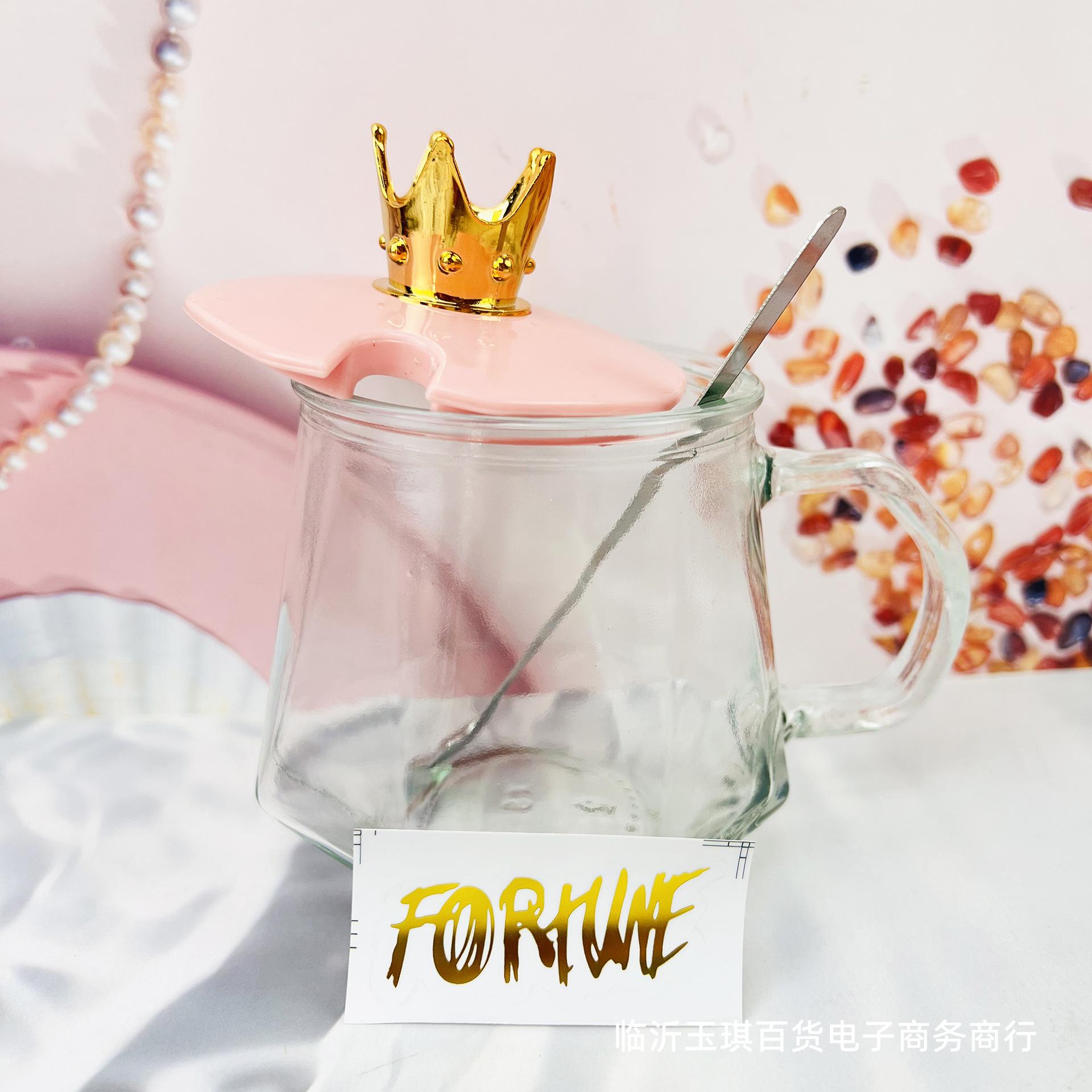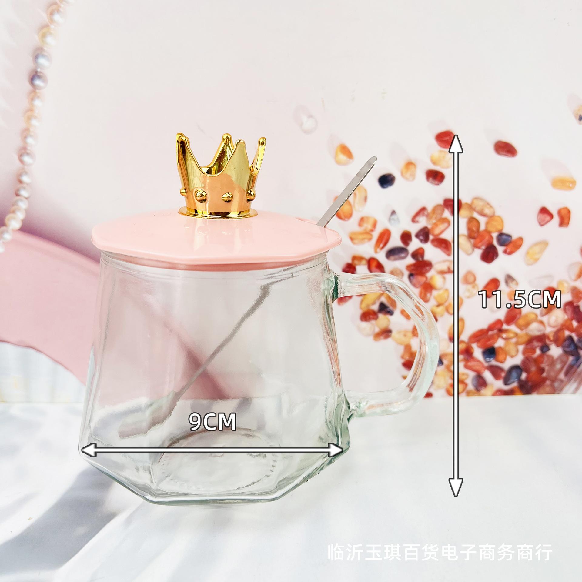 Taza de Desayuno Corona Vidrio Taza Resistente al Calor Oficina con Taza Taza de Té Taza de Leche Taza de Café con Tapa y Cuchara